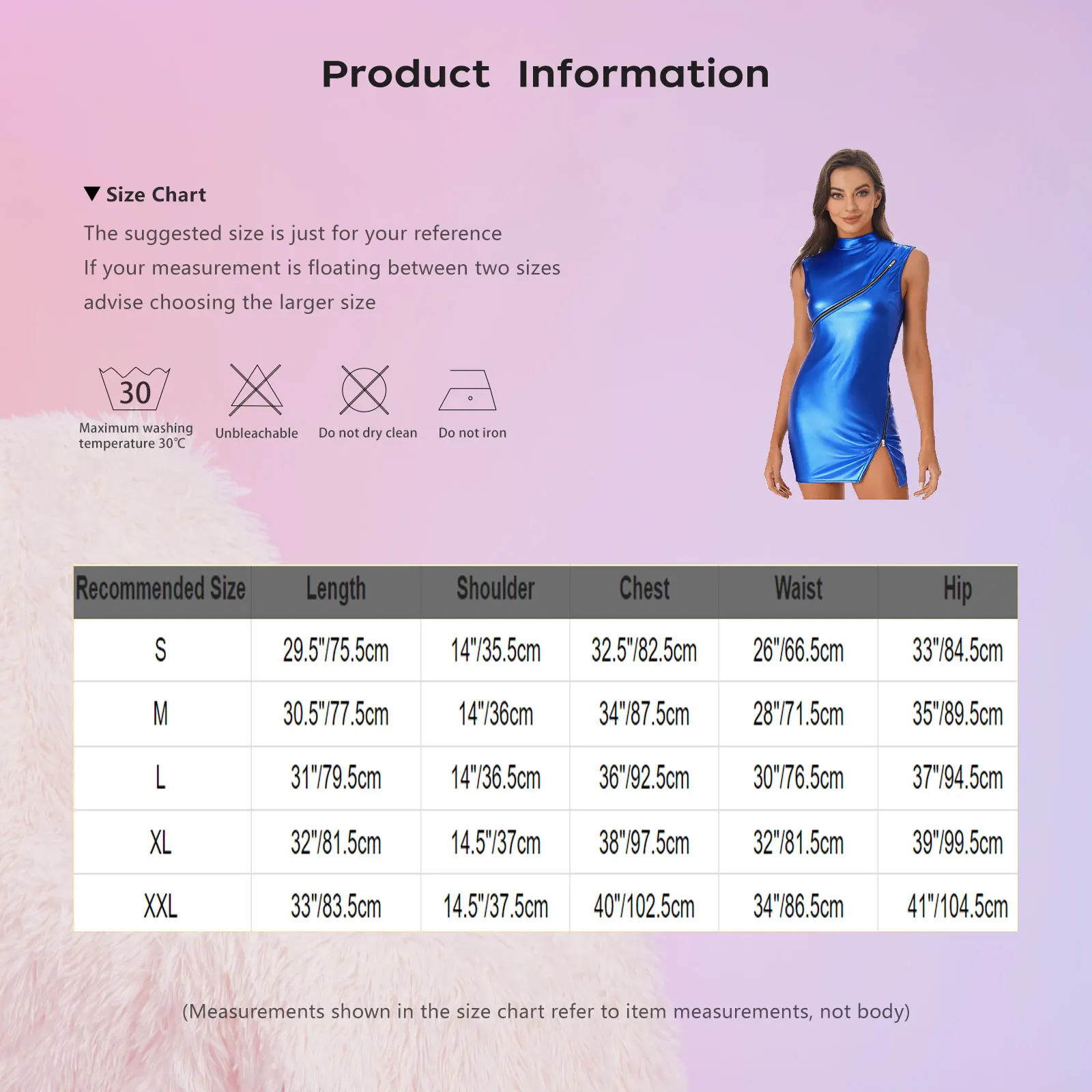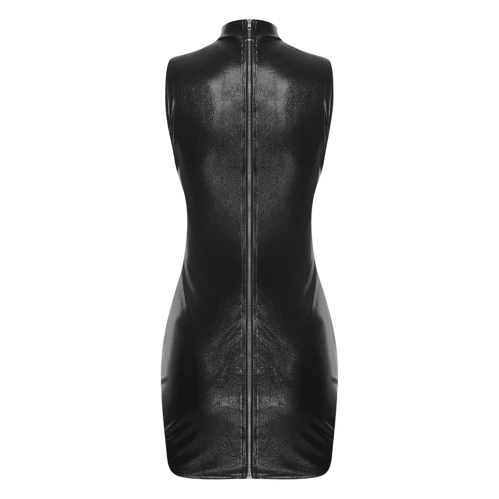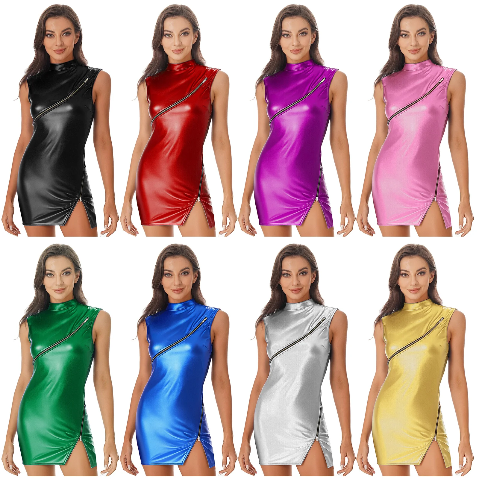 Women Fashion Raves Bodycon Dress Double-end Zippers Sexy Party Club Costumes Metallic Sleeveless Mini Dress Festival Clothes