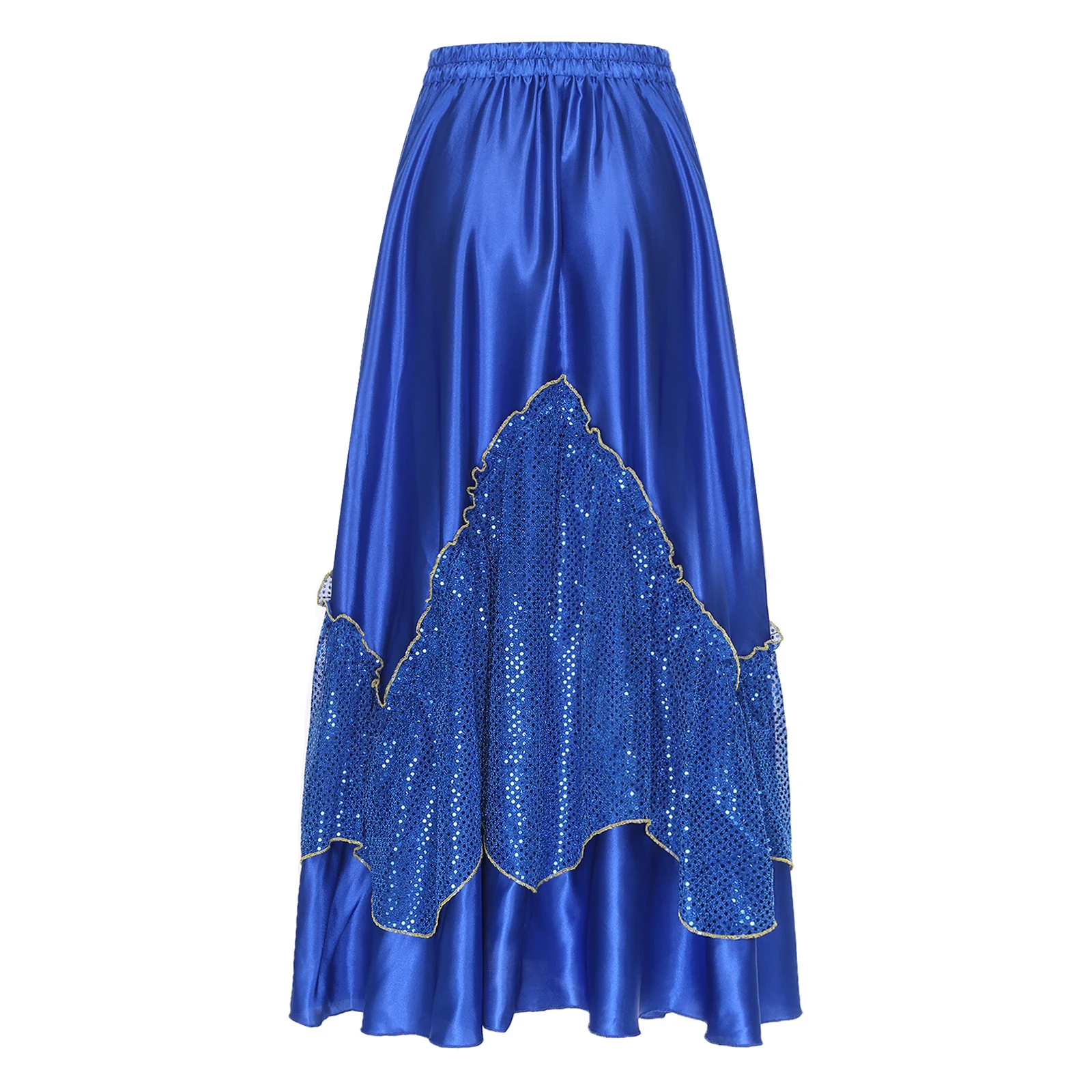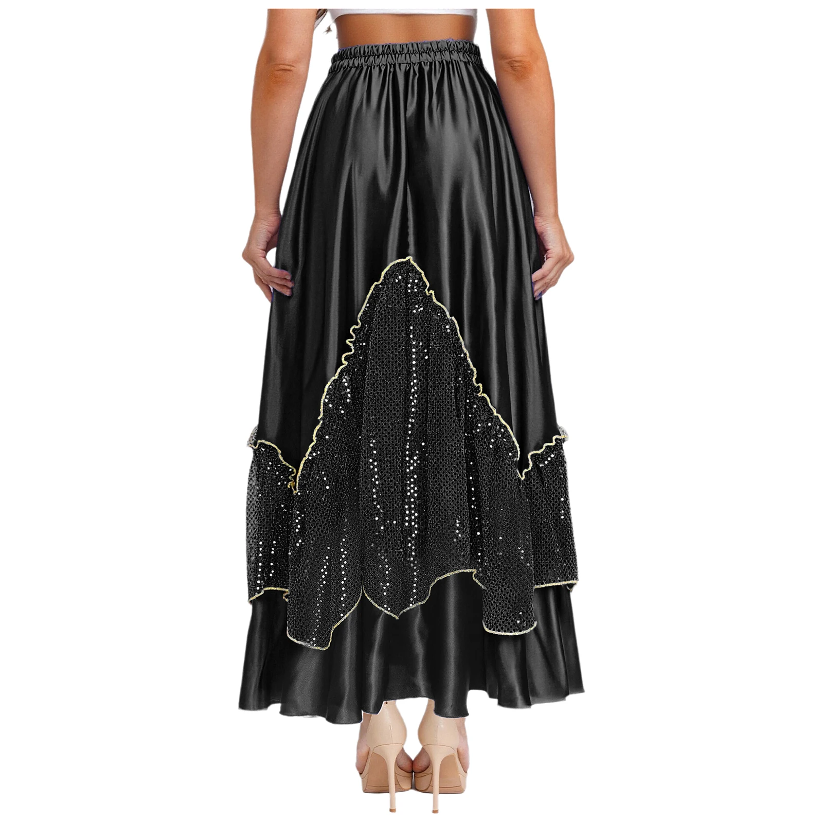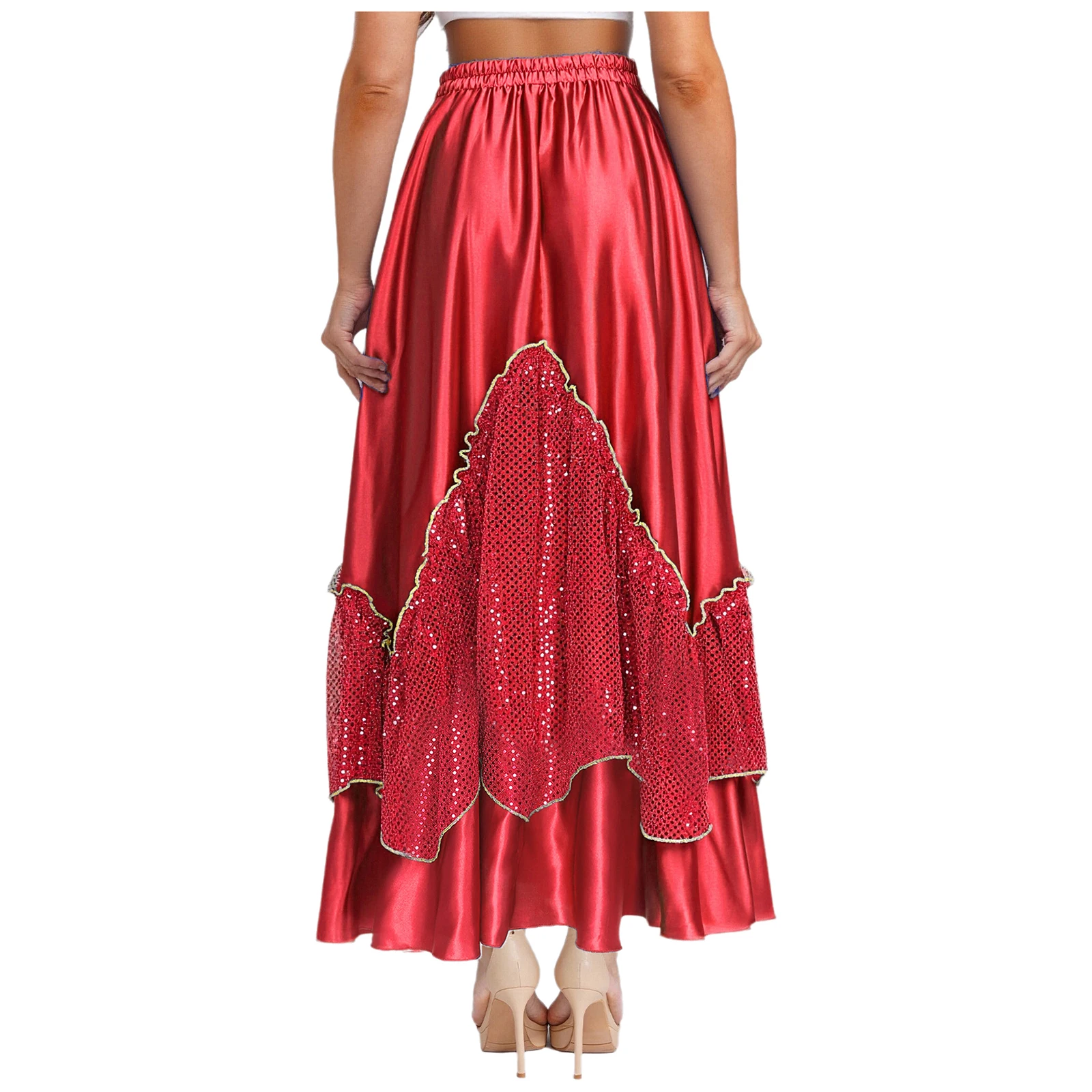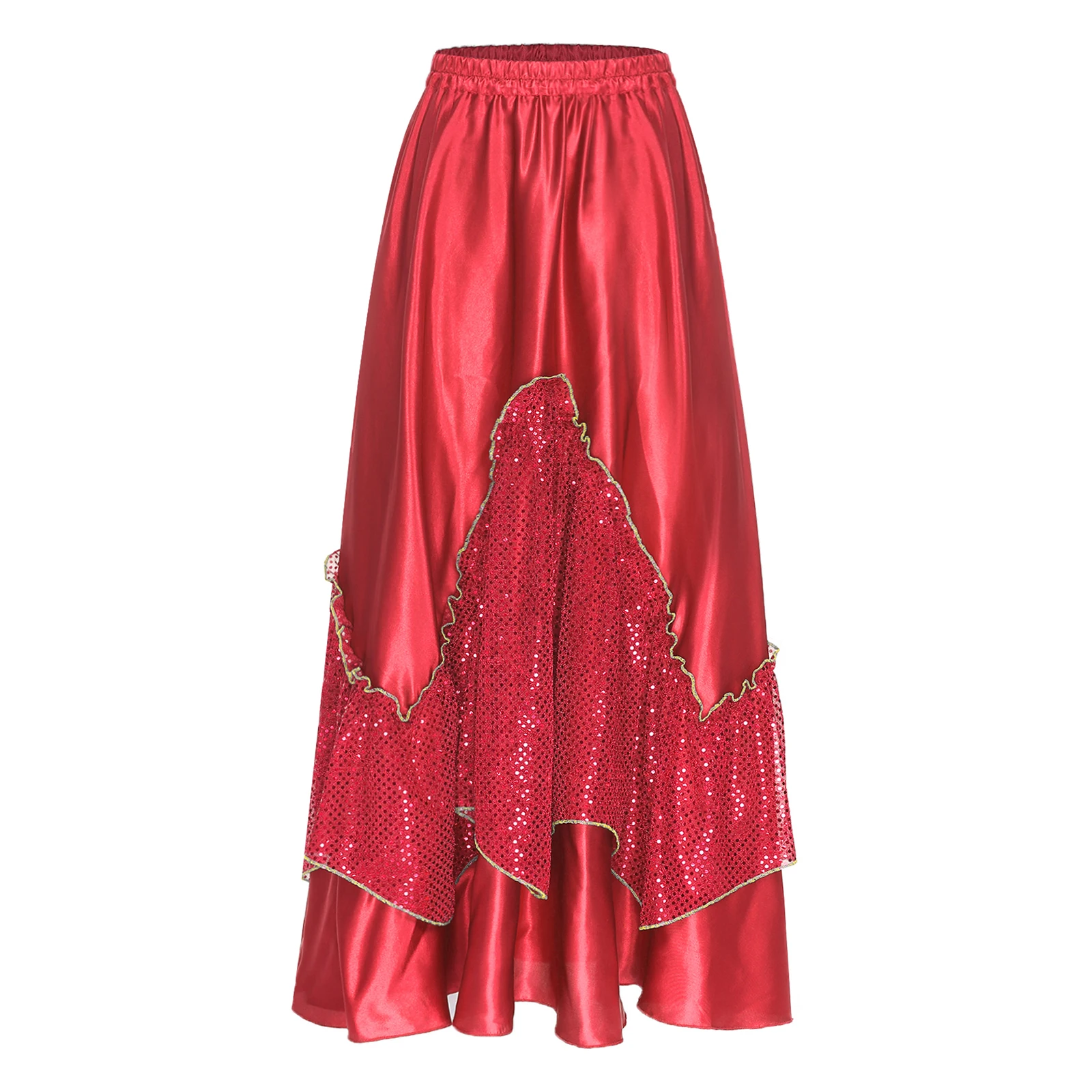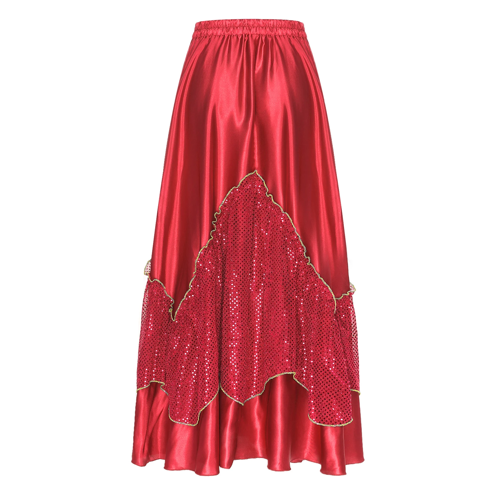 Women Flamenco Spanish Dance Skirts Ballroom Dancewear Shiny Sequin Patchwork Big Swing Skirt for Tango Lyrical Dance Costume