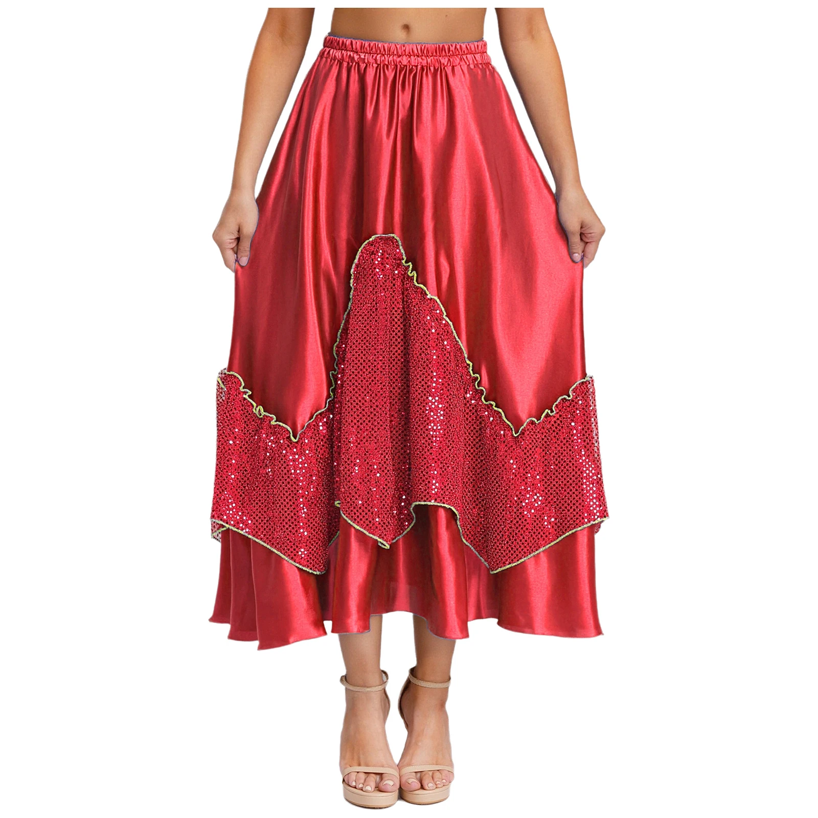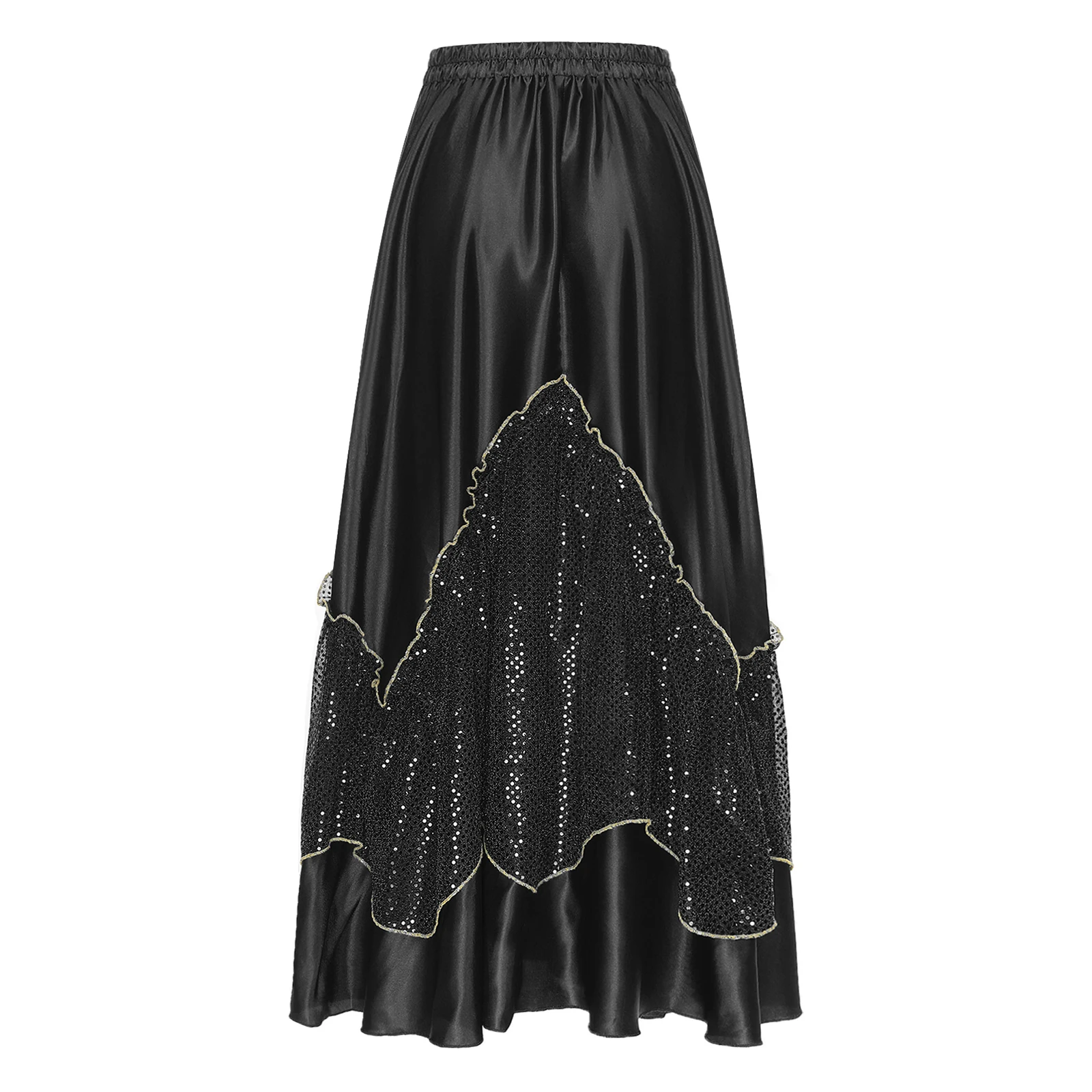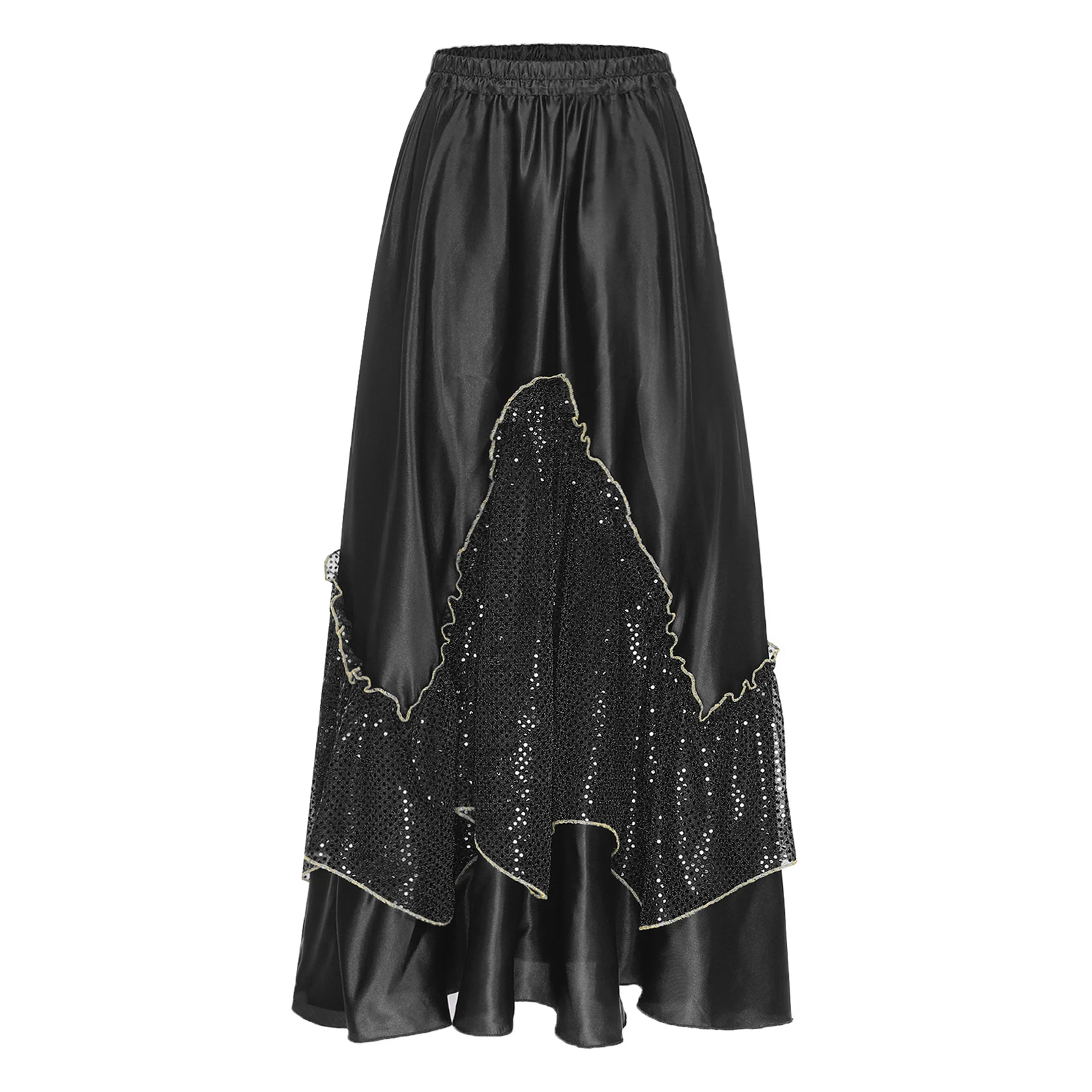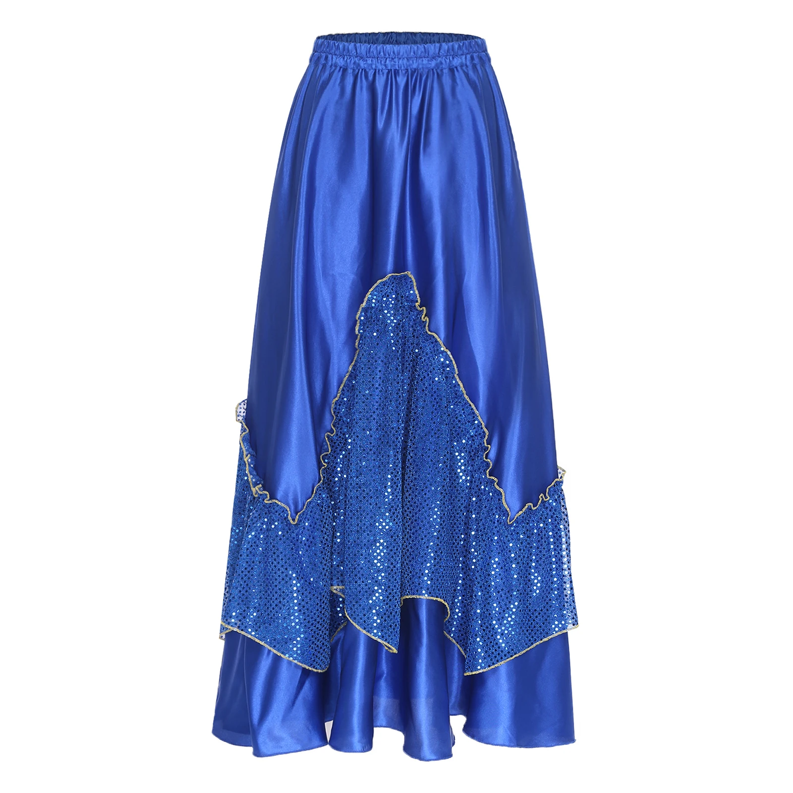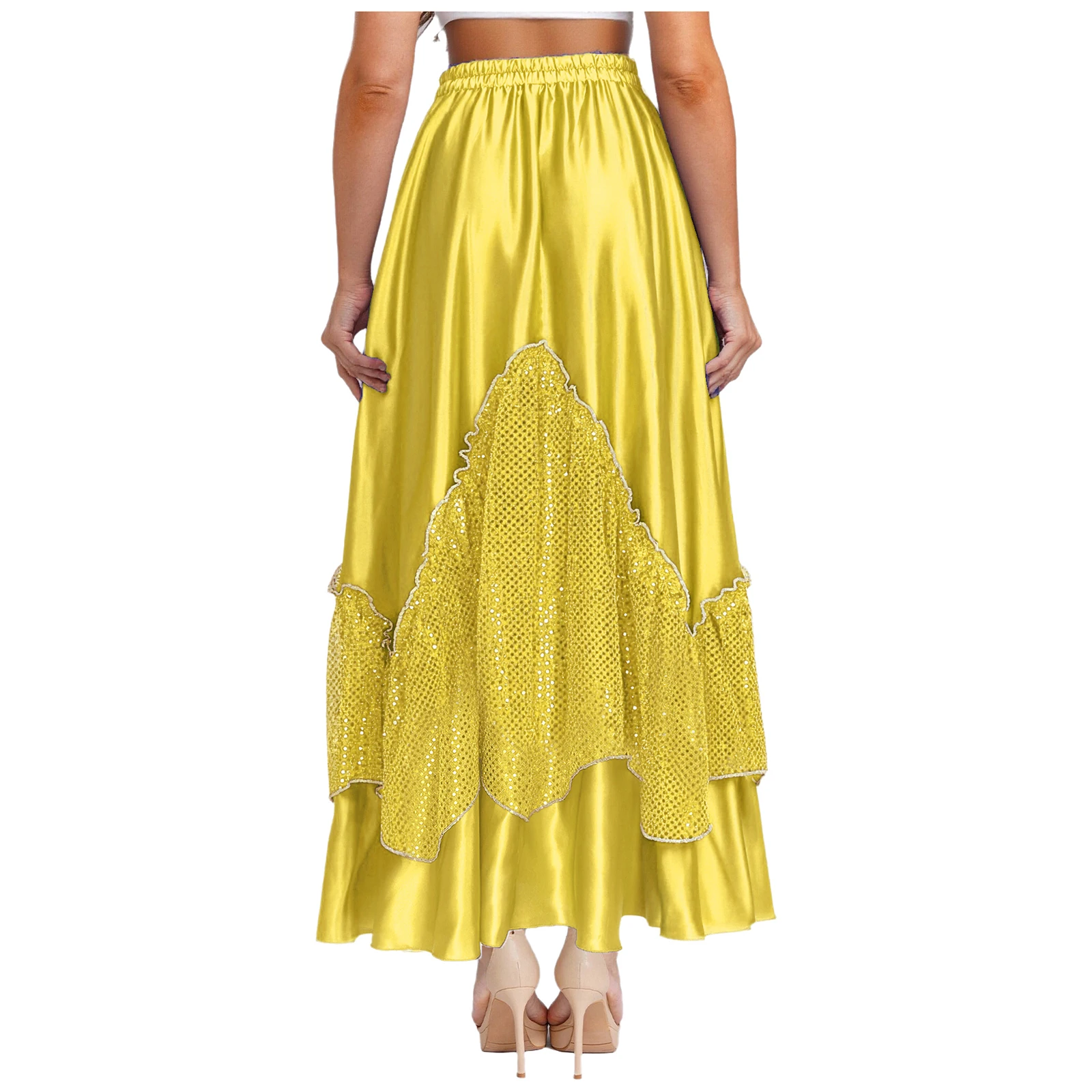 Women Flamenco Spanish Dance Skirts Ballroom Dancewear Shiny Sequin Patchwork Big Swing Skirt for Tango Lyrical Dance Costume