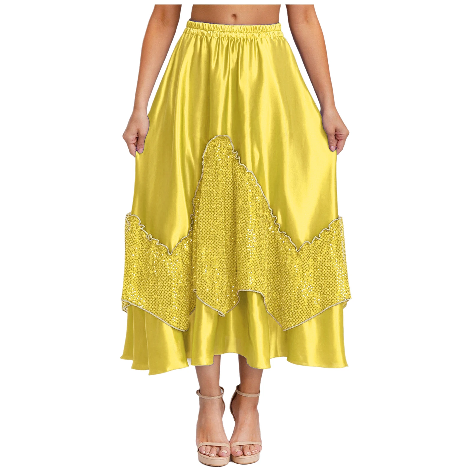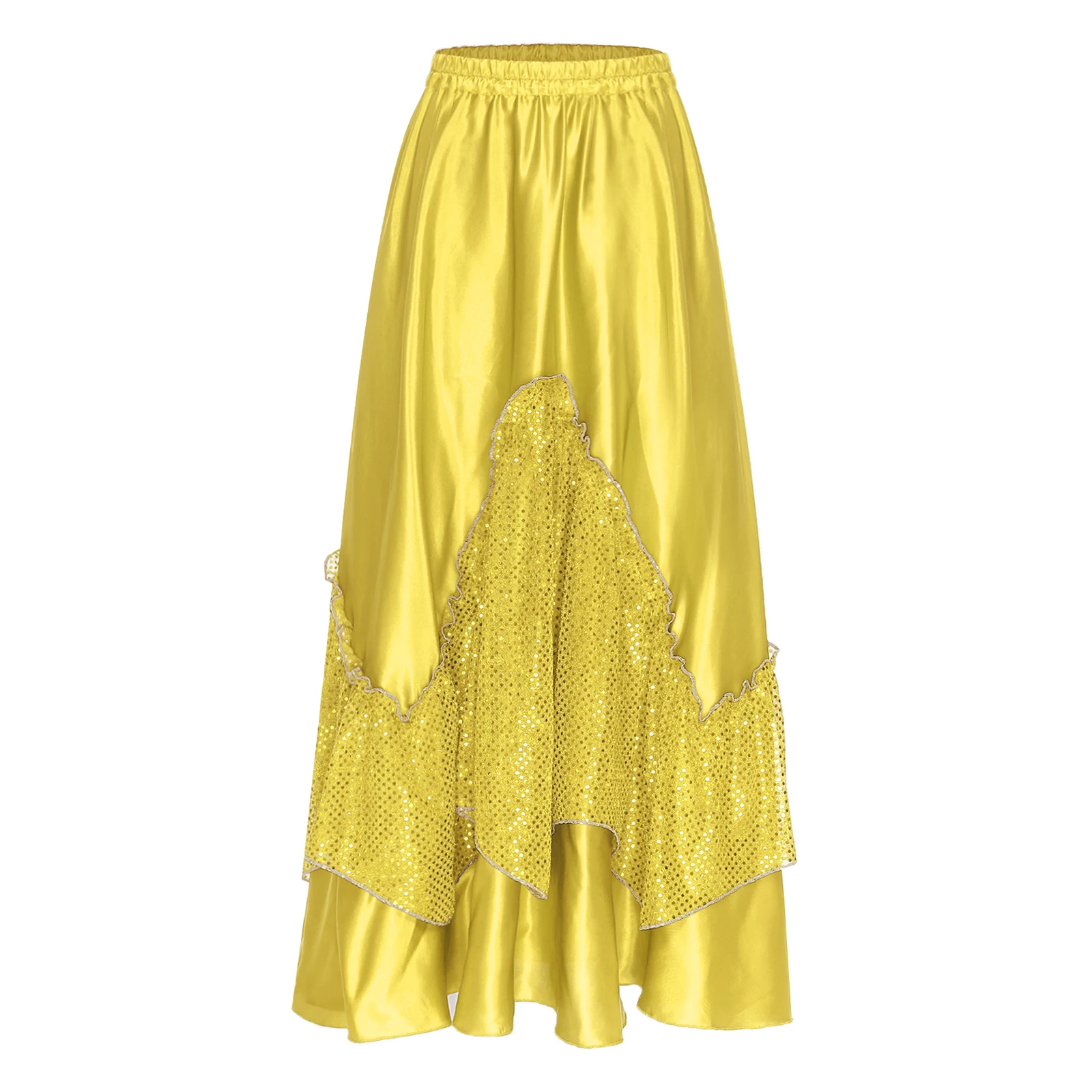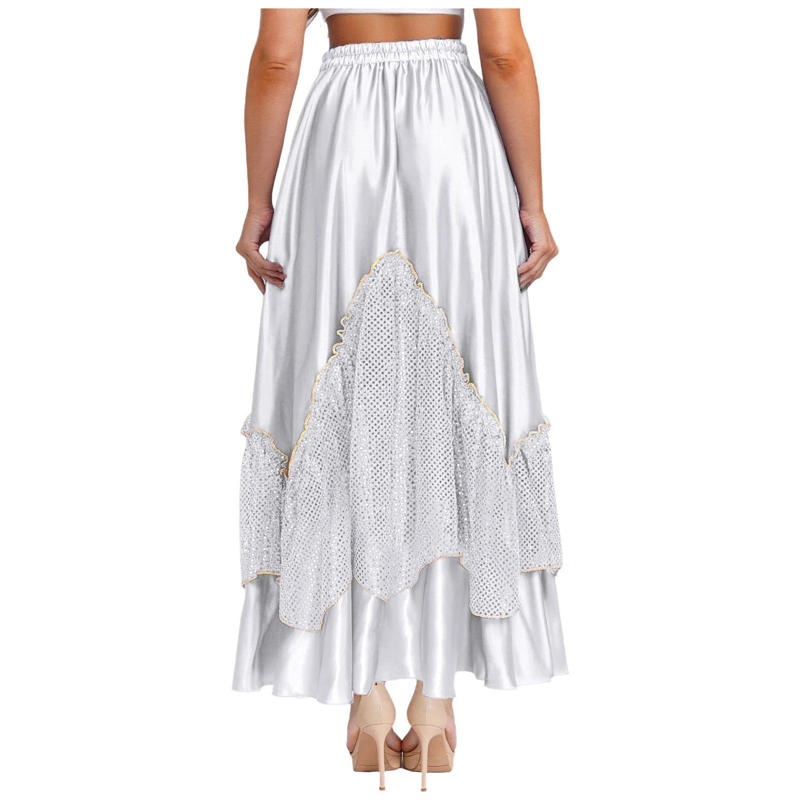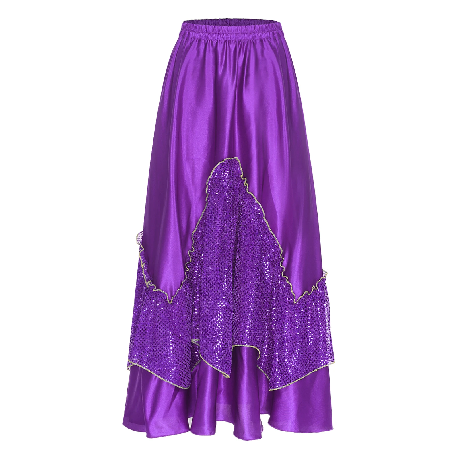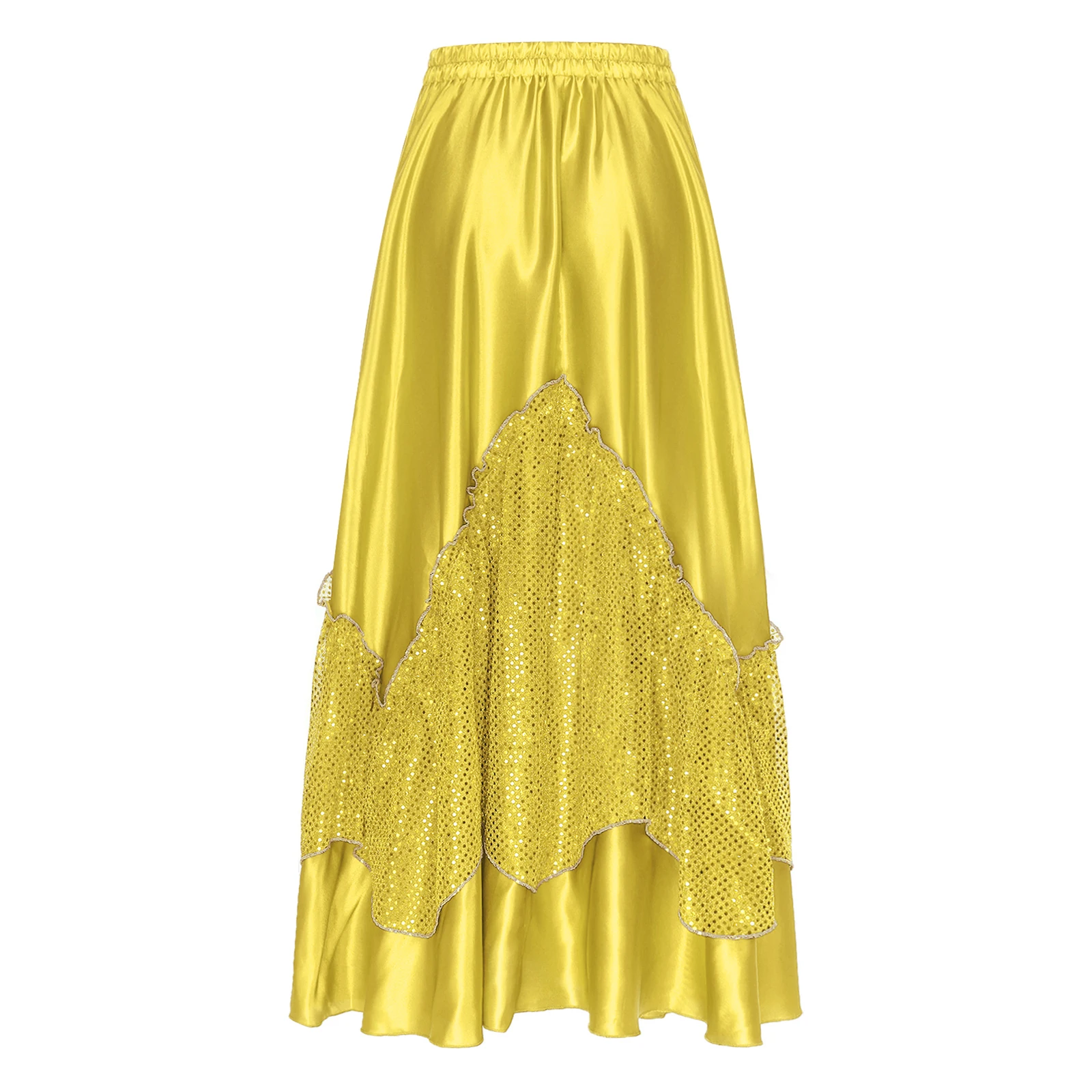 Women Flamenco Spanish Dance Skirts Ballroom Dancewear Shiny Sequin Patchwork Big Swing Skirt for Tango Lyrical Dance Costume
