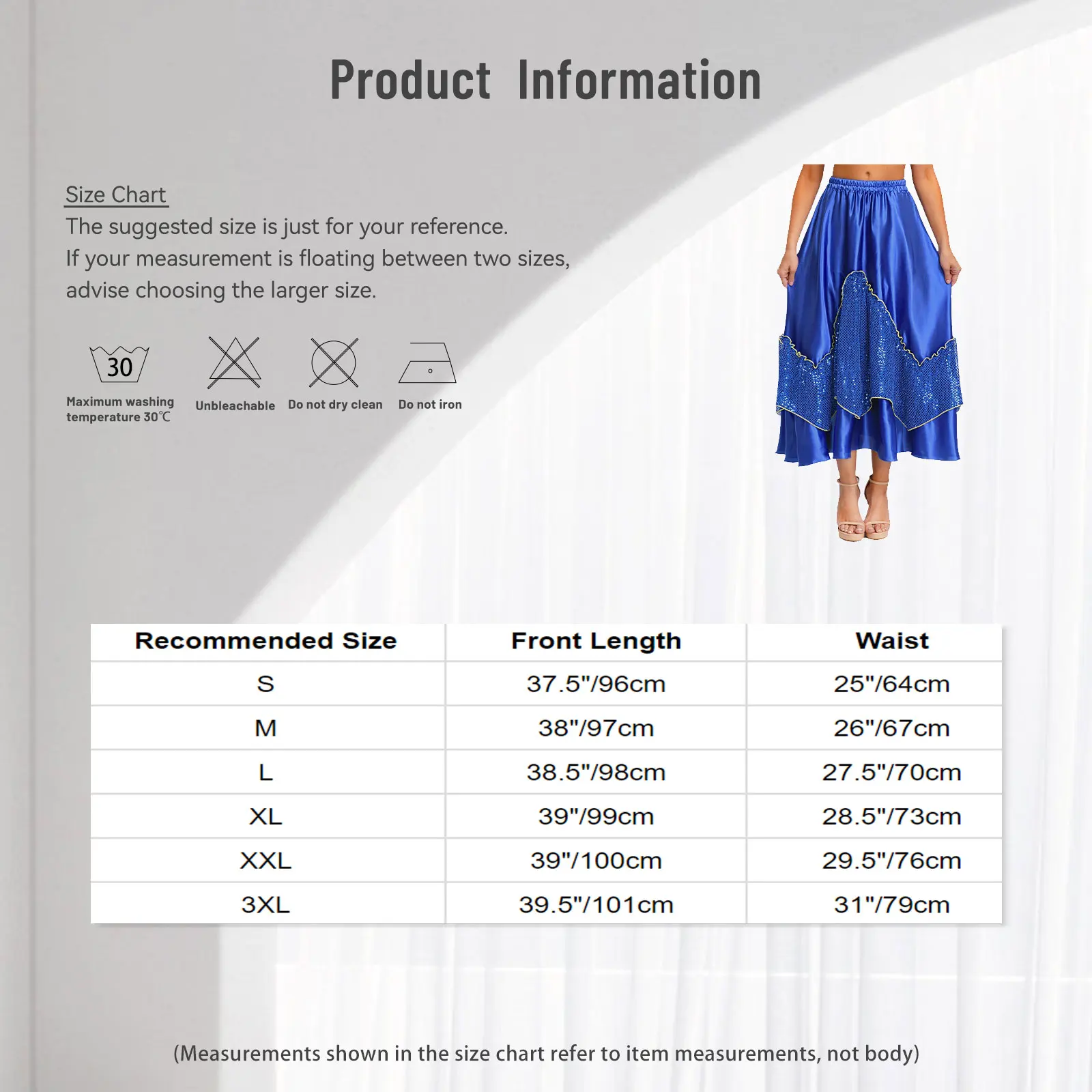Size Chart: The suggested size is just for your reference. If your measurement is floating between two sizes, advise choosing the larger size. (Measurements shown in the size chart refer to item measurements, not body)