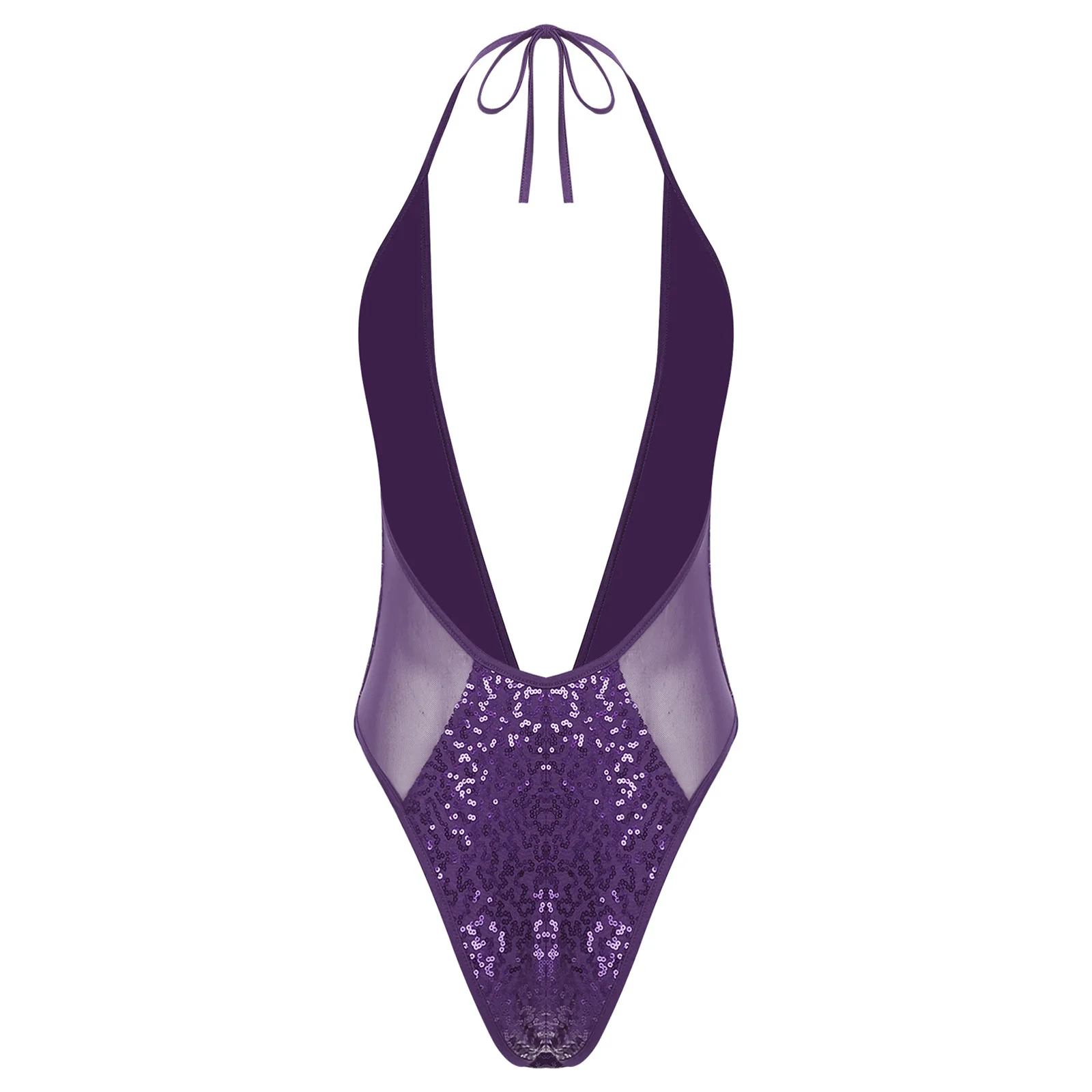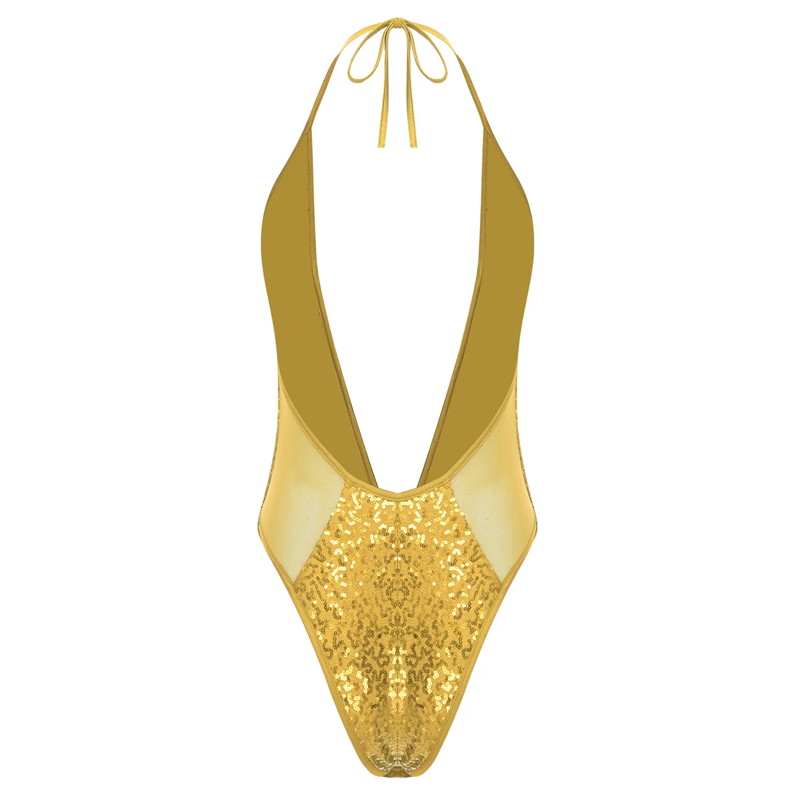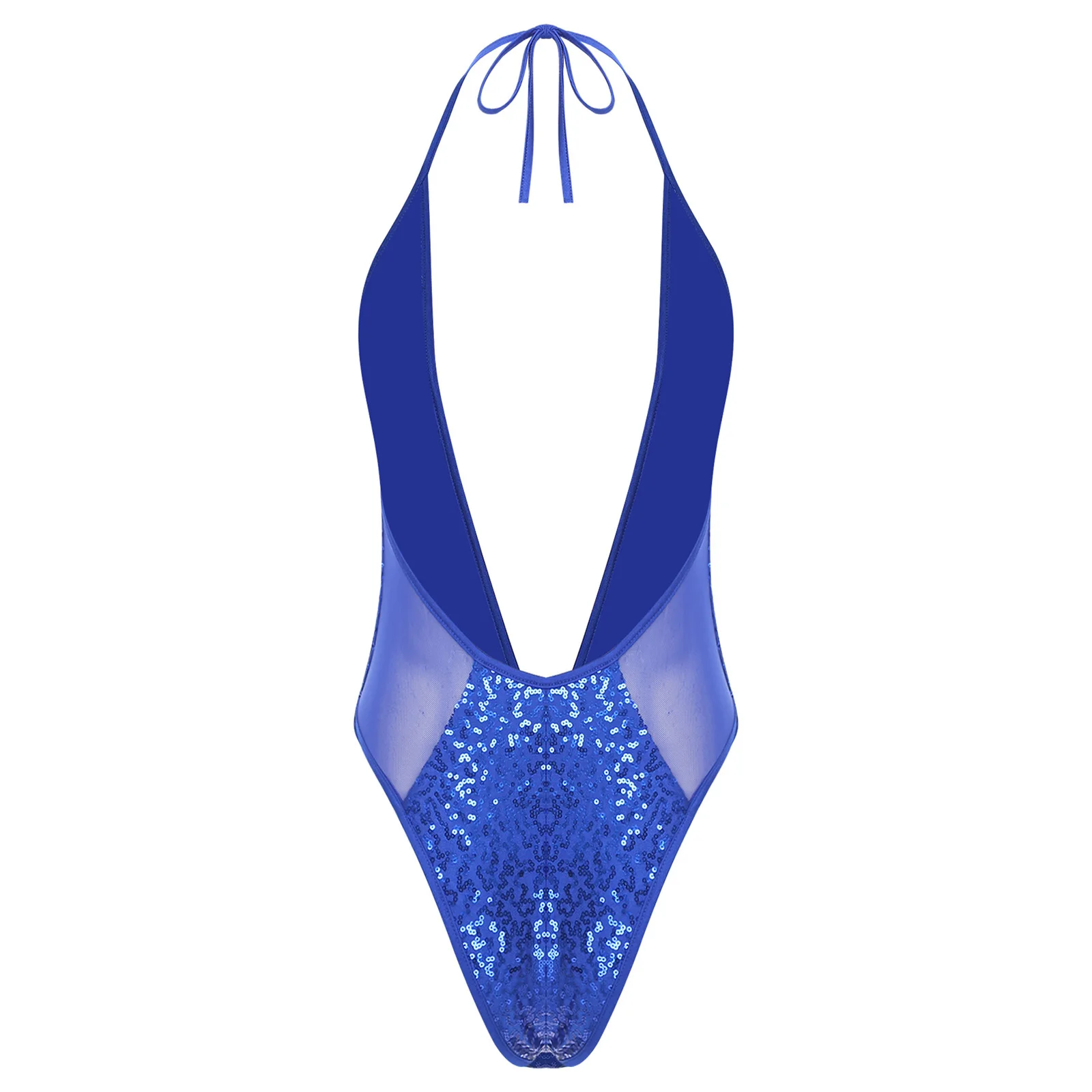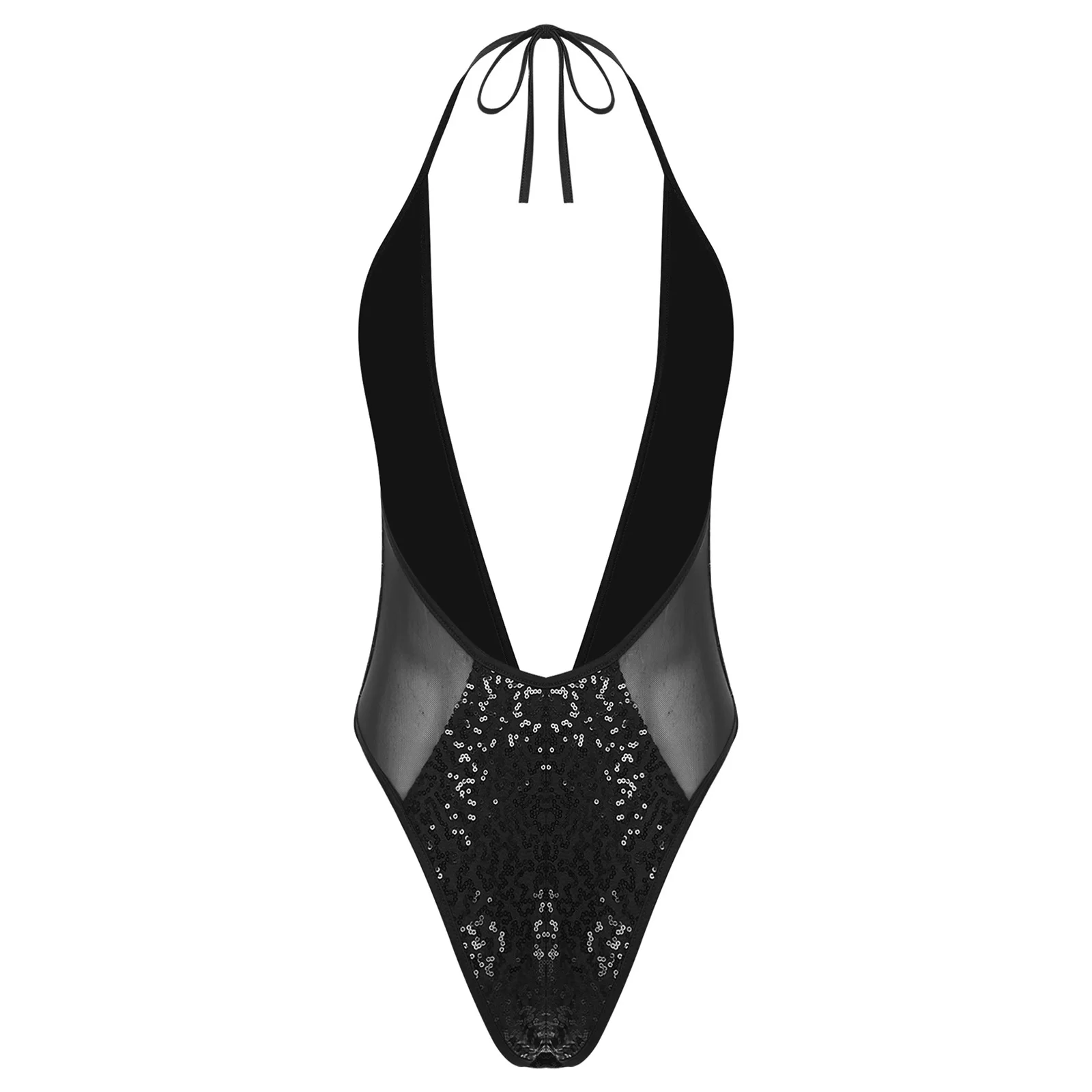Women Glittery Sequined Bodysuit Swimwear Clubwear Halter Plunging V Neck Backless Leotard Bathing Suit for Beachwear Pool Party