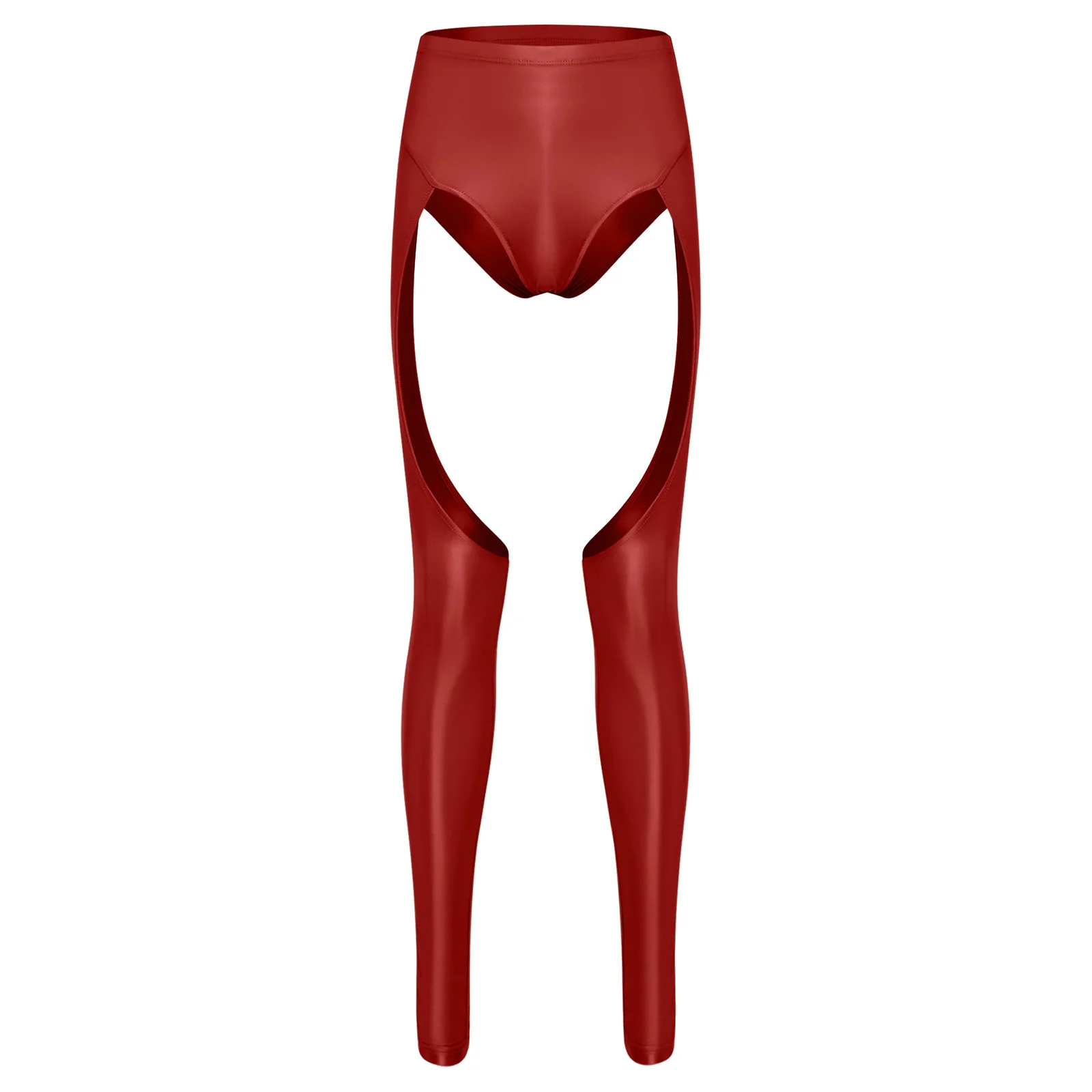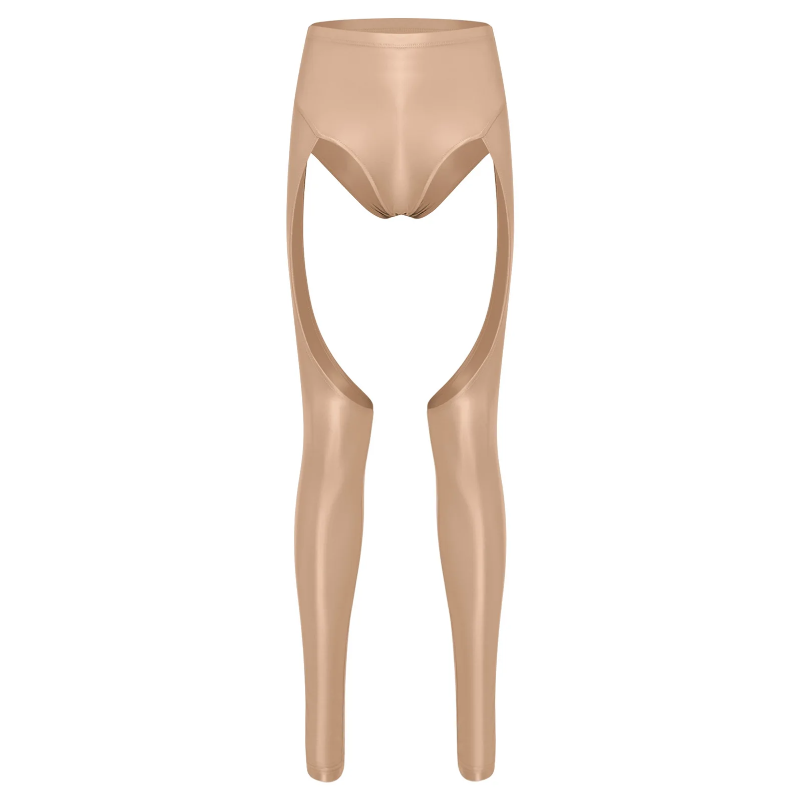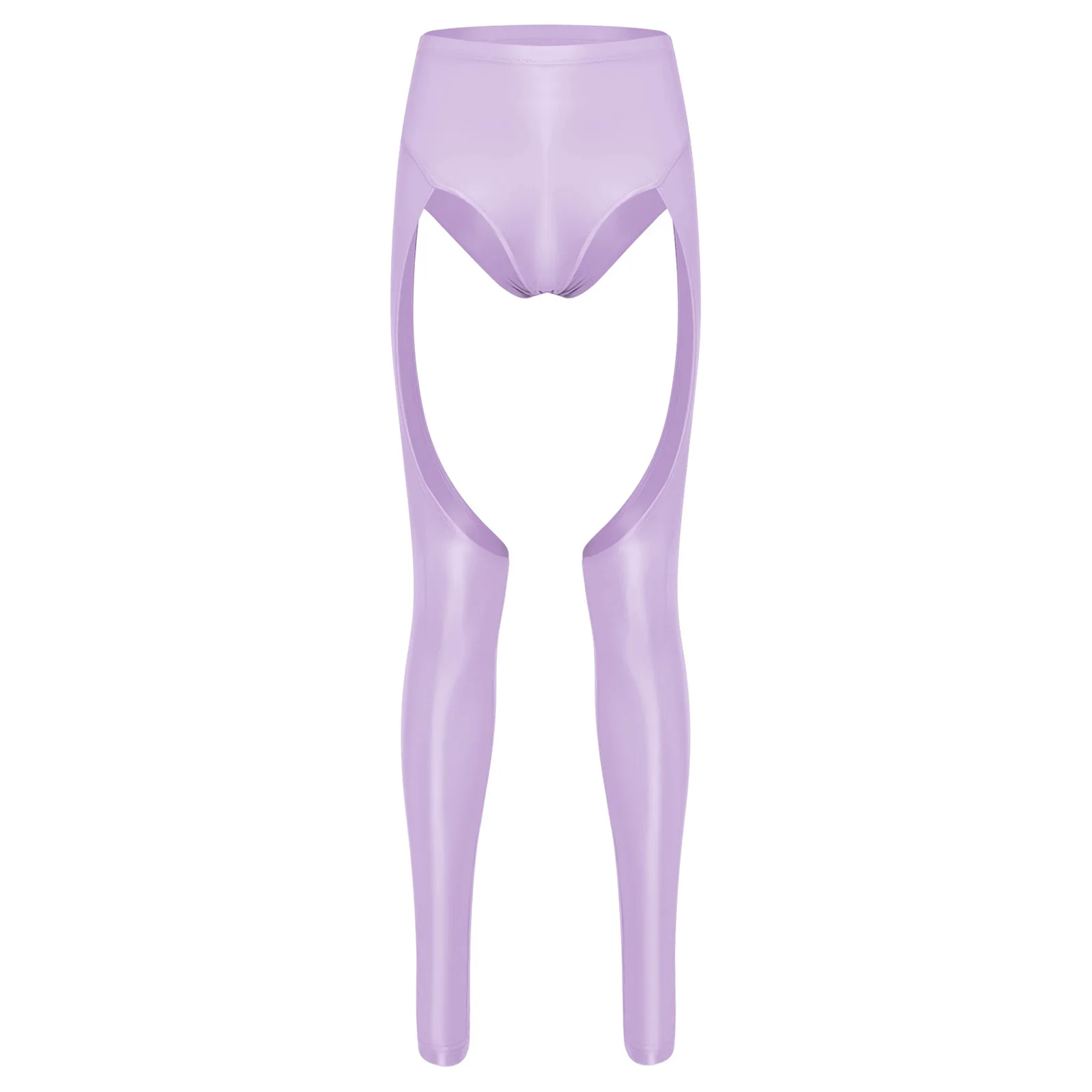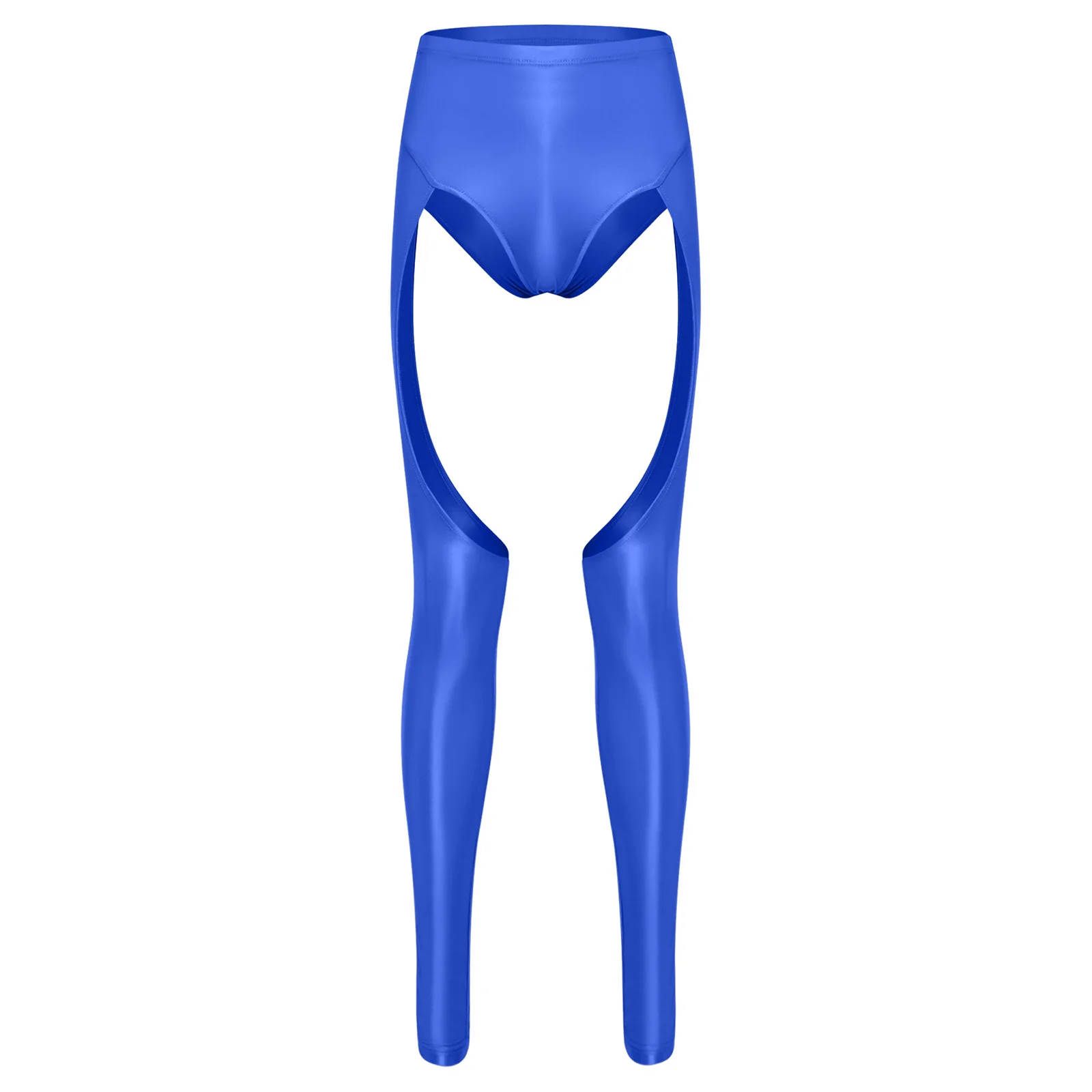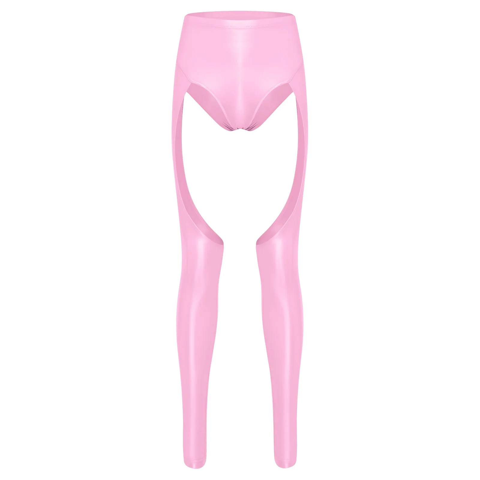 Women Glossy Hollow Out Thigh Leggings Yoga Clubwear Smooth Elastic Waist Cutout Tights Pants for Pilates Workout Gym Sports