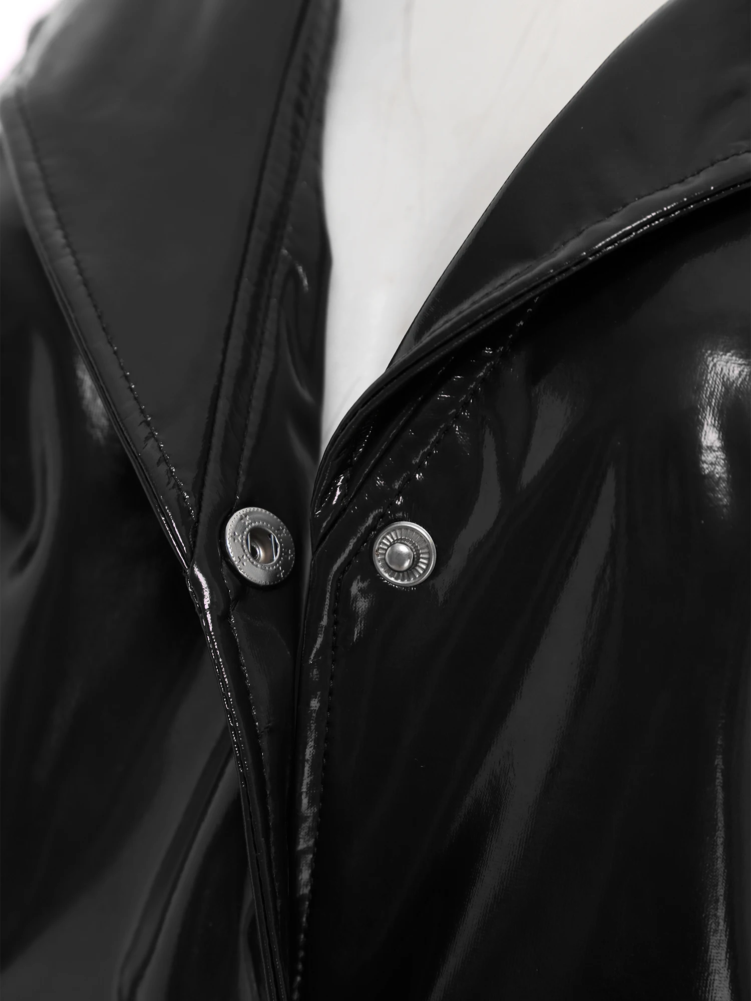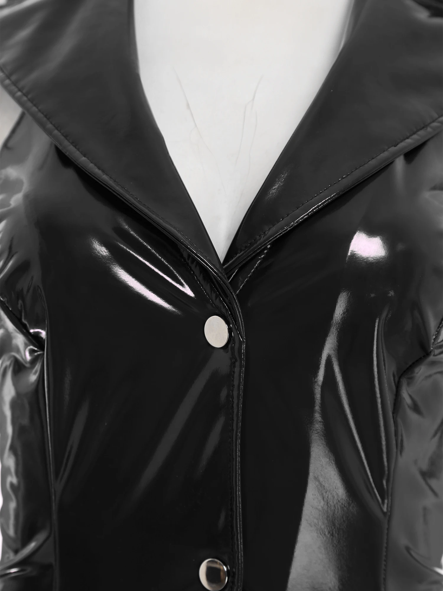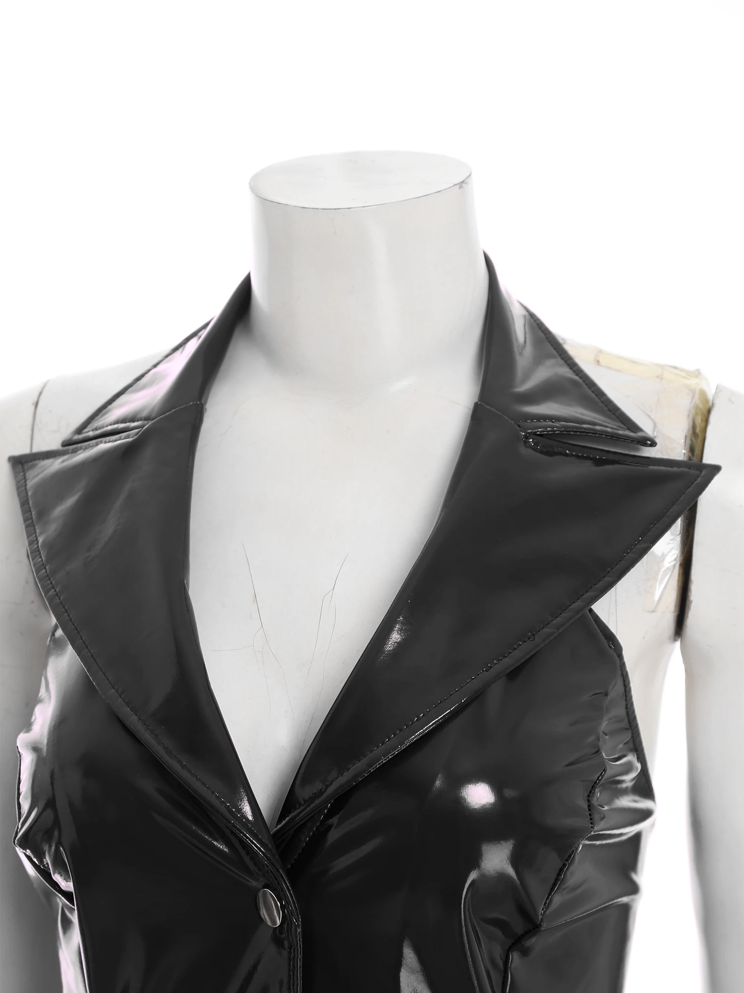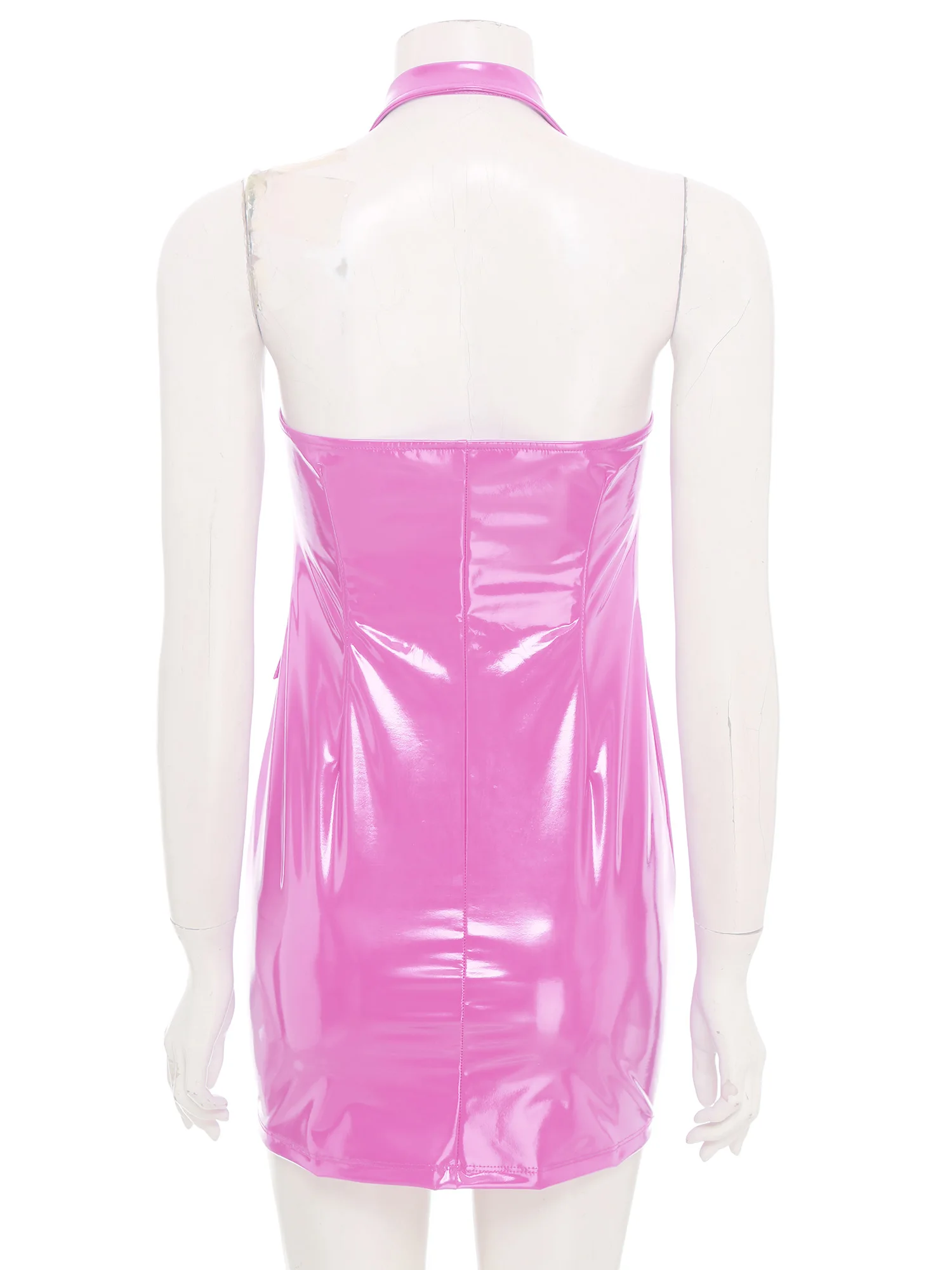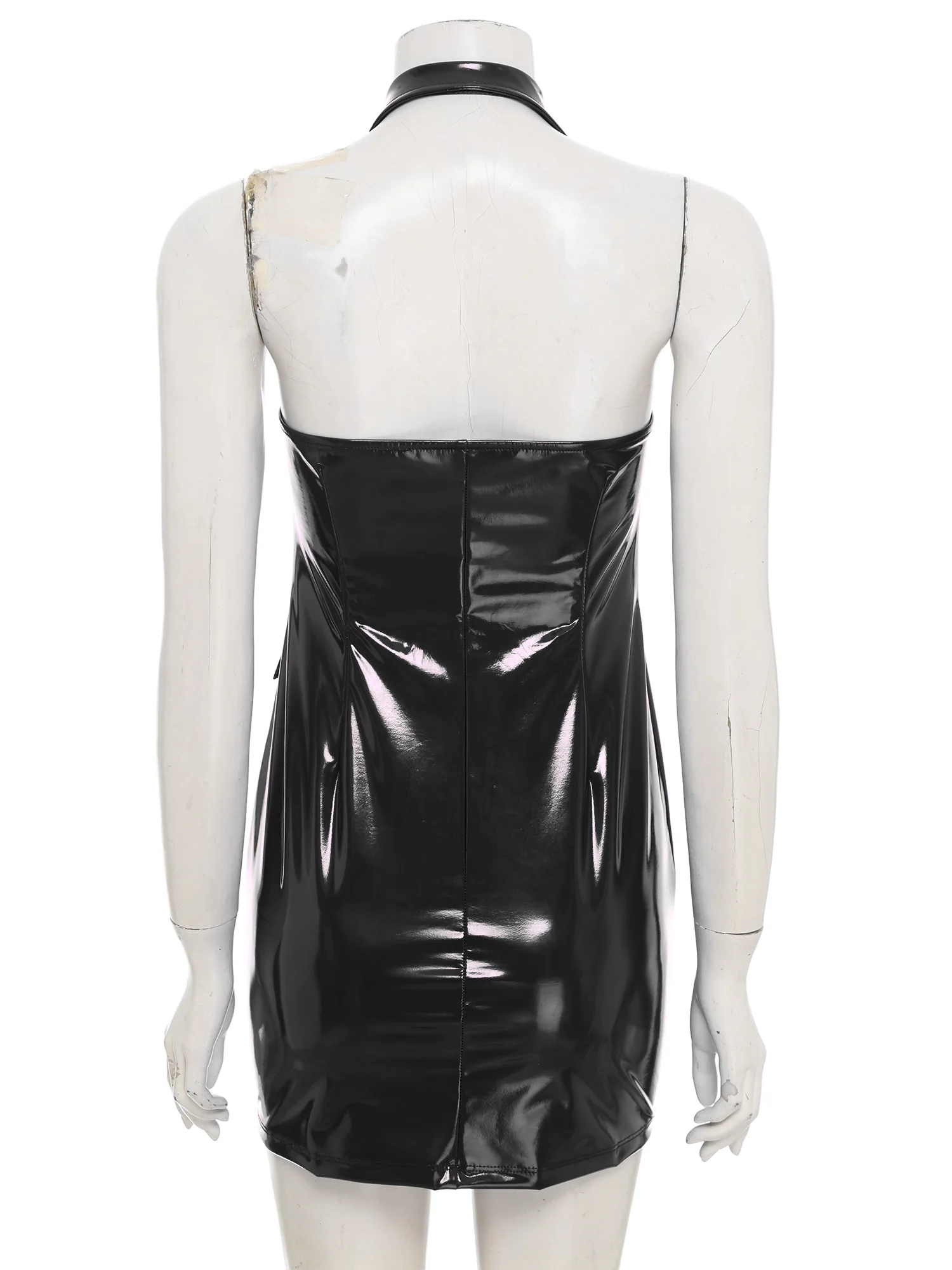 Women Glossy PU Leather Bodycon Dress Wet Look Notched Collar Deep V Neck Sleeveless Buttons Dress for Rave Party Club Wear