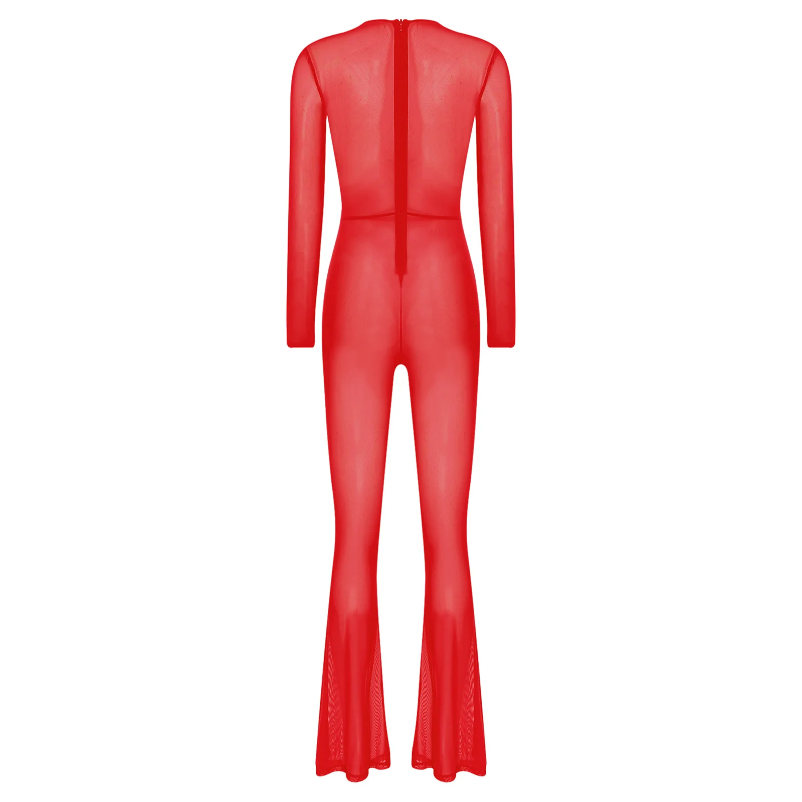 The bell-bottom see-through mesh elements are very fashionable, giving the bodysuit a charming look.