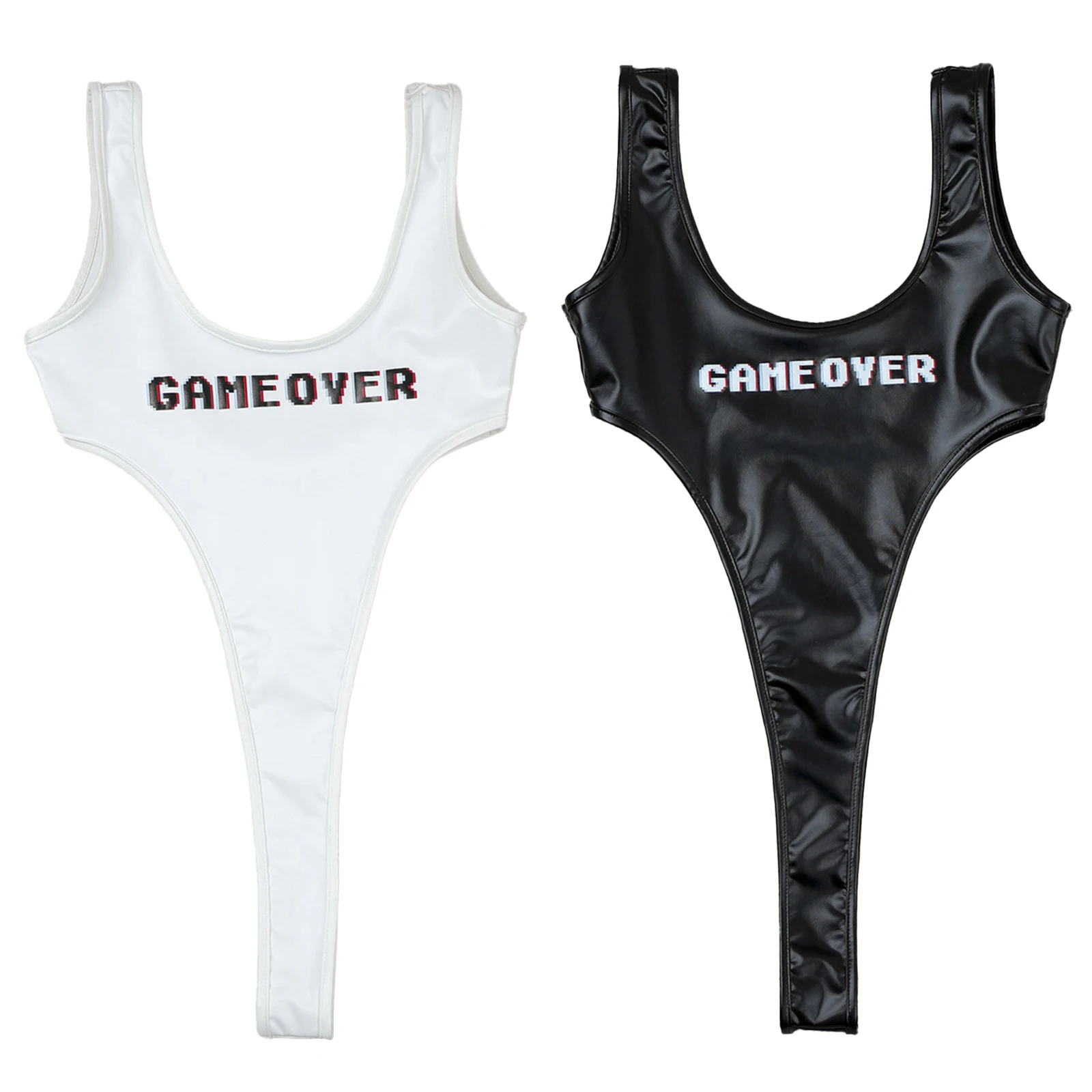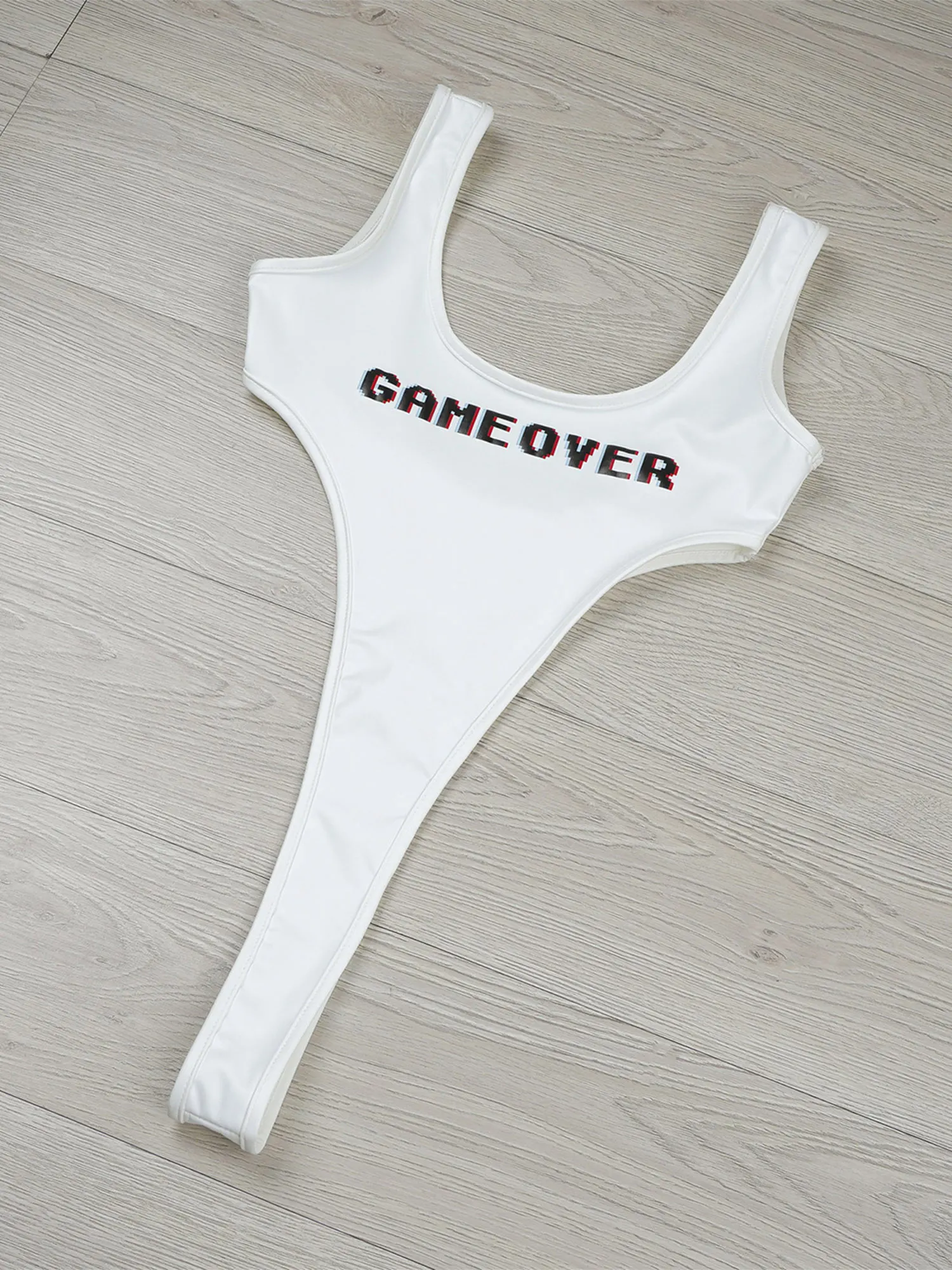 Women High Cut Thongs Bodysuit Swimsuit Swimwear Bikini Sexy Lingerie One Piece Letters Printed Catsuit Clubwear Nightwear
