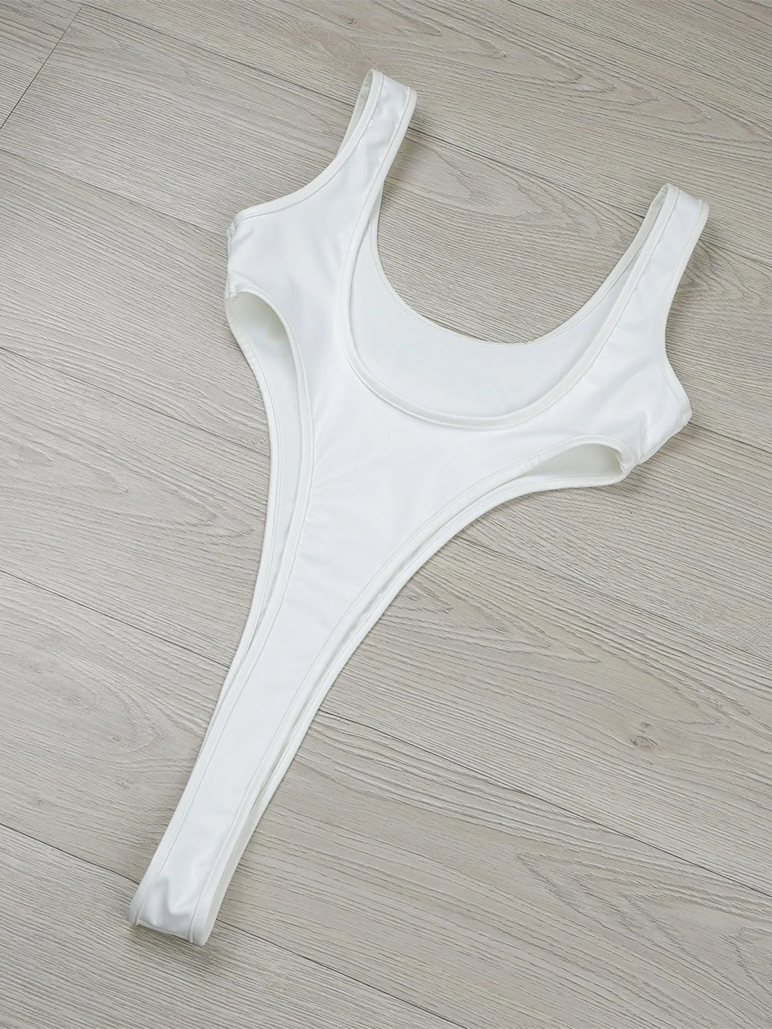 U back and open butt type, this one-piece and snug-fitting bodysuit with glossy appearance.