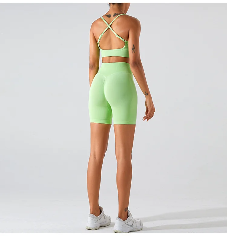 Women High Waist Yoga Shorts Summer Gym Fitness Sports Seamless Leggings Biker Shorts Workout Training Running Shorts Sportswear