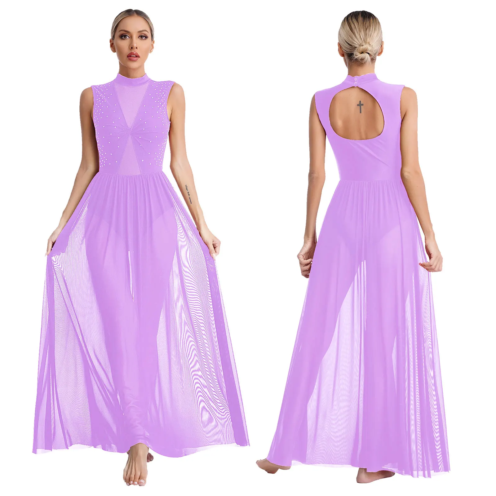The sheer mesh patchwork leotard dress is perfect for lyrical dance, modern dance, stage performance or competition.