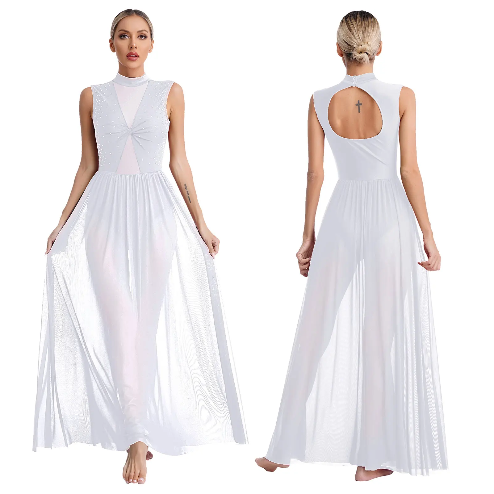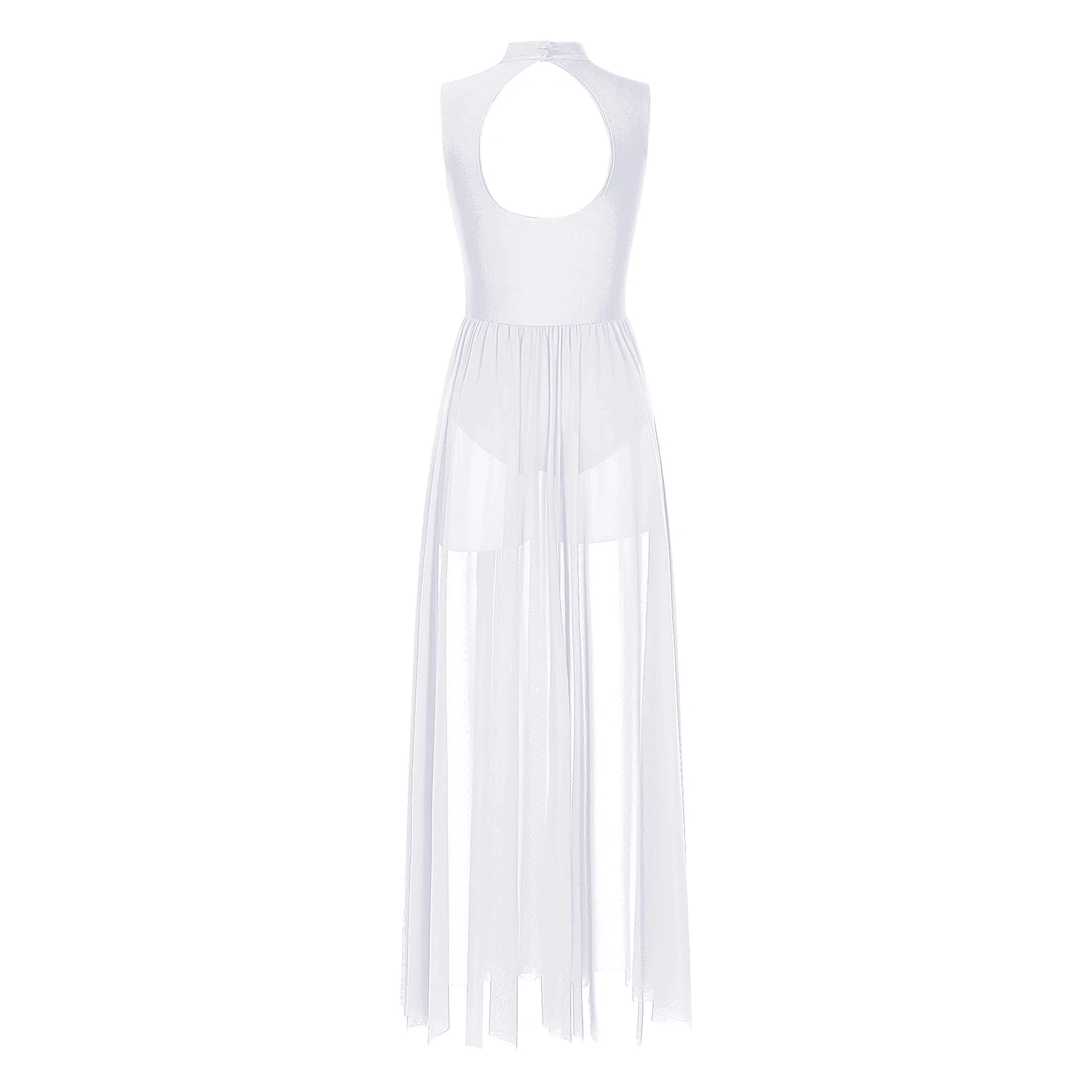 Women Lyrical Dance Long Dress Cutout Back Full Length Overlay Leotard Costume Ballroom Rumba Tango Maxi Dress Dancewear