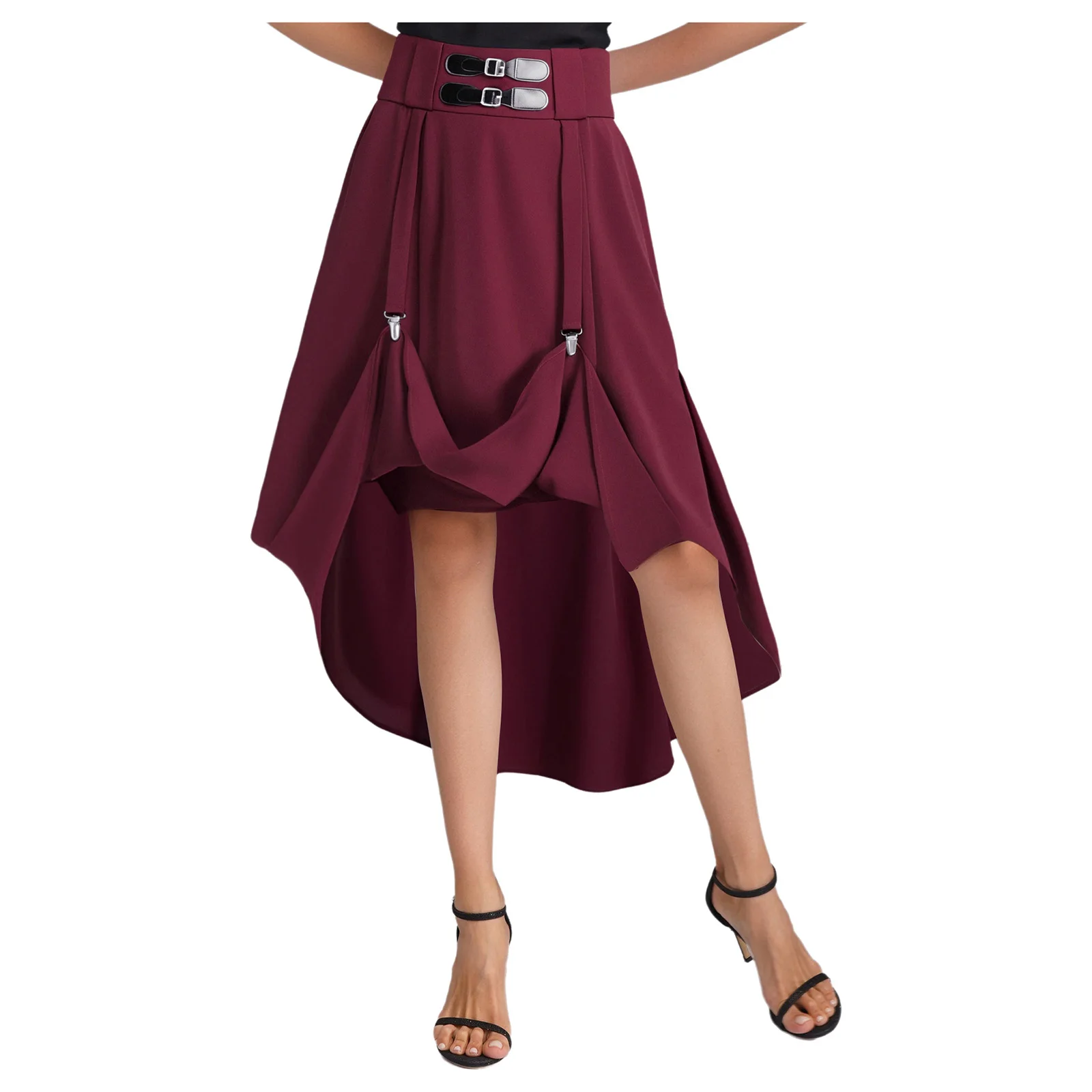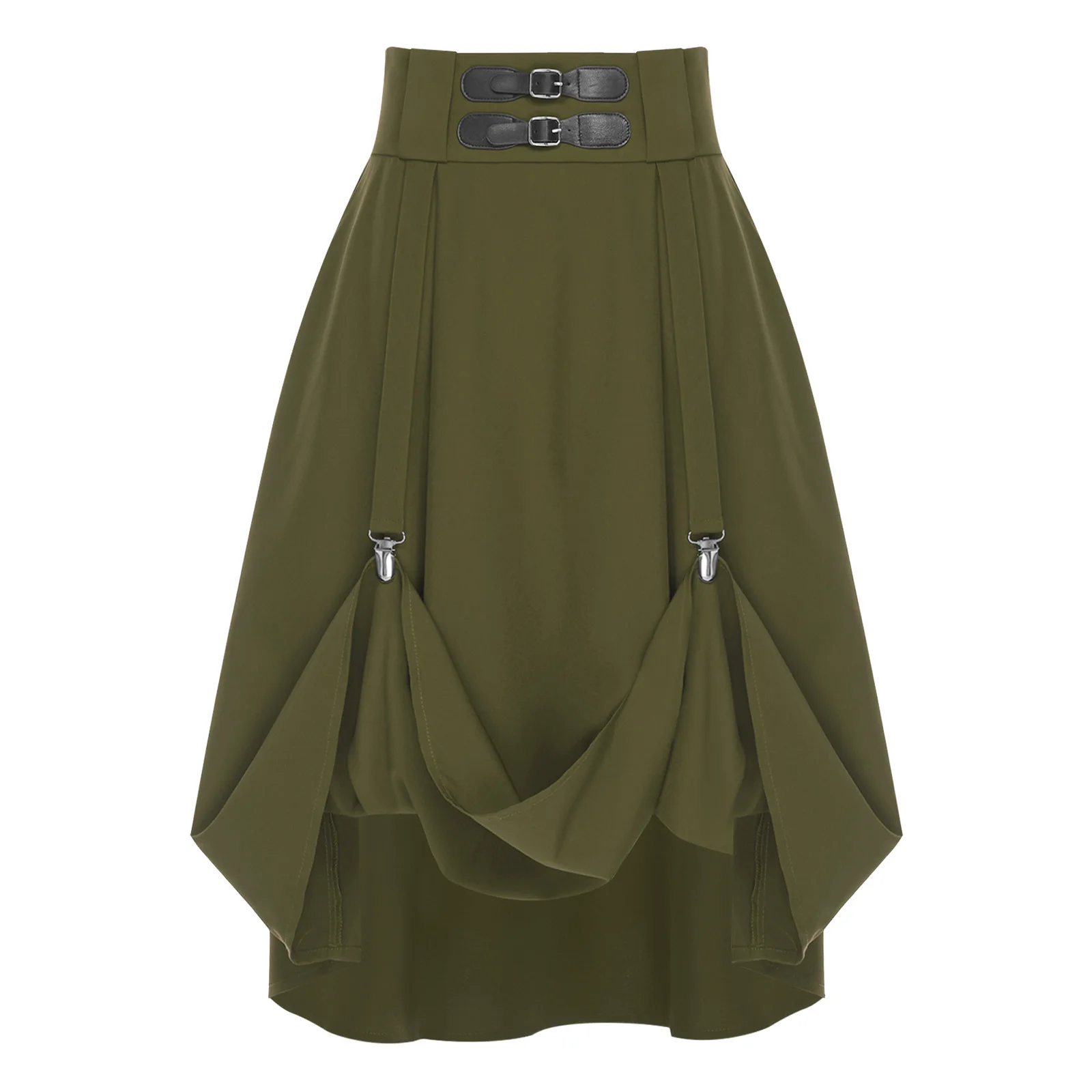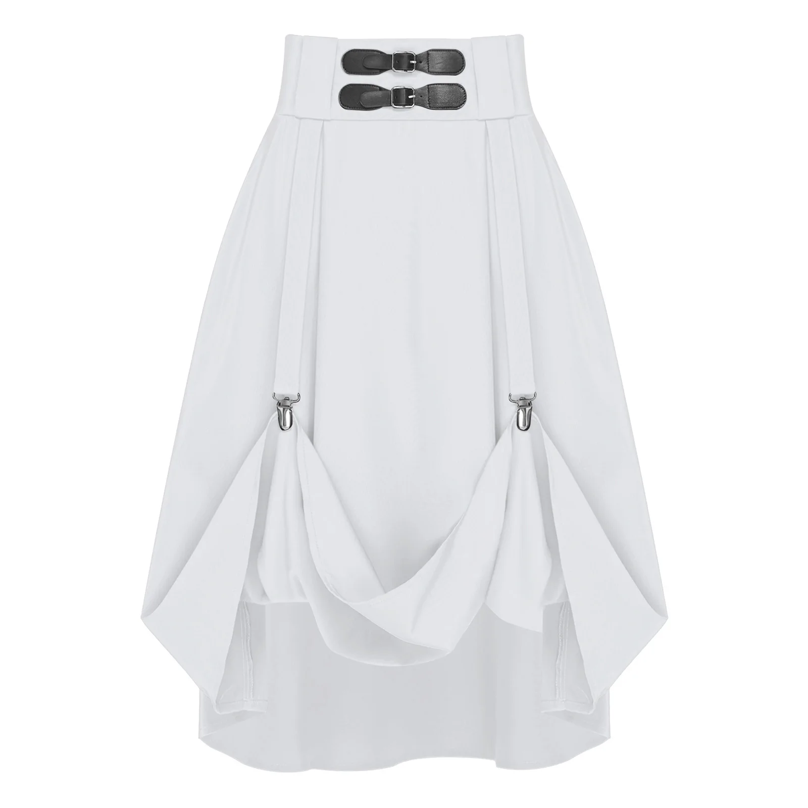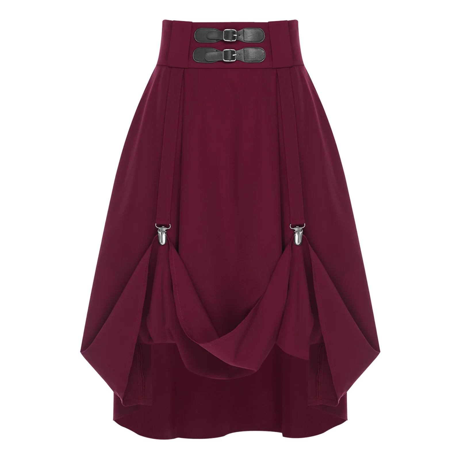 Women Medieval Victorian Renaissance Skirt Cosplay Costume High Waist Buckle Closure Side Adjustable Hem A-Line Vintage Skirt