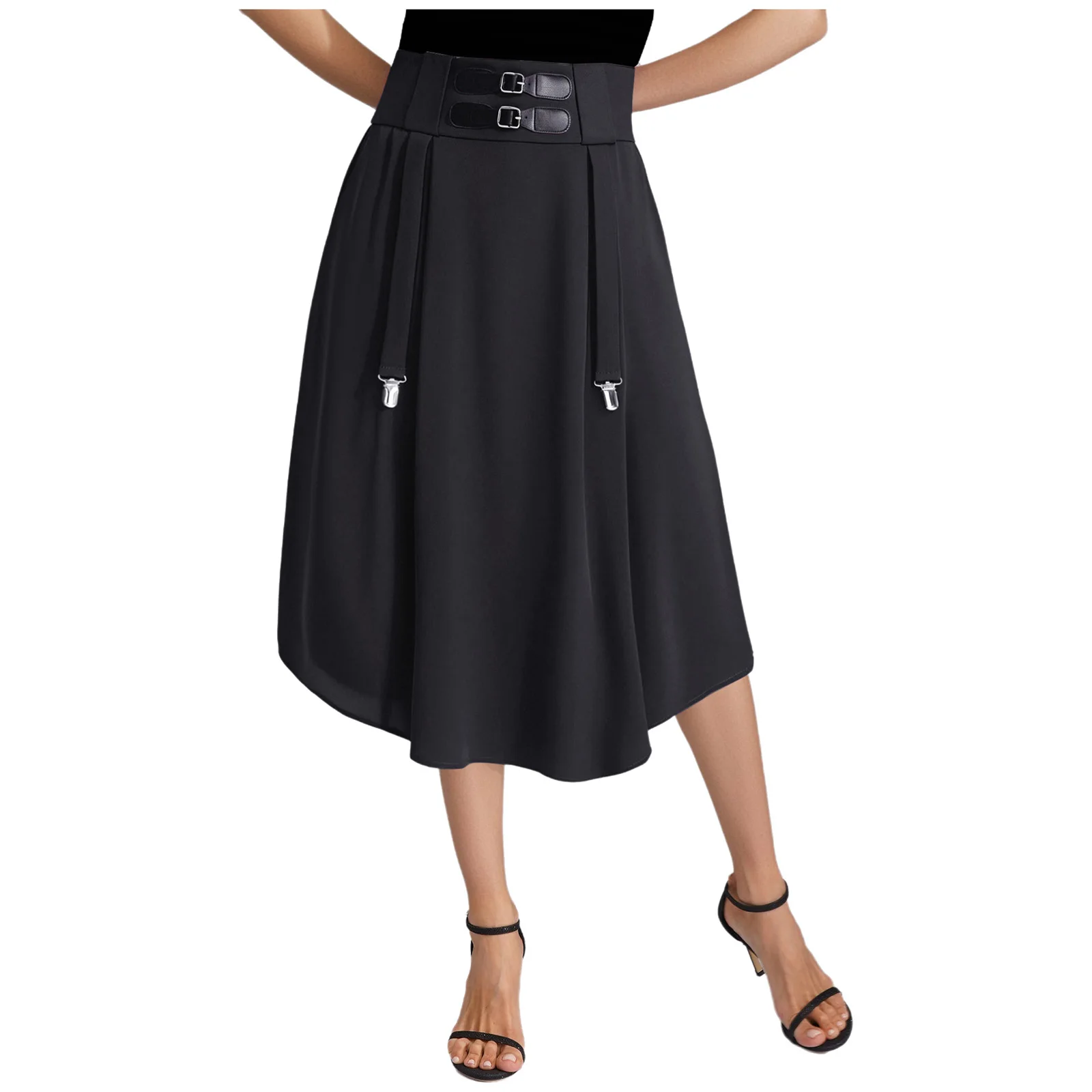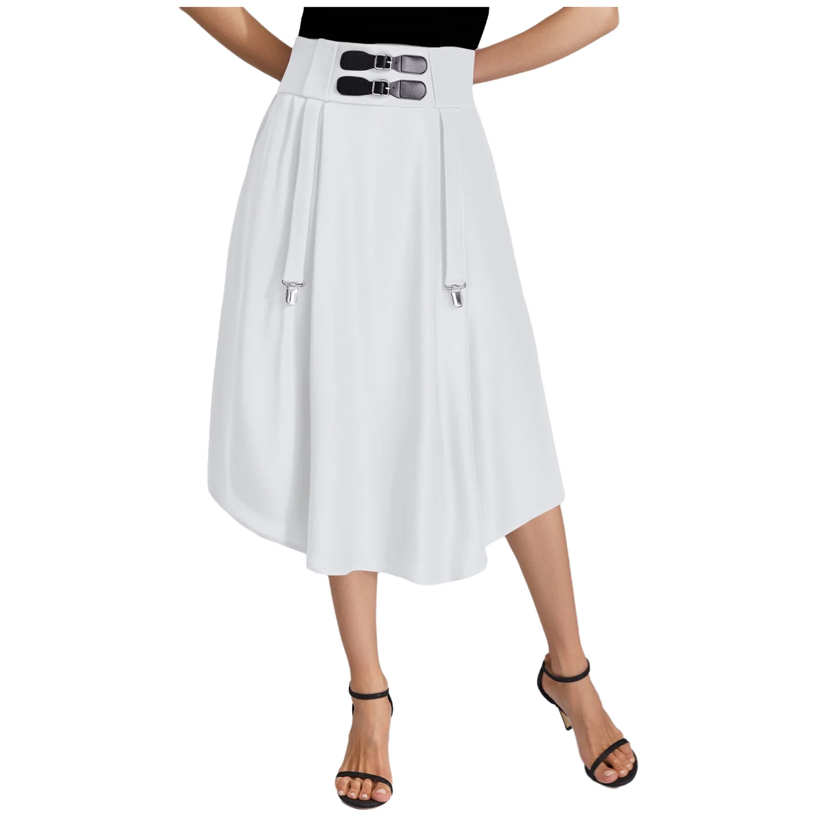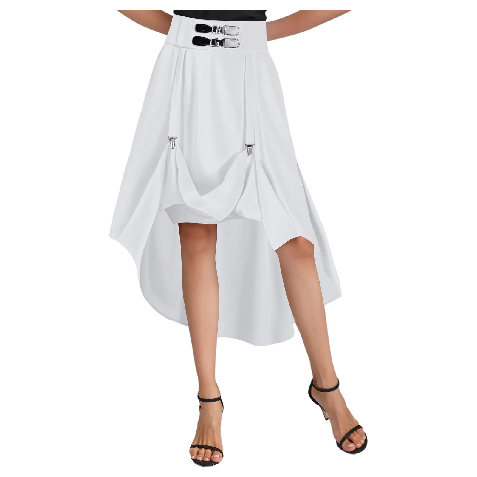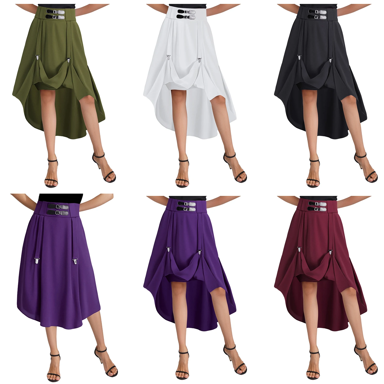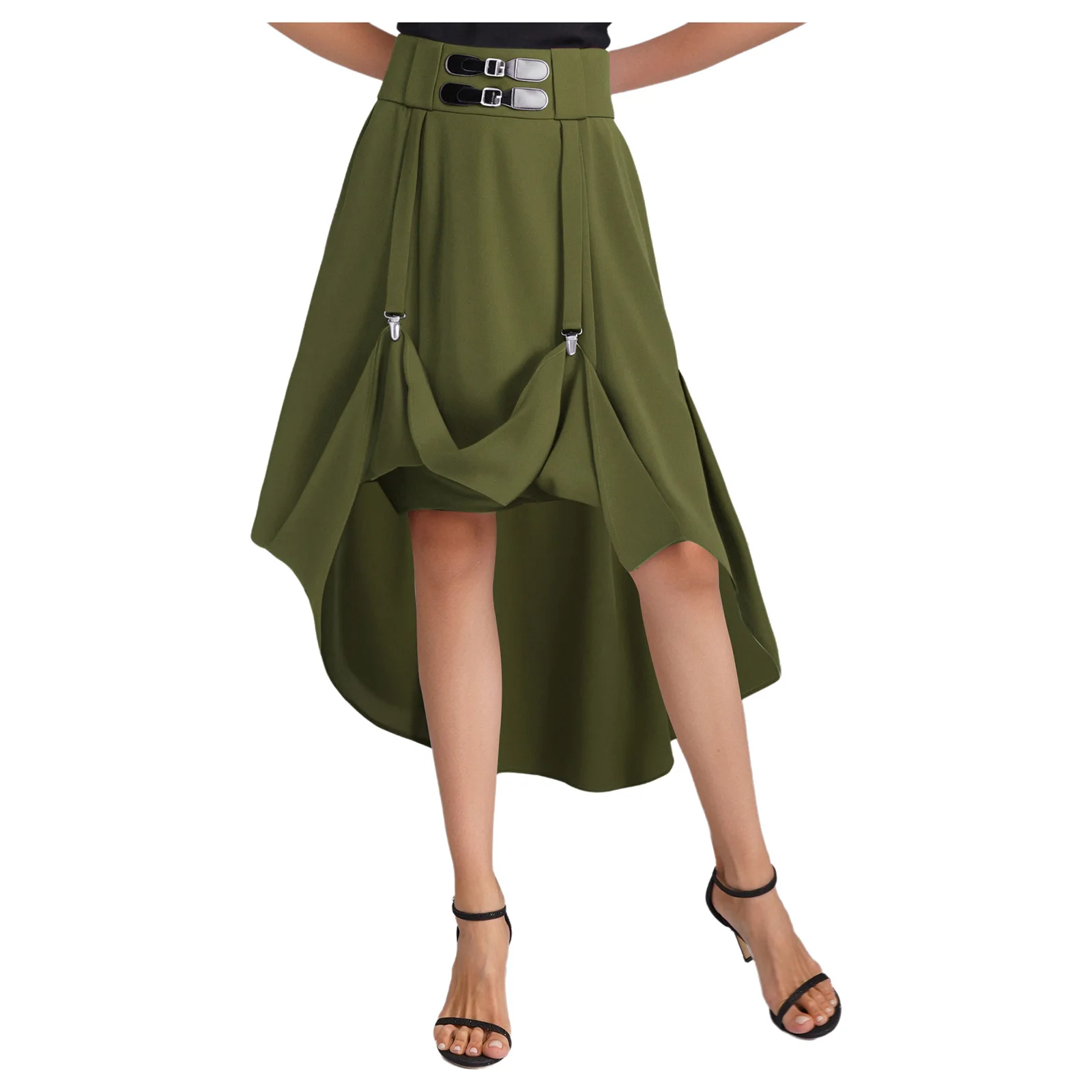 Women Medieval Victorian Renaissance Skirt Cosplay Costume High Waist Buckle Closure Side Adjustable Hem A-Line Vintage Skirt