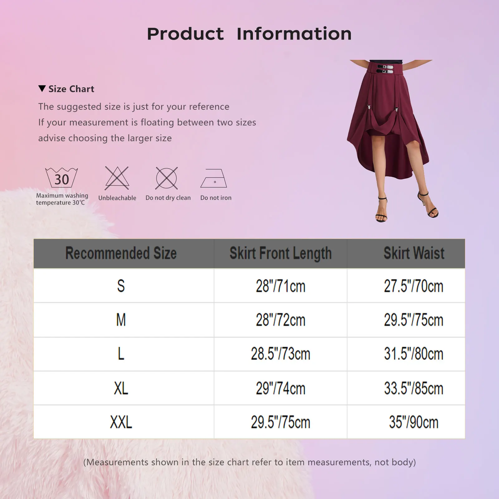 | Tag No. | Recommended Size | Skirt Front Length | Skirt Waist |