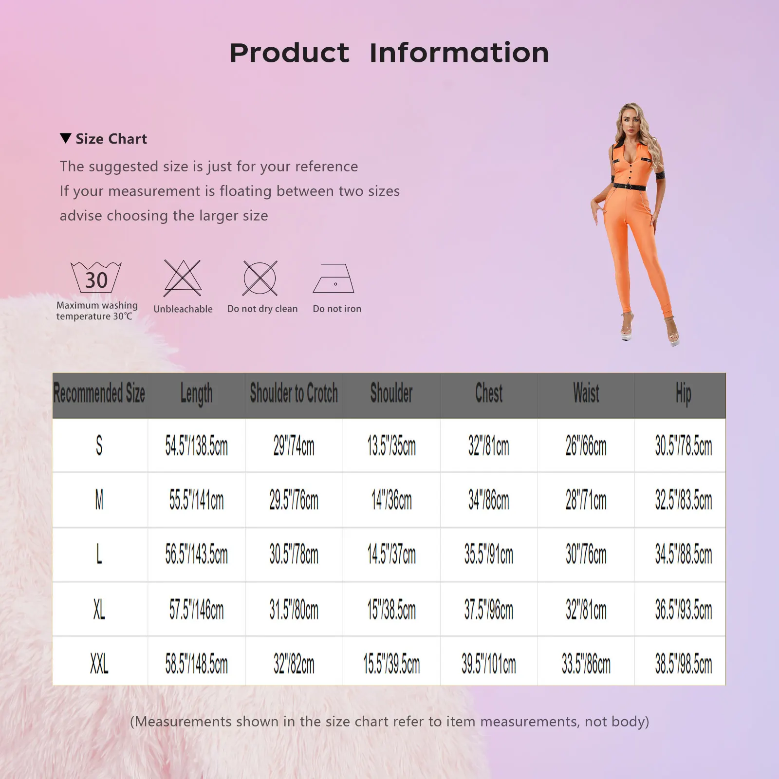 Set Include: 1Pc Jumpsuit, 1Pc Belt, 1 Pair Cuffs