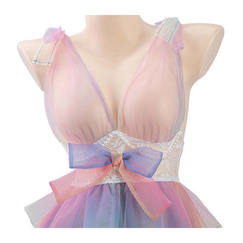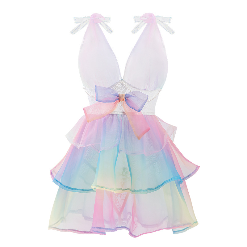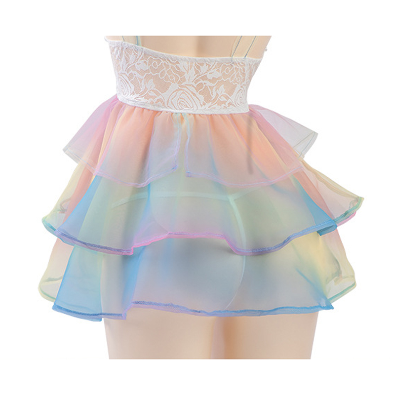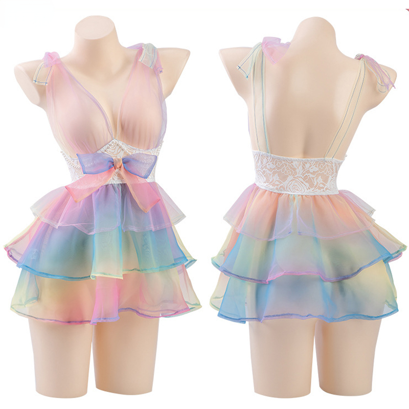 Women Princess Elf Chiffon Rainbow Yarn Dress Uniform Cosplay Sweet Girl Candy Cake Pajamas Outfits Costumes Role Play Underwear