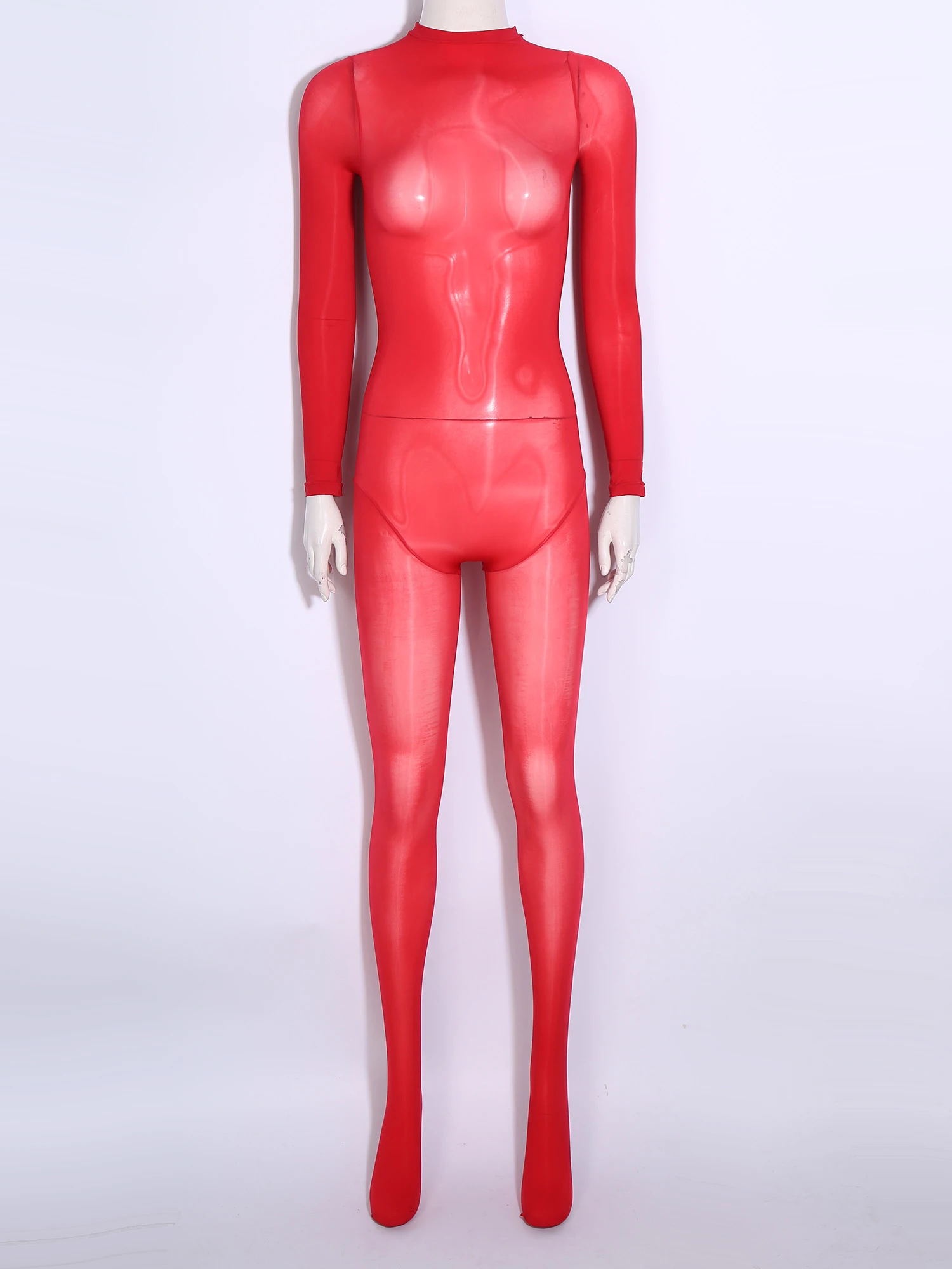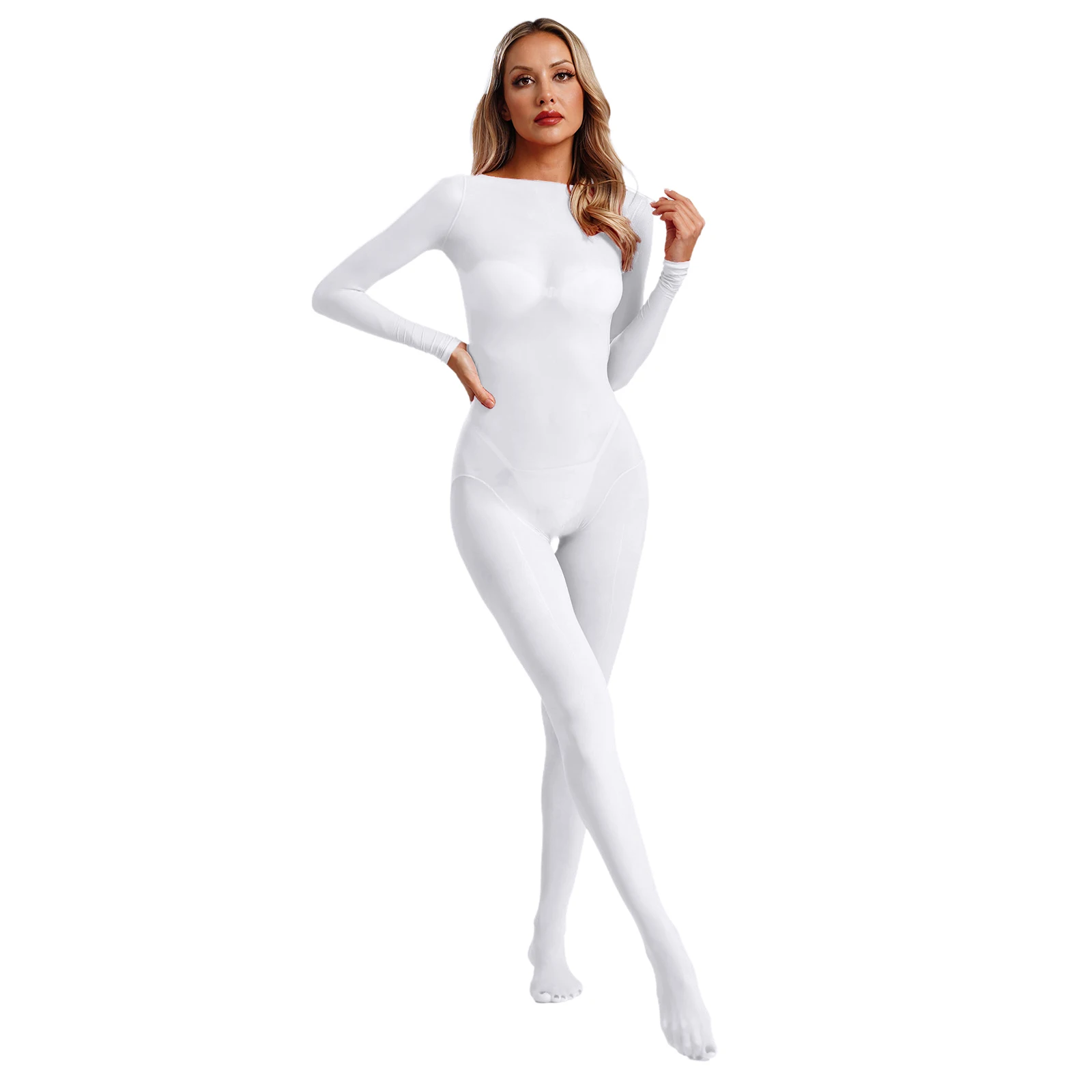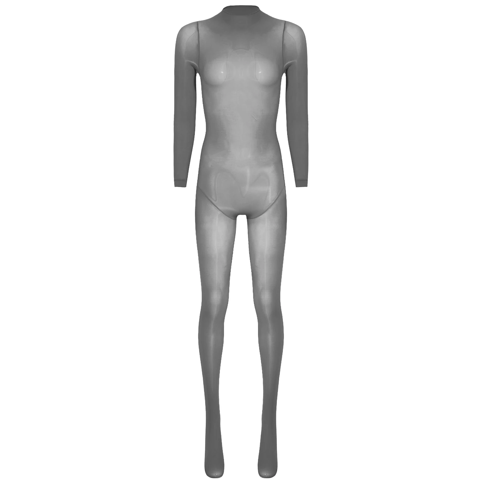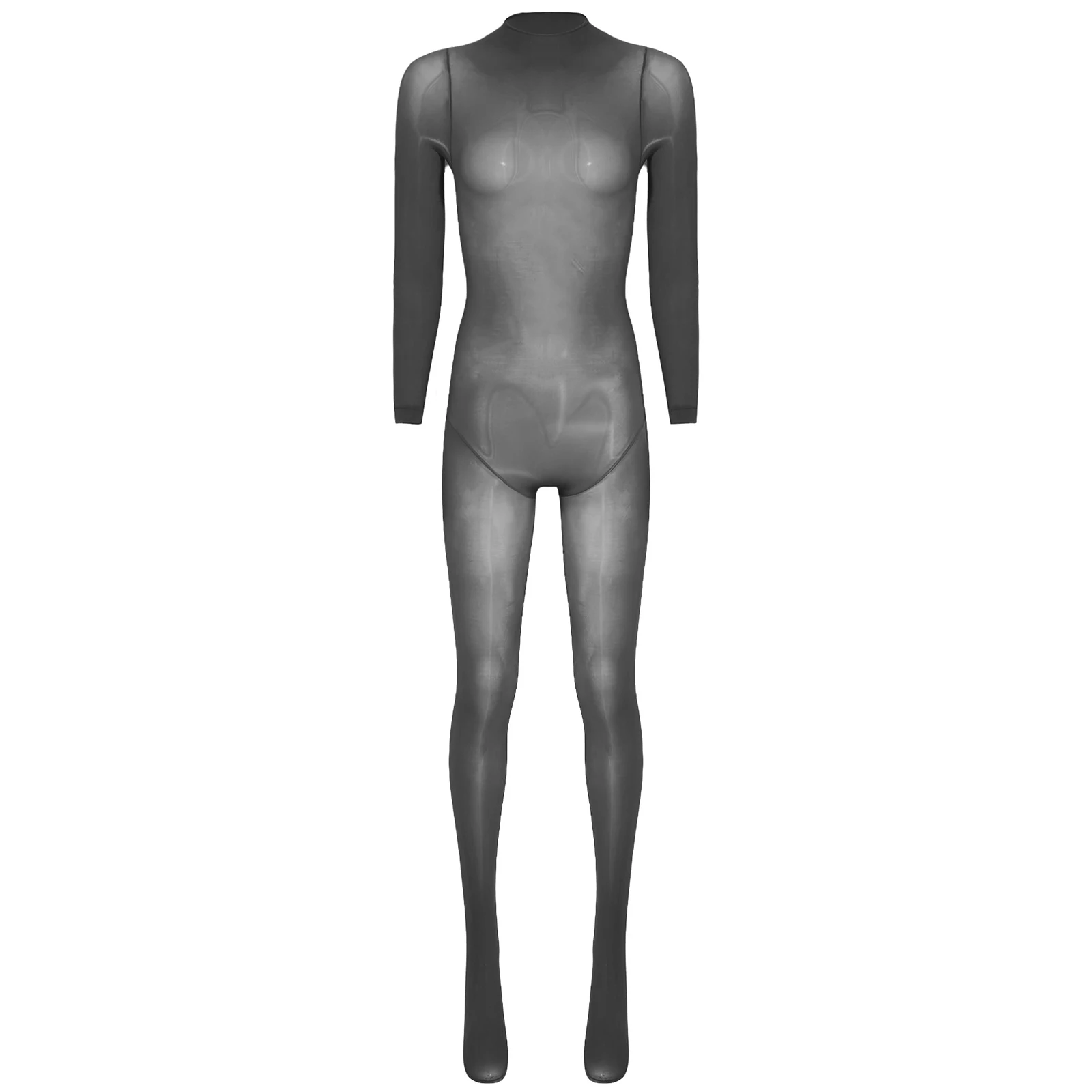 Women See Through Lingerie Costume Sheer Bodycon Full Length Bodysuit Long Sleeve Footed Jumpsuit Fun Underwear Club Night Wear