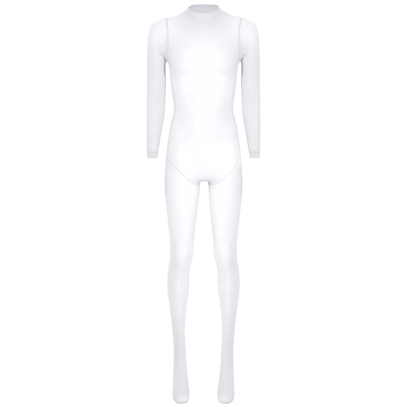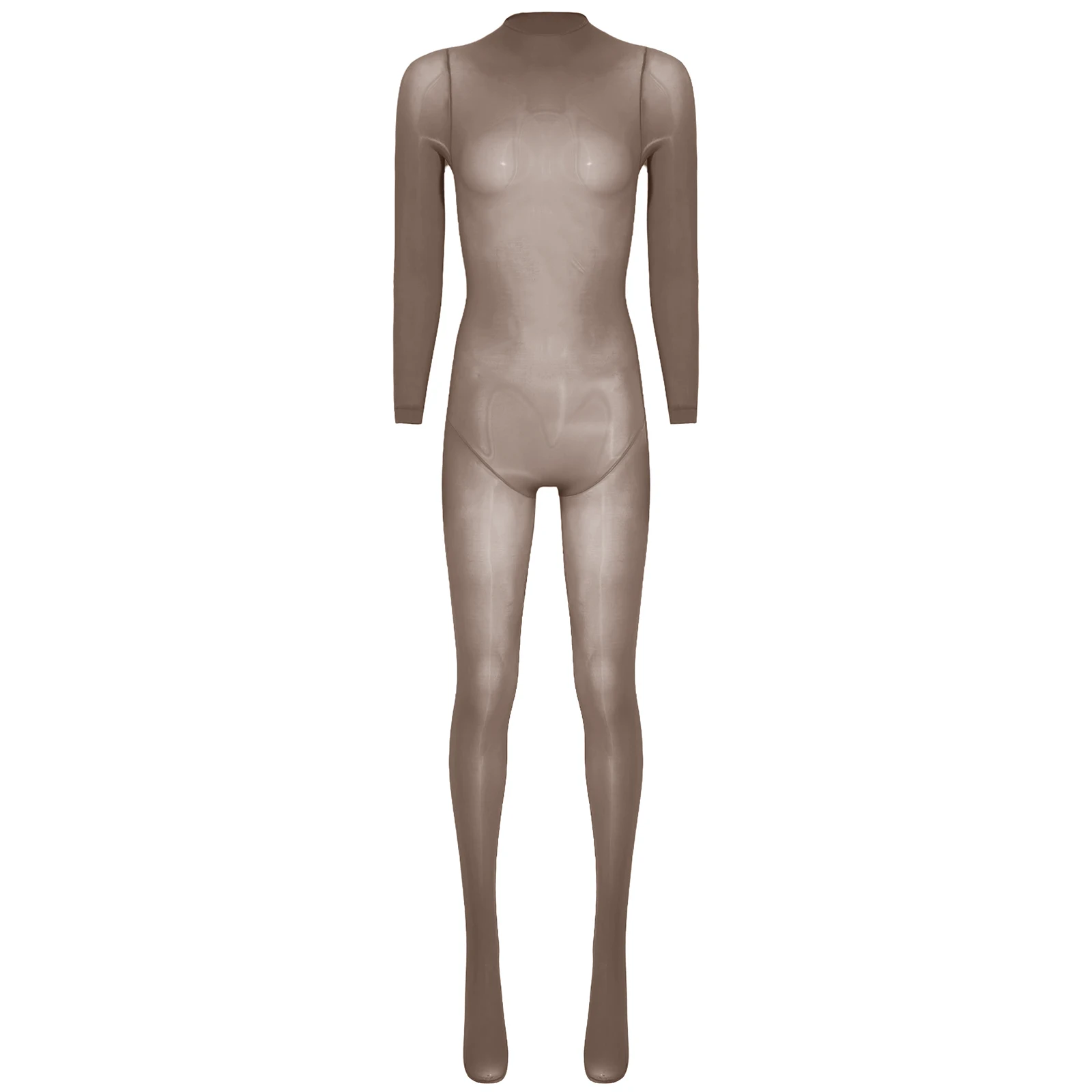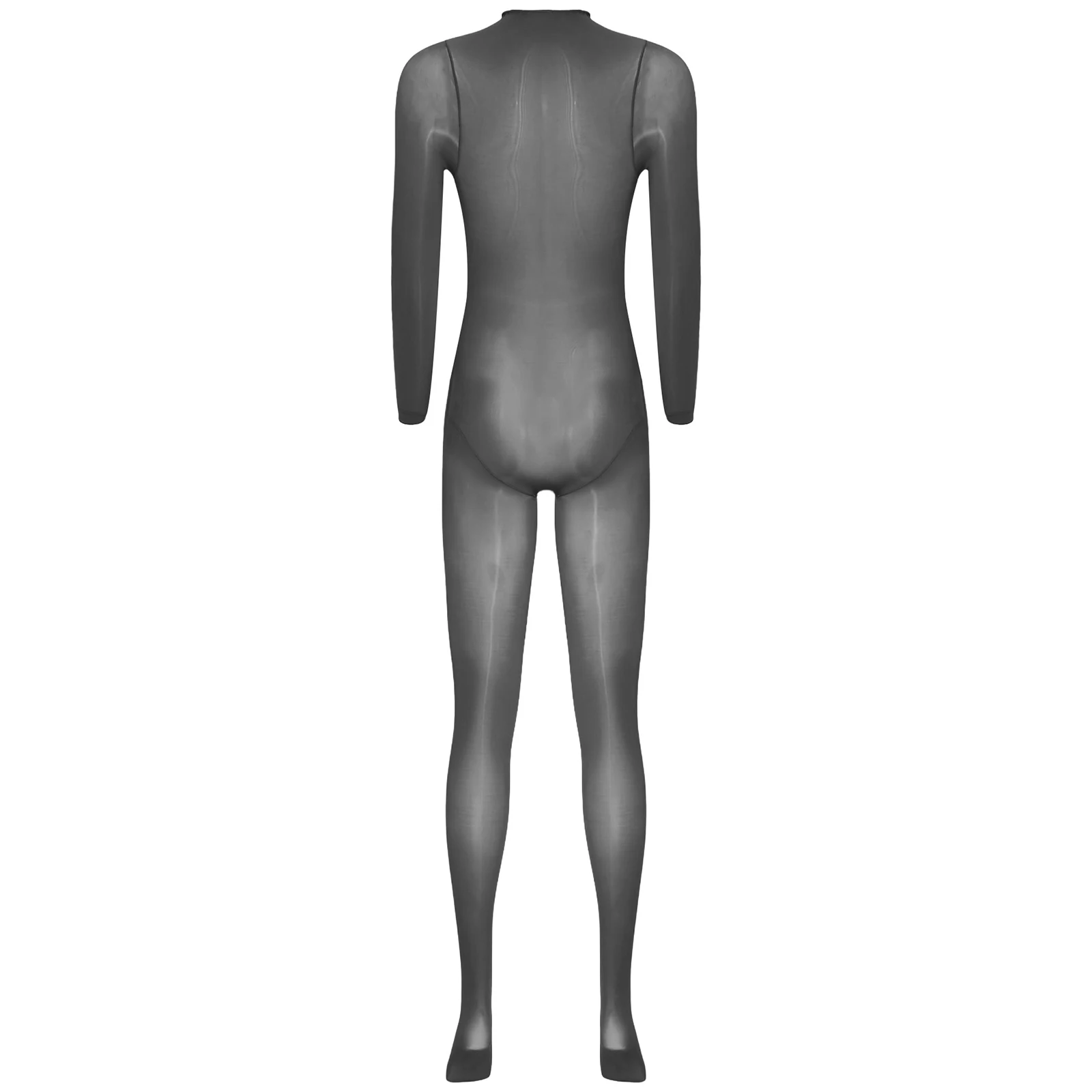 Women See Through Lingerie Costume Sheer Bodycon Full Length Bodysuit Long Sleeve Footed Jumpsuit Fun Underwear Club Night Wear