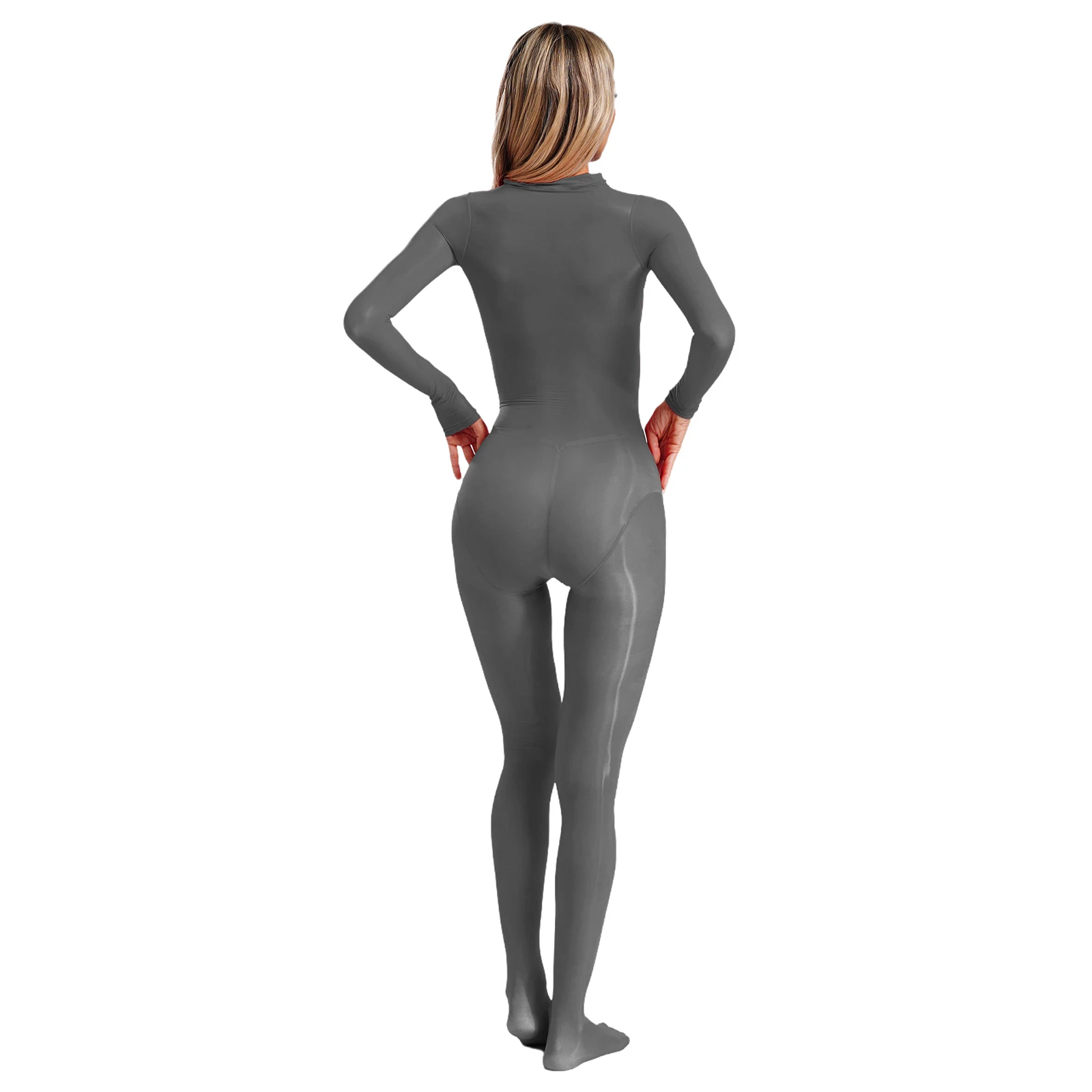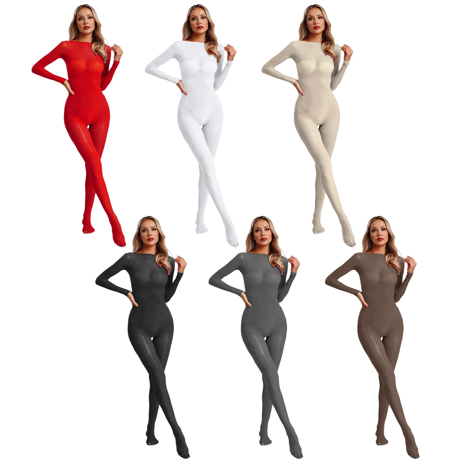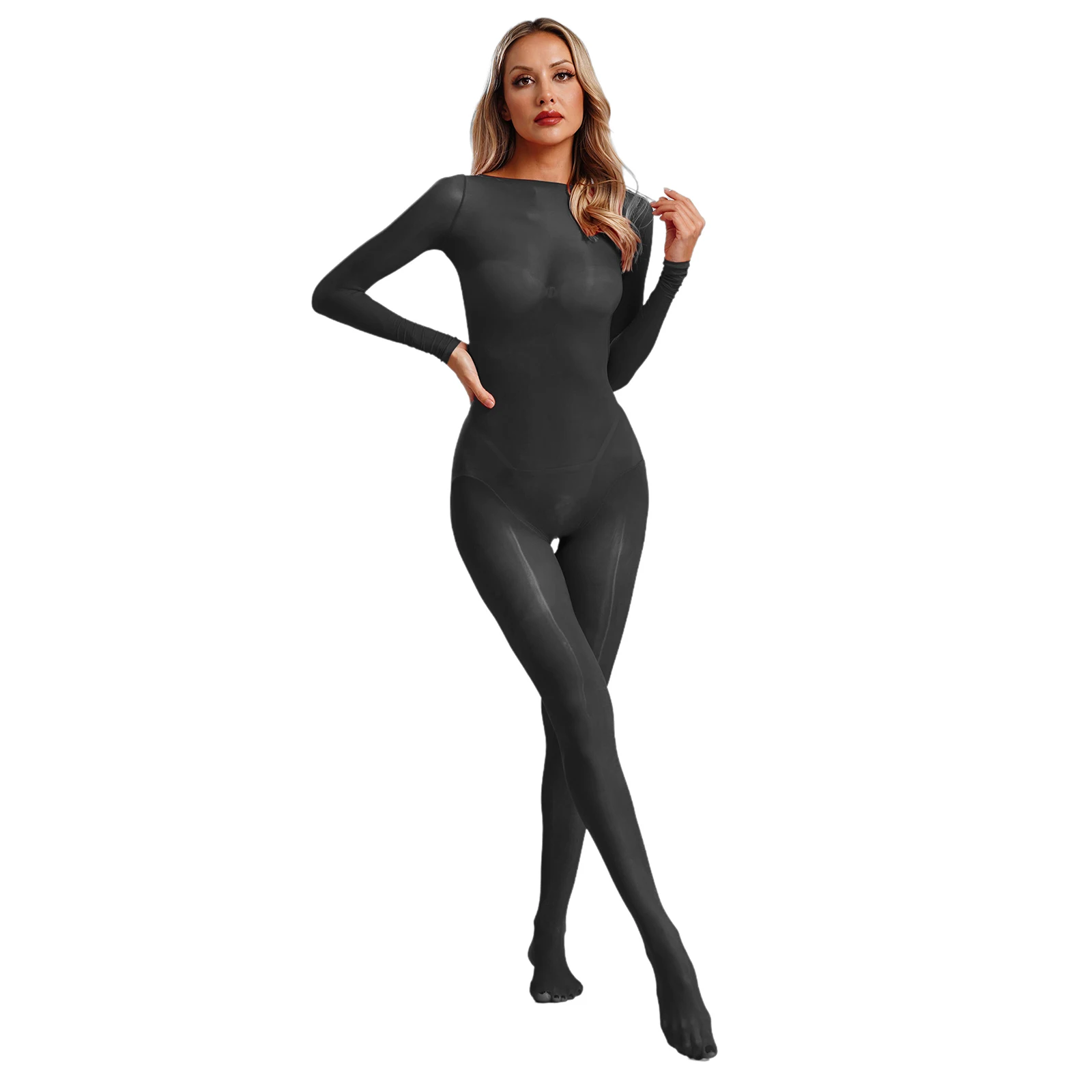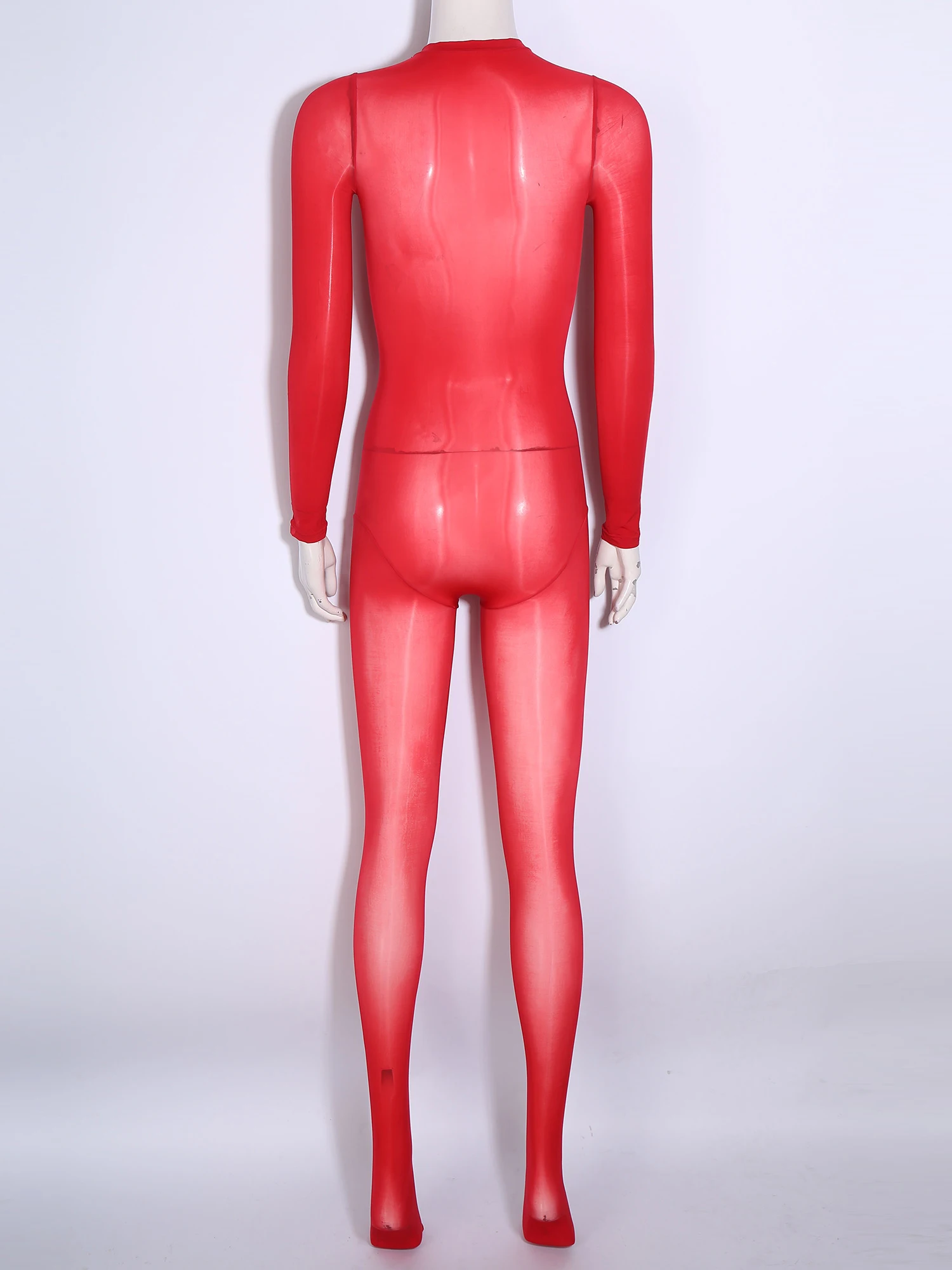 Women See Through Lingerie Costume Sheer Bodycon Full Length Bodysuit Long Sleeve Footed Jumpsuit Fun Underwear Club Night Wear