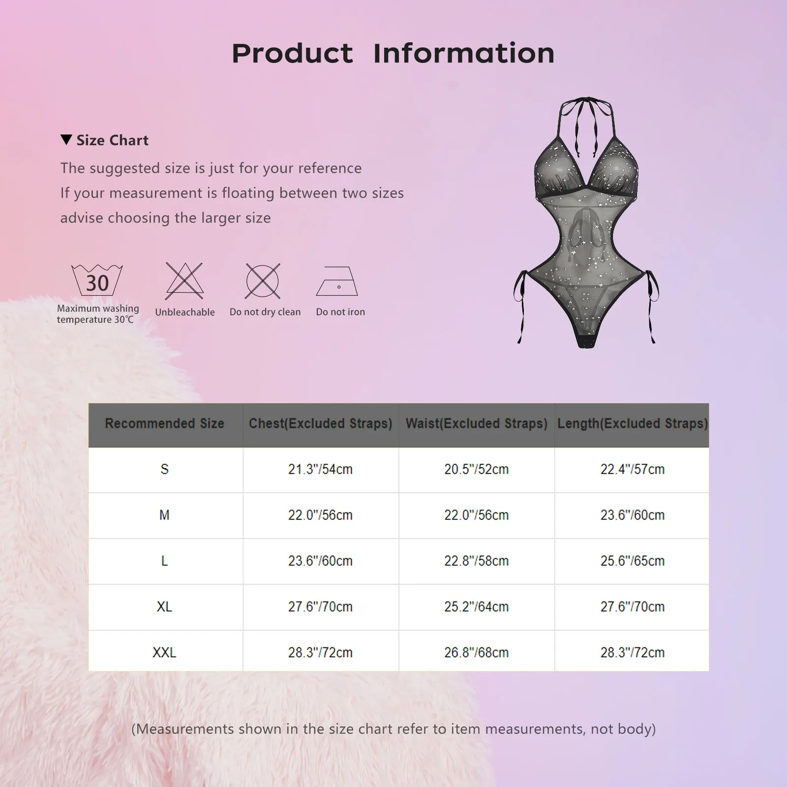 (Measurements shown in the size chart refer to item measurements, not body)