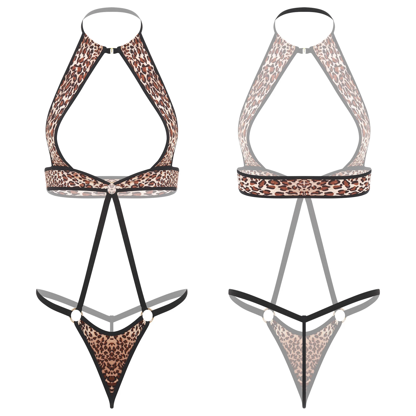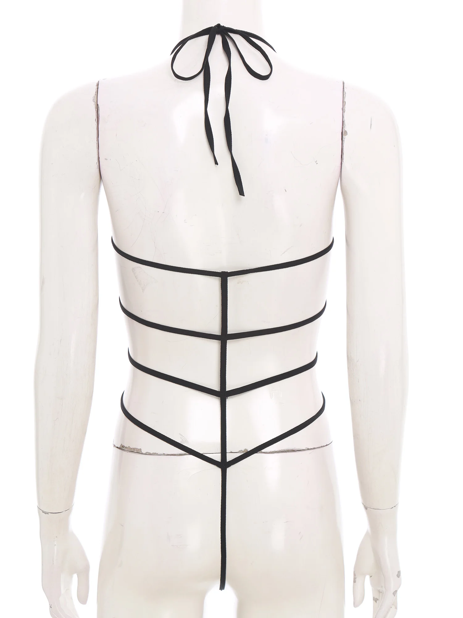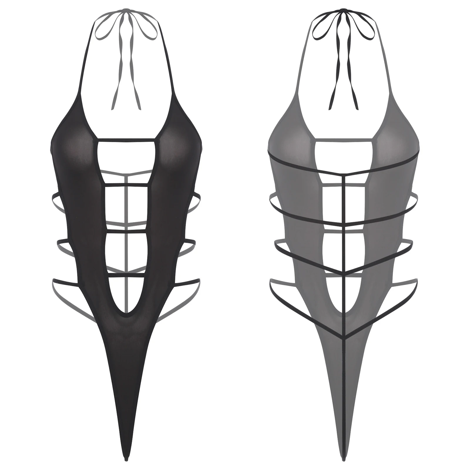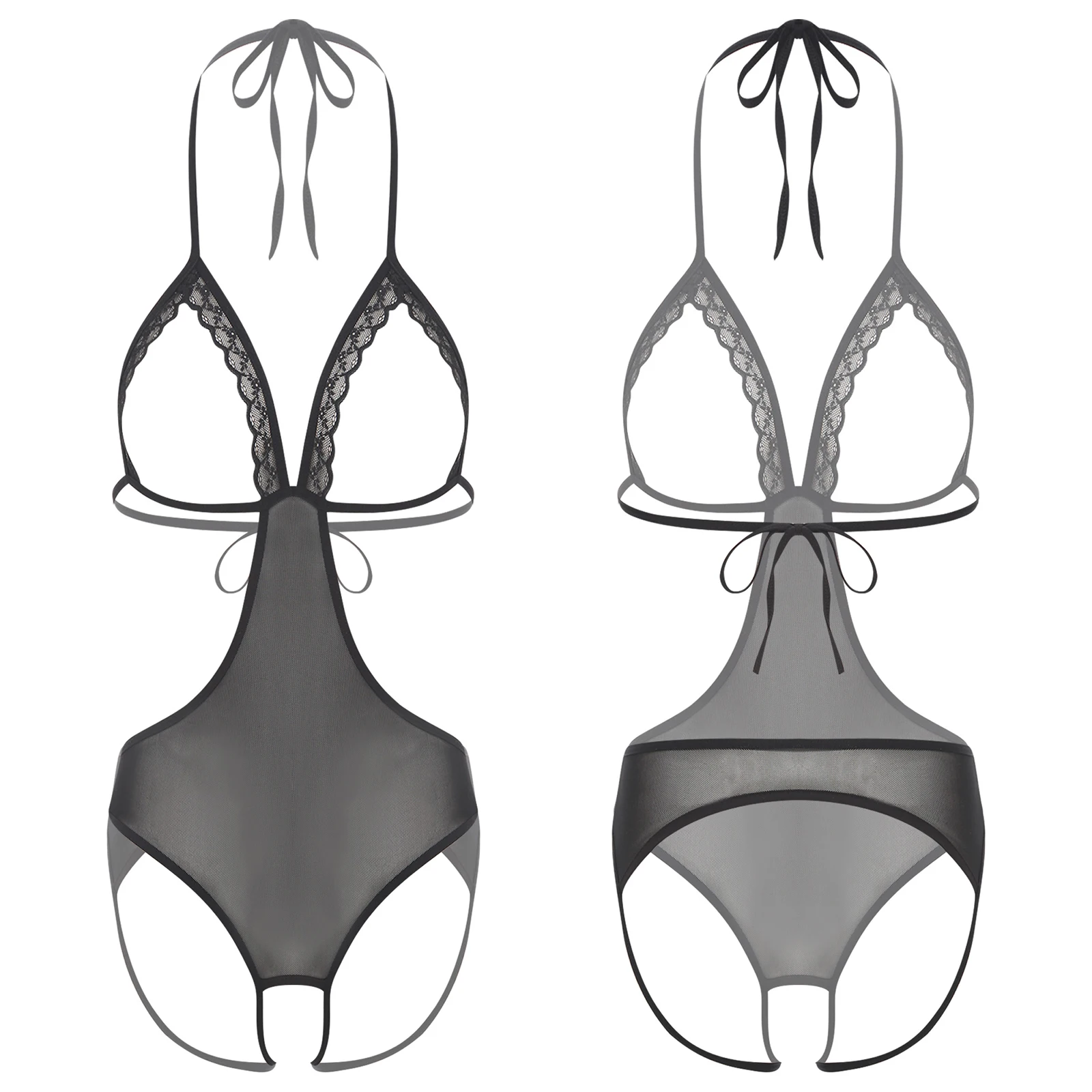 Women Sheer Hollow Out Bodysuit Swimwear See-through Mesh Halter T-back Bikini Leotard One Piece Jumpsuit Nightwear Beachwear