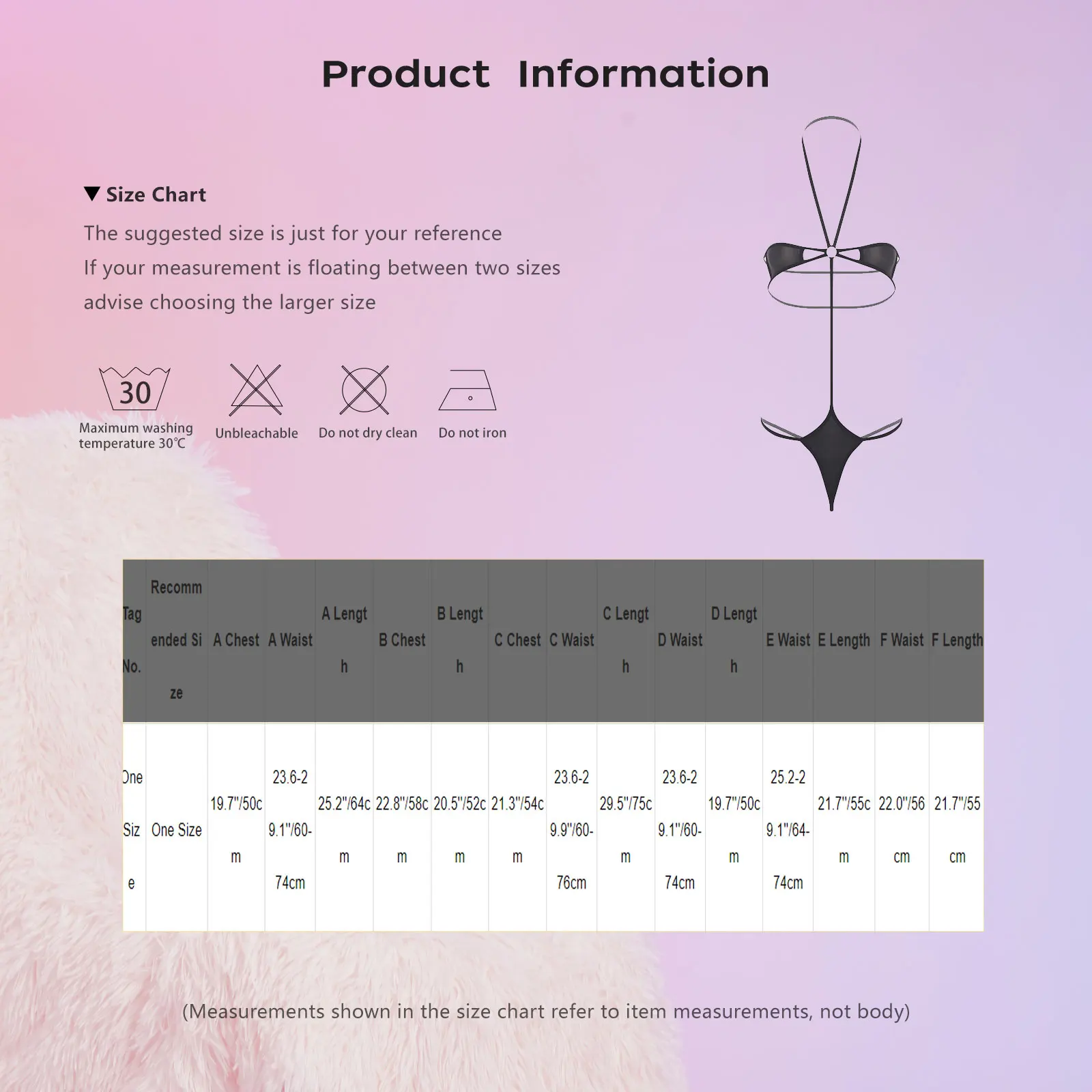 (Measurements shown in the size chart refer to item measurements, not body)