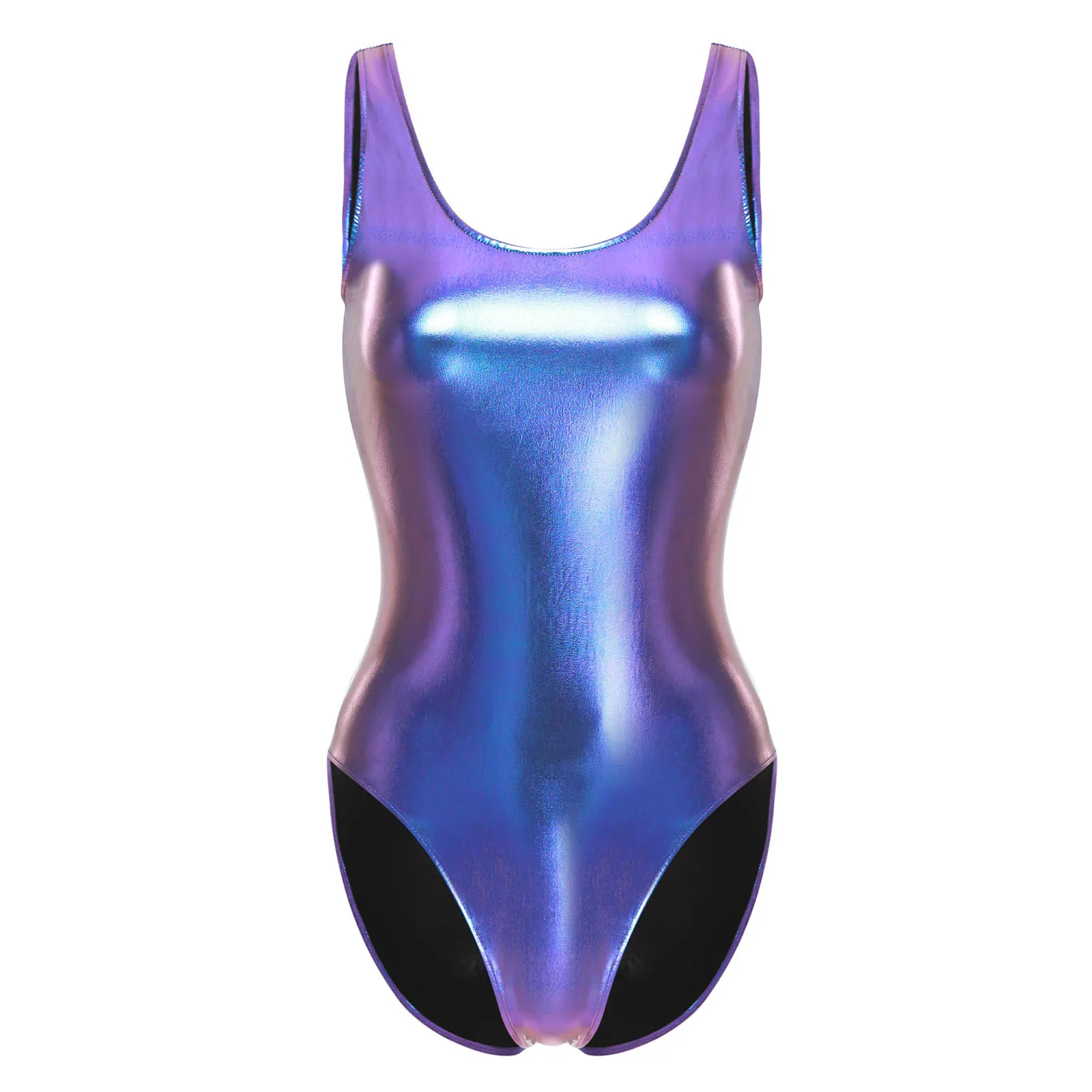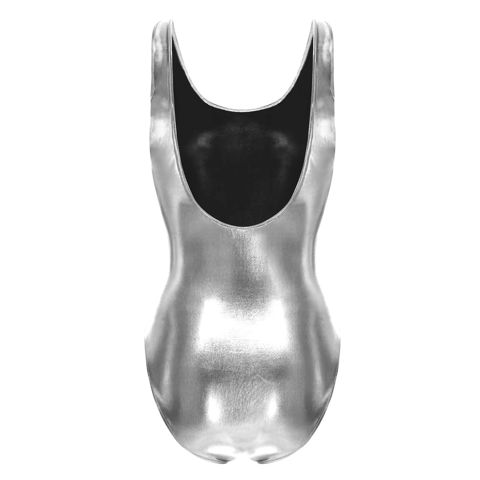 Women Shiny Metallic Sleeveless Bodysuit Skinny Tank Leotards Club Pole Dance Stage Performance Jumpsuit Rave Party Costume