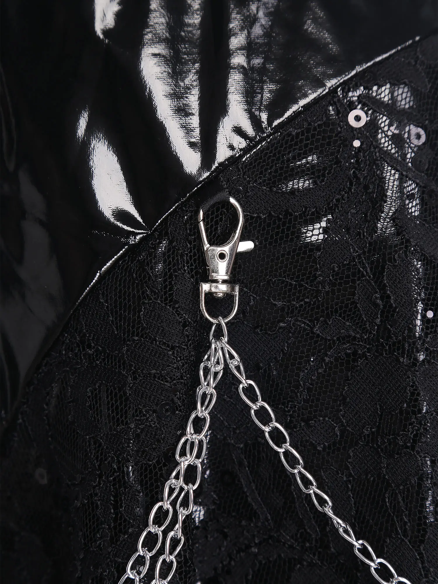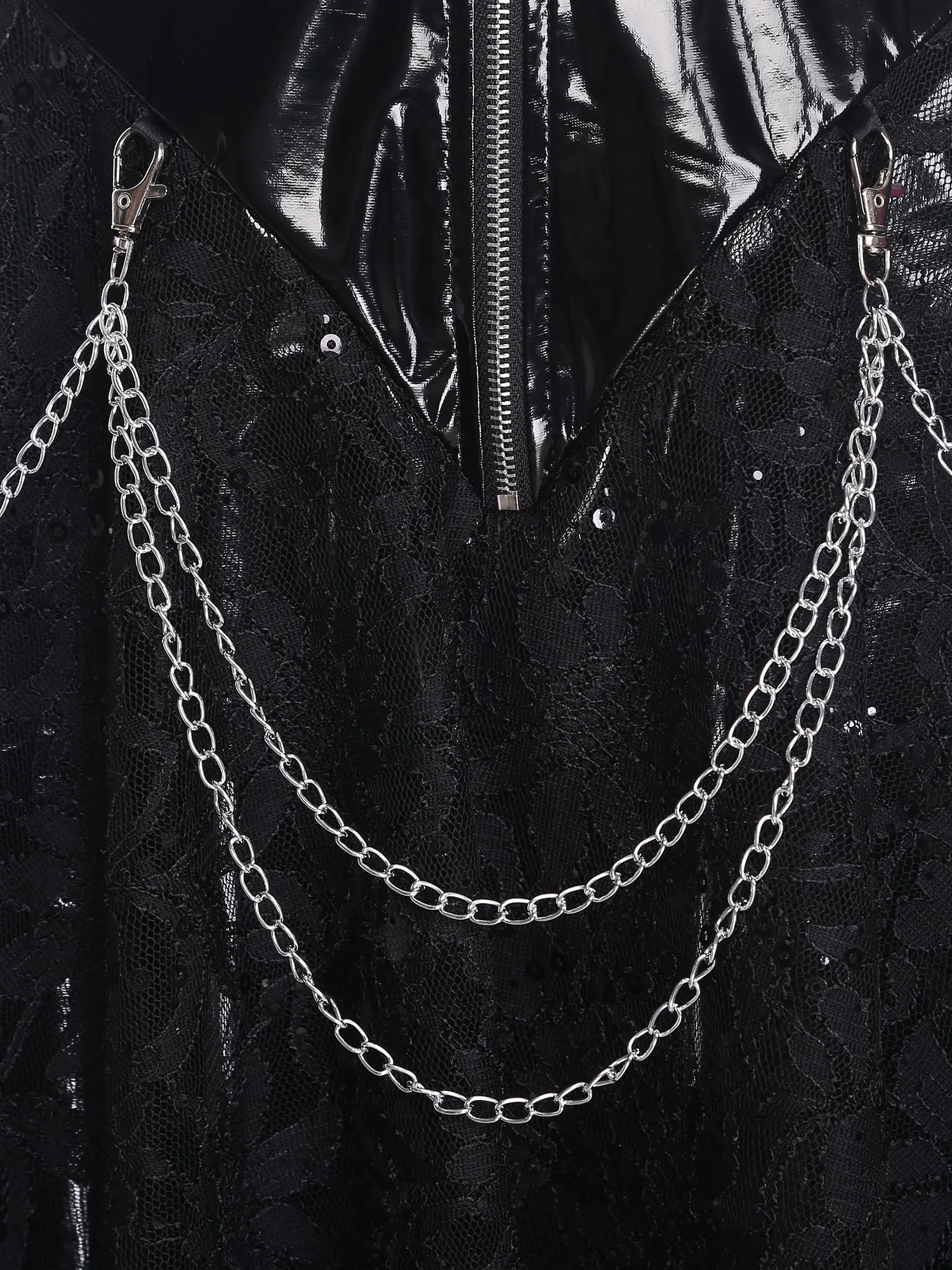 The front zipper design not only facilitates easy wearing and removal but also serves as a stylish detail, suitable for theme parties, Halloween events, fashion shows.