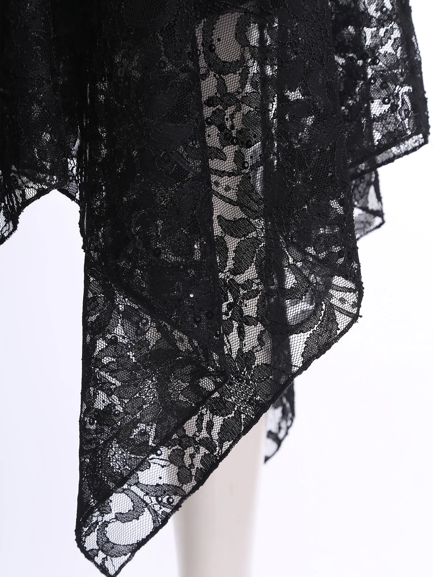 The steampunk and gothic style, combined with gloss patchwork sequins and floral lace ruffles, showcases a unique and edgy aesthetic that aligns with the latest fashion trends.
