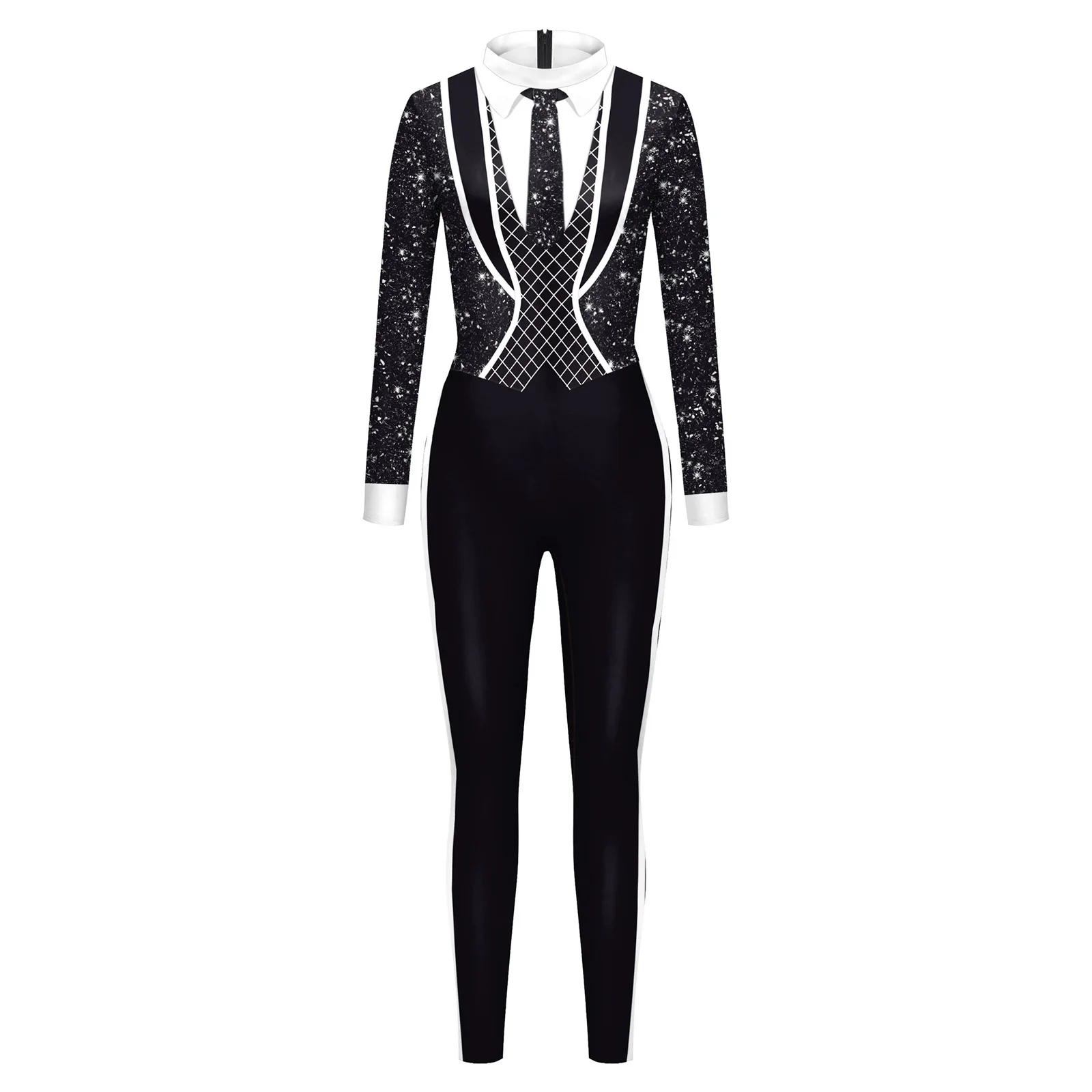 Womens 3D Digital Printing Temperament Jumpsuit Ack Zip Slim Bodysuit Rompers Halloween Cosplay Themed Party Catsuit Costume