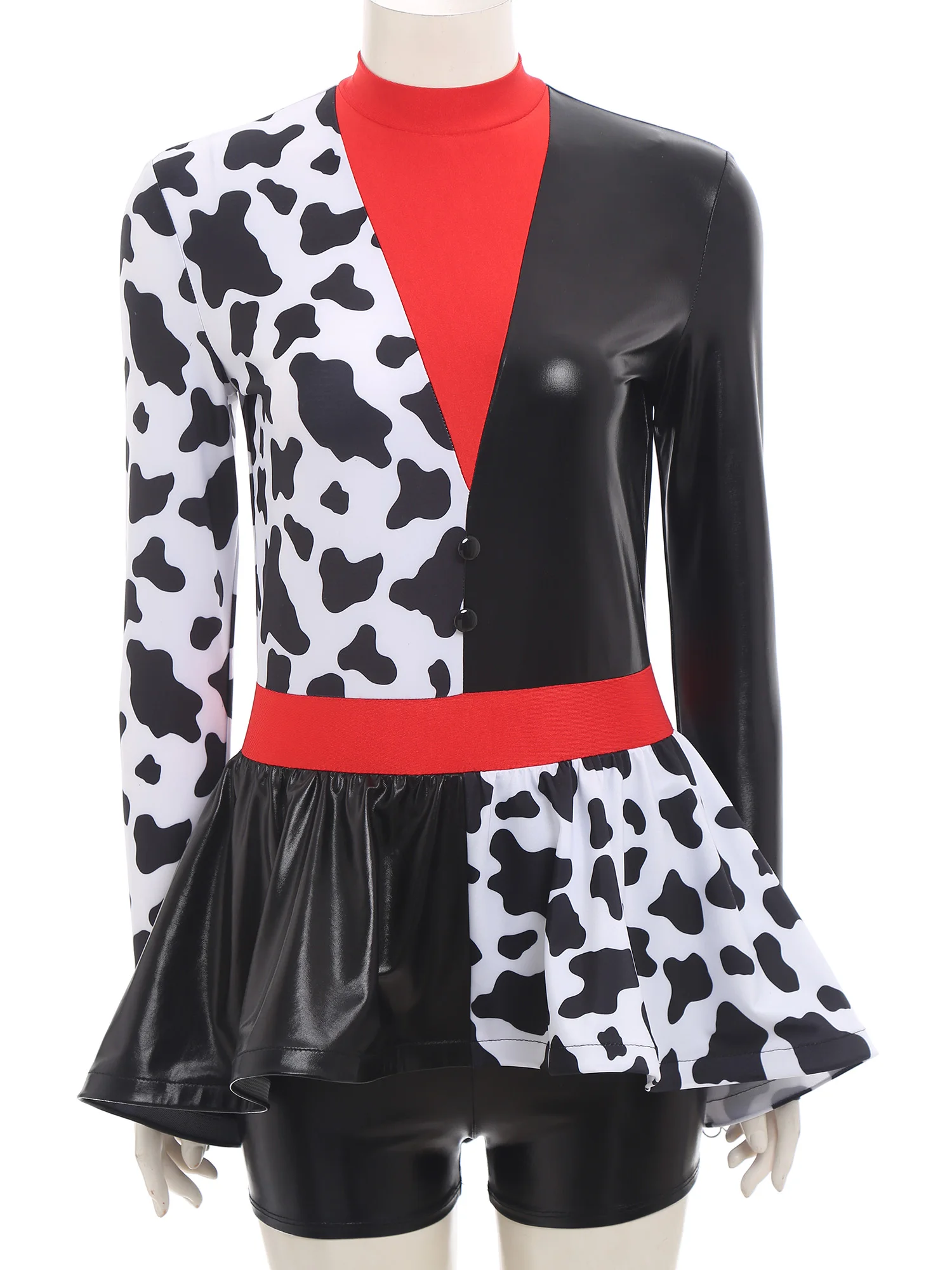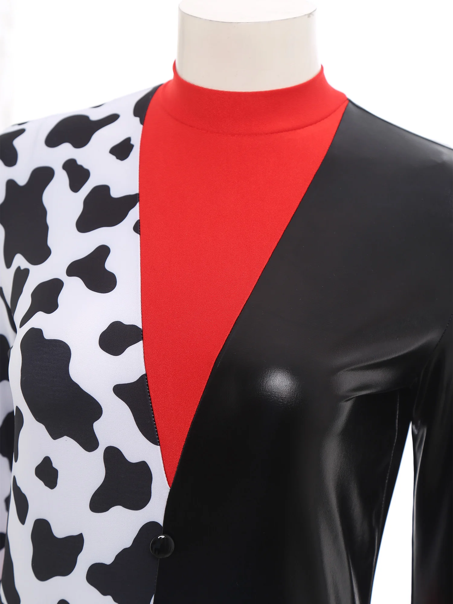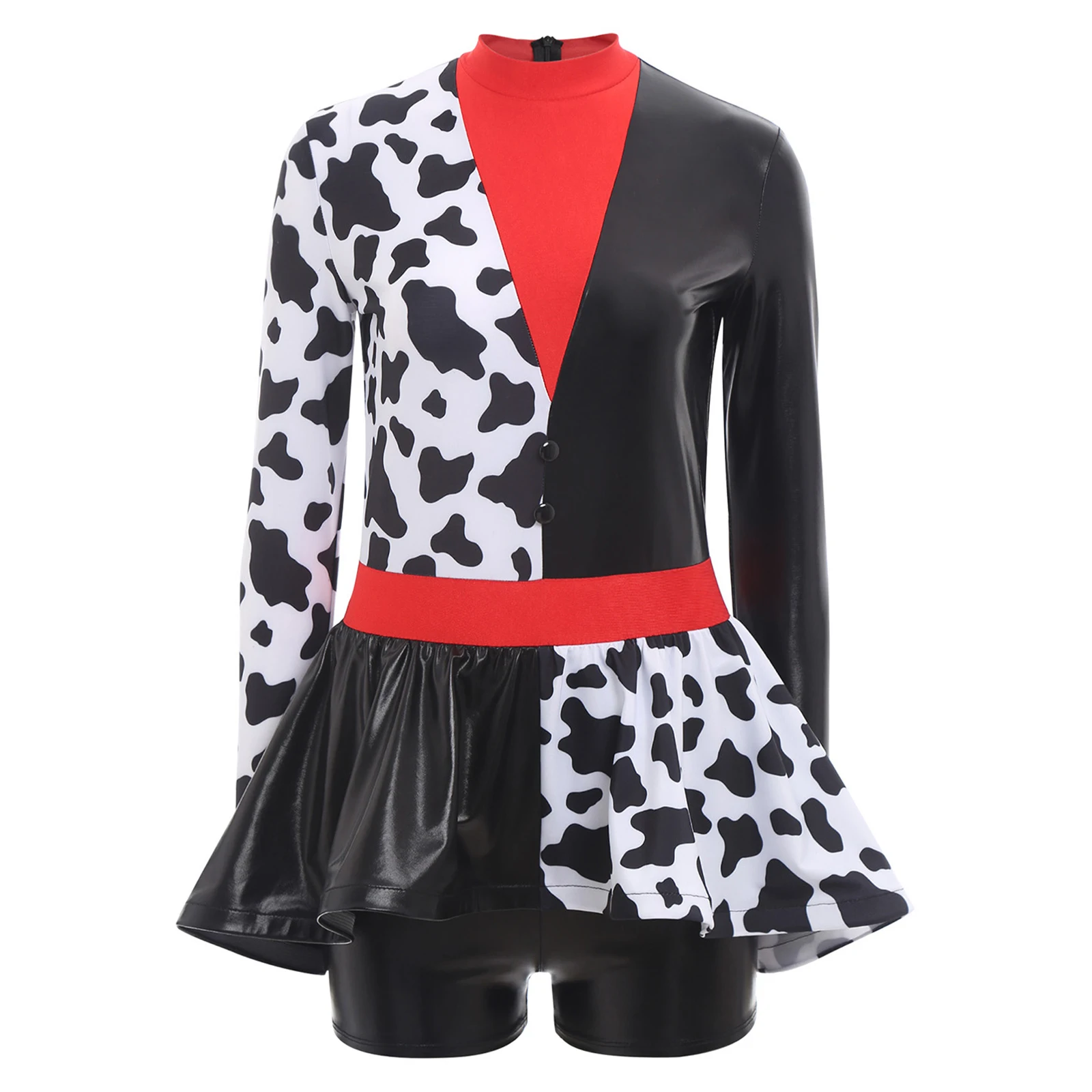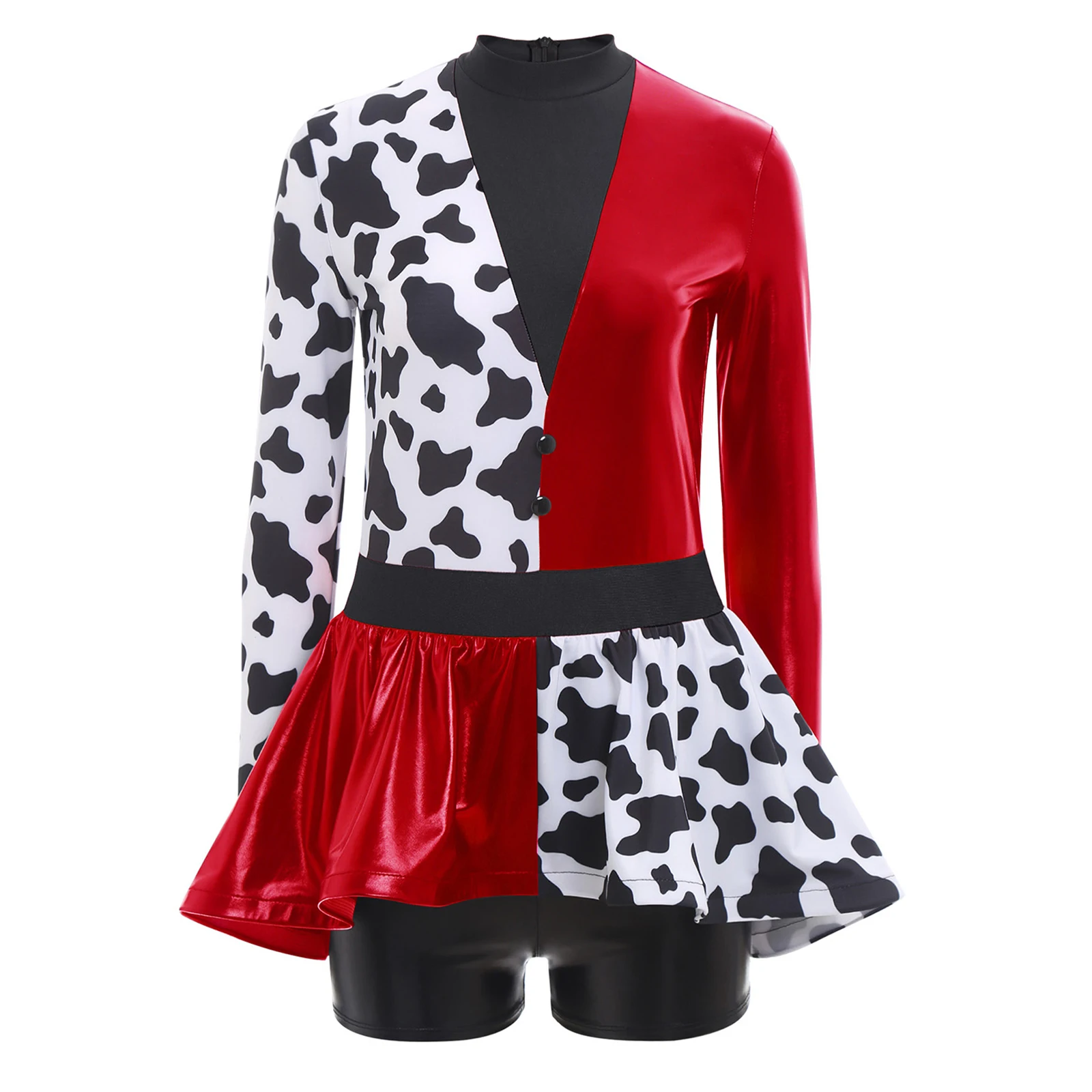 Womens Adult Devil Killer Clown Cosplay Dress Metallic Shiny and Spotty Culottes Flared Hem Dress Halloween Themed Party Costume