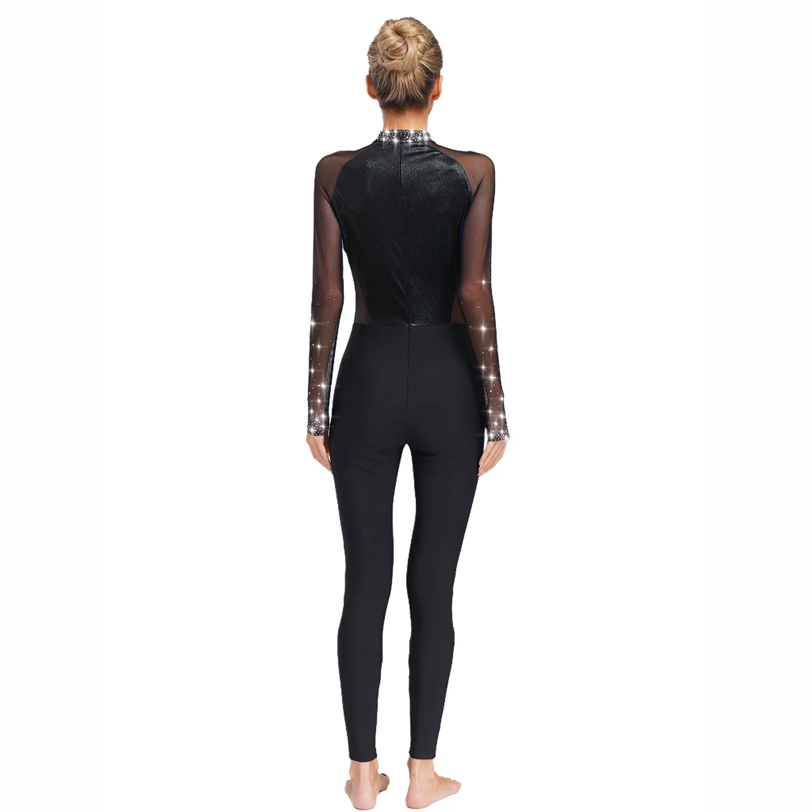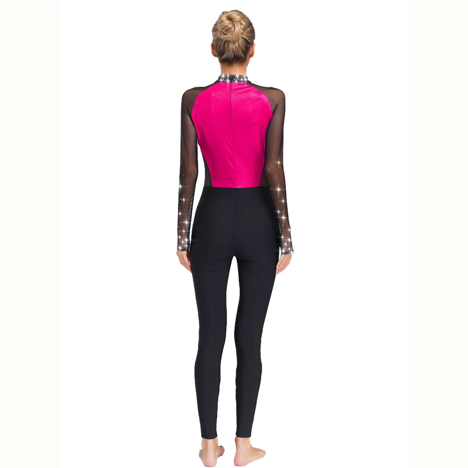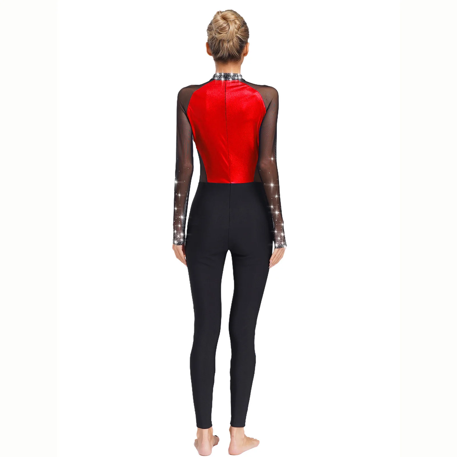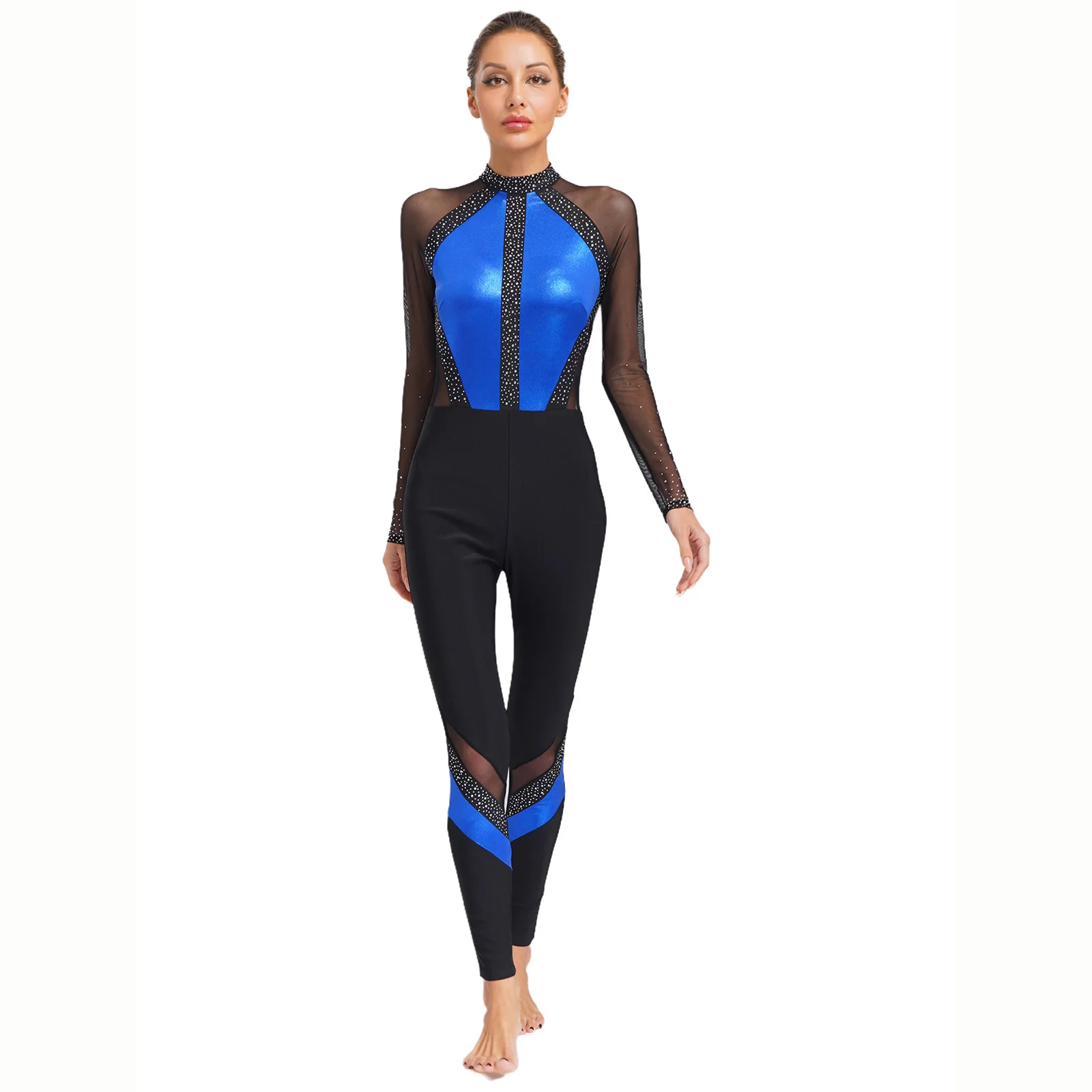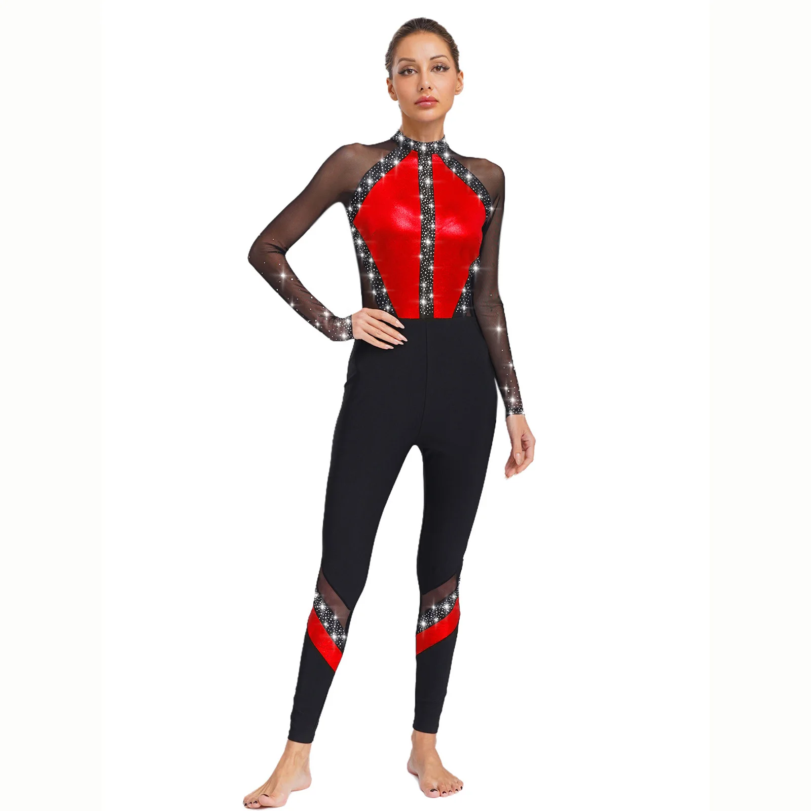 Womens Adult Gymnastics Artistic Figure Skating Ballet Dance Unitards Jumpsuit Sparkling Rhinestones Full Body Leotard Bodysuit