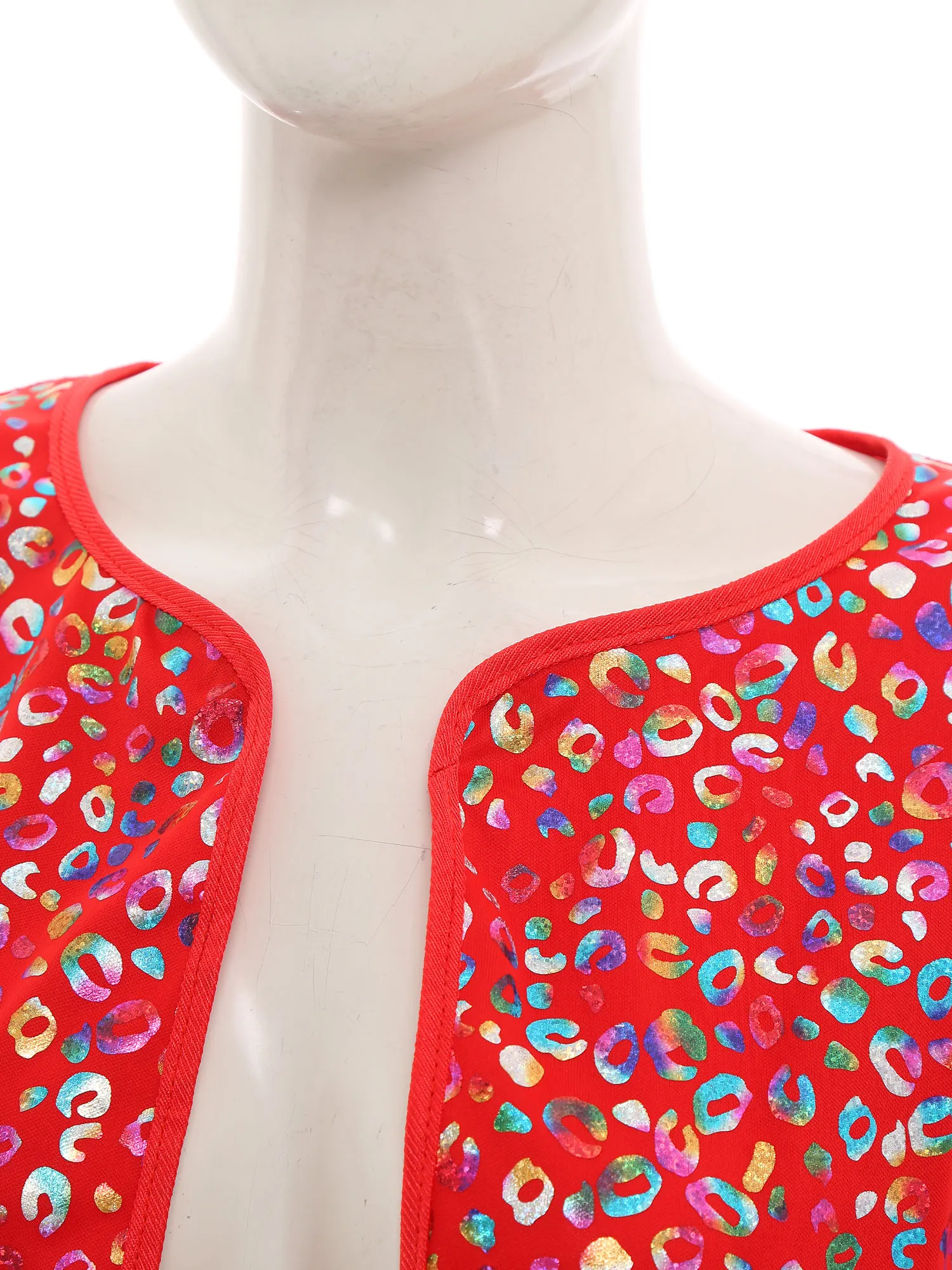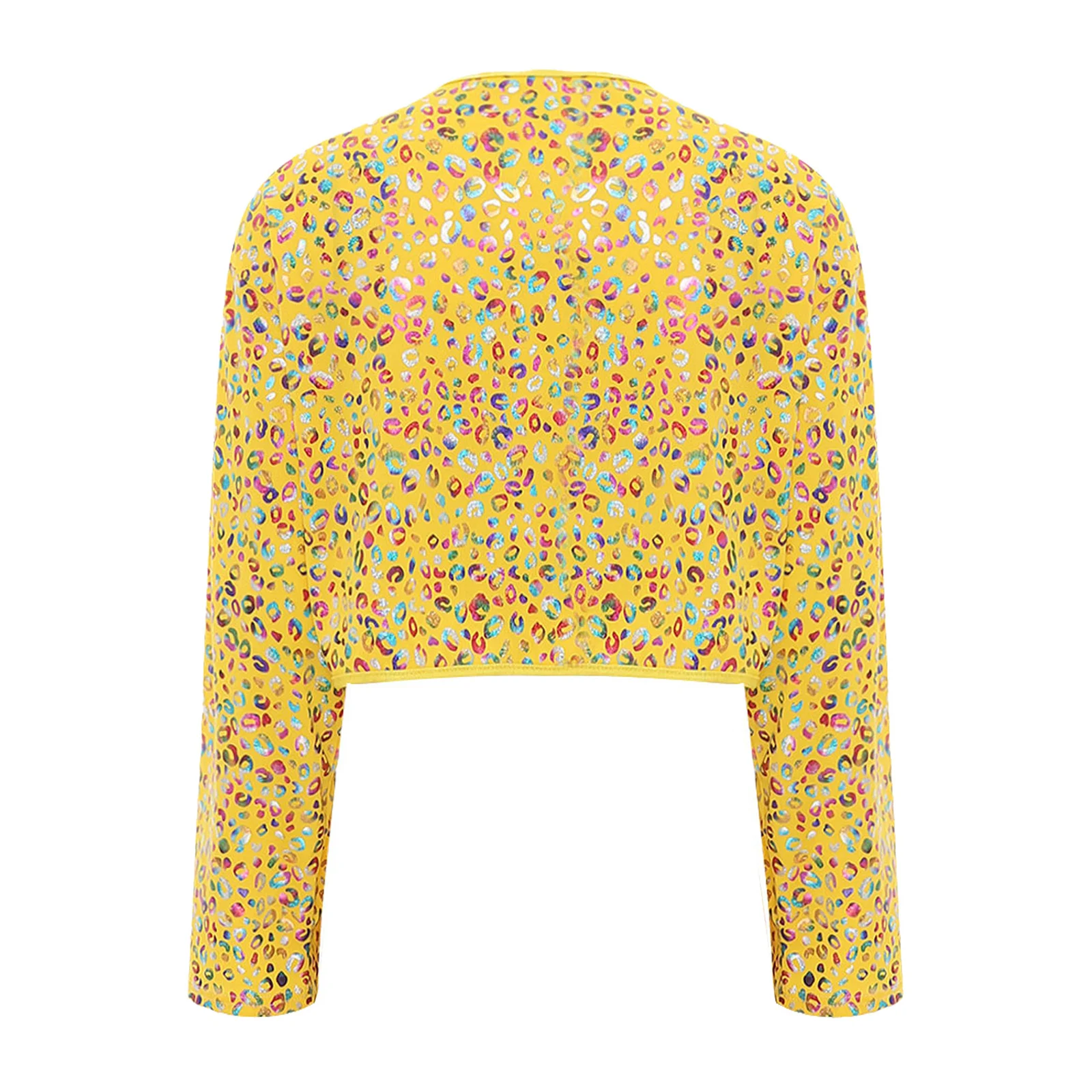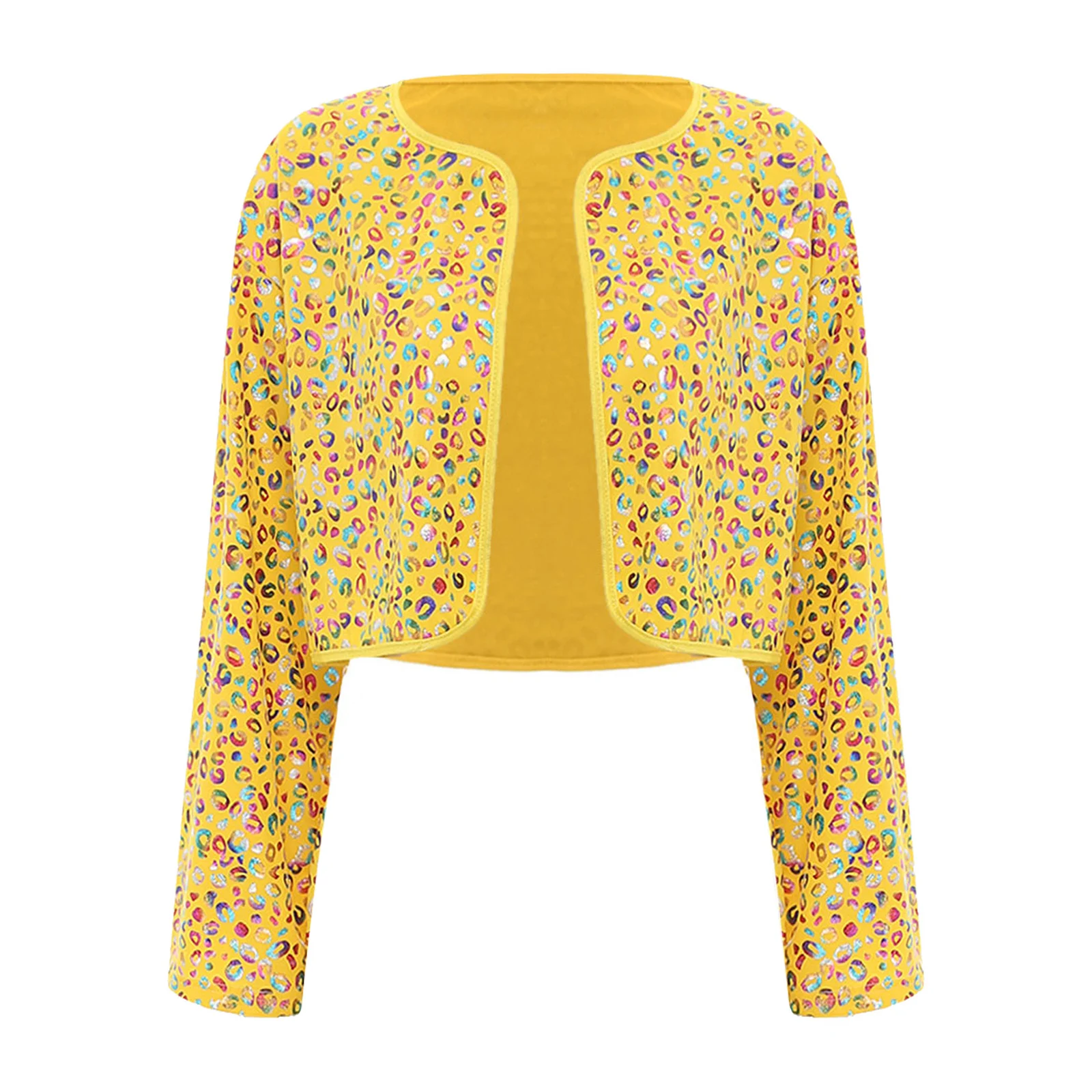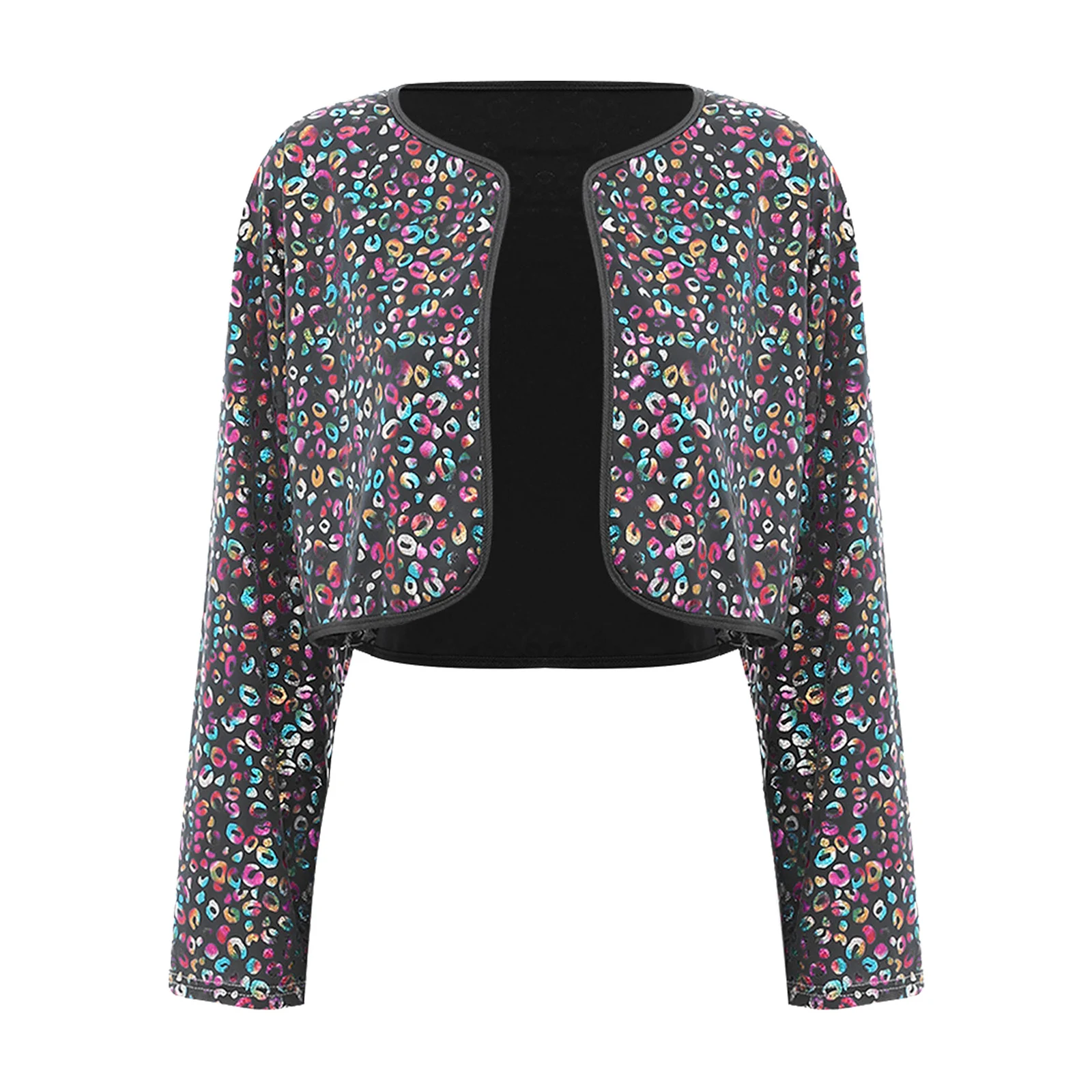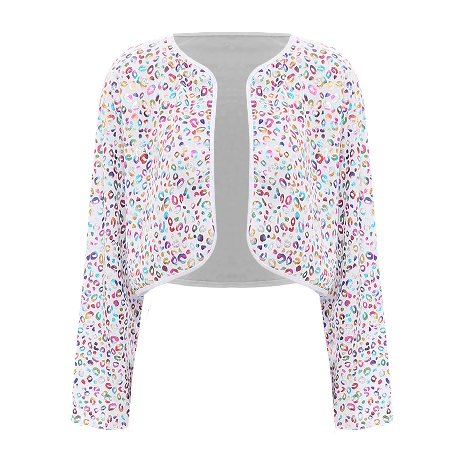 Womens Adult Shiny Leopard Print Short Jacket Coat Y2k Streetwear Punk Disco Tees Long Sleeve Cardigan Jazz Modern Dance Costume
