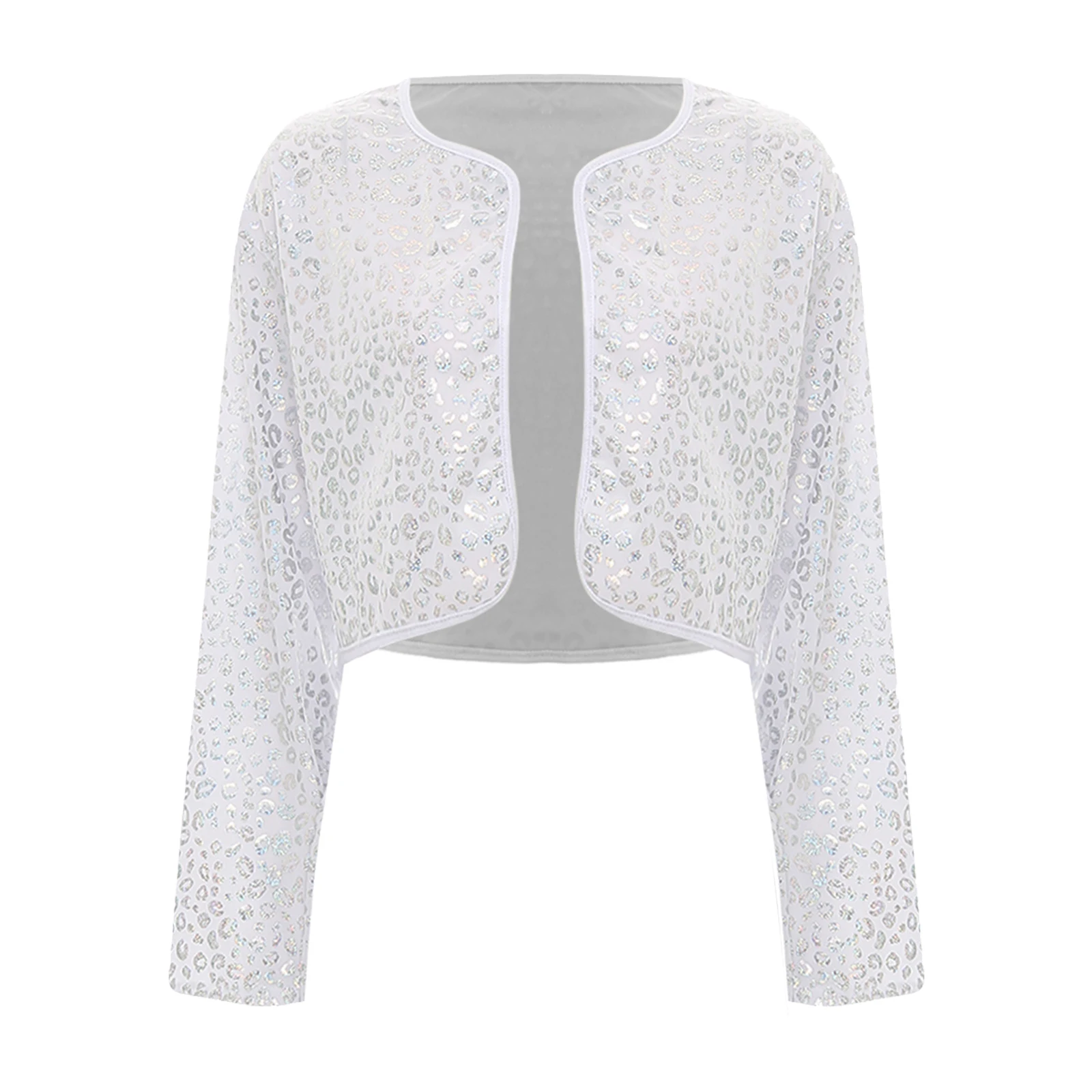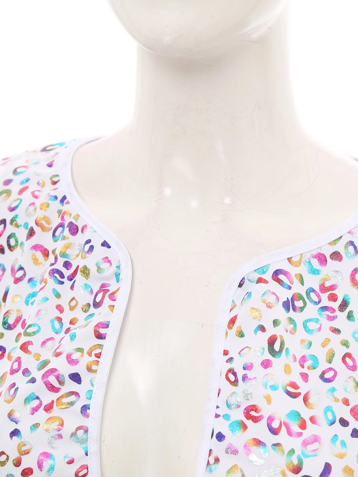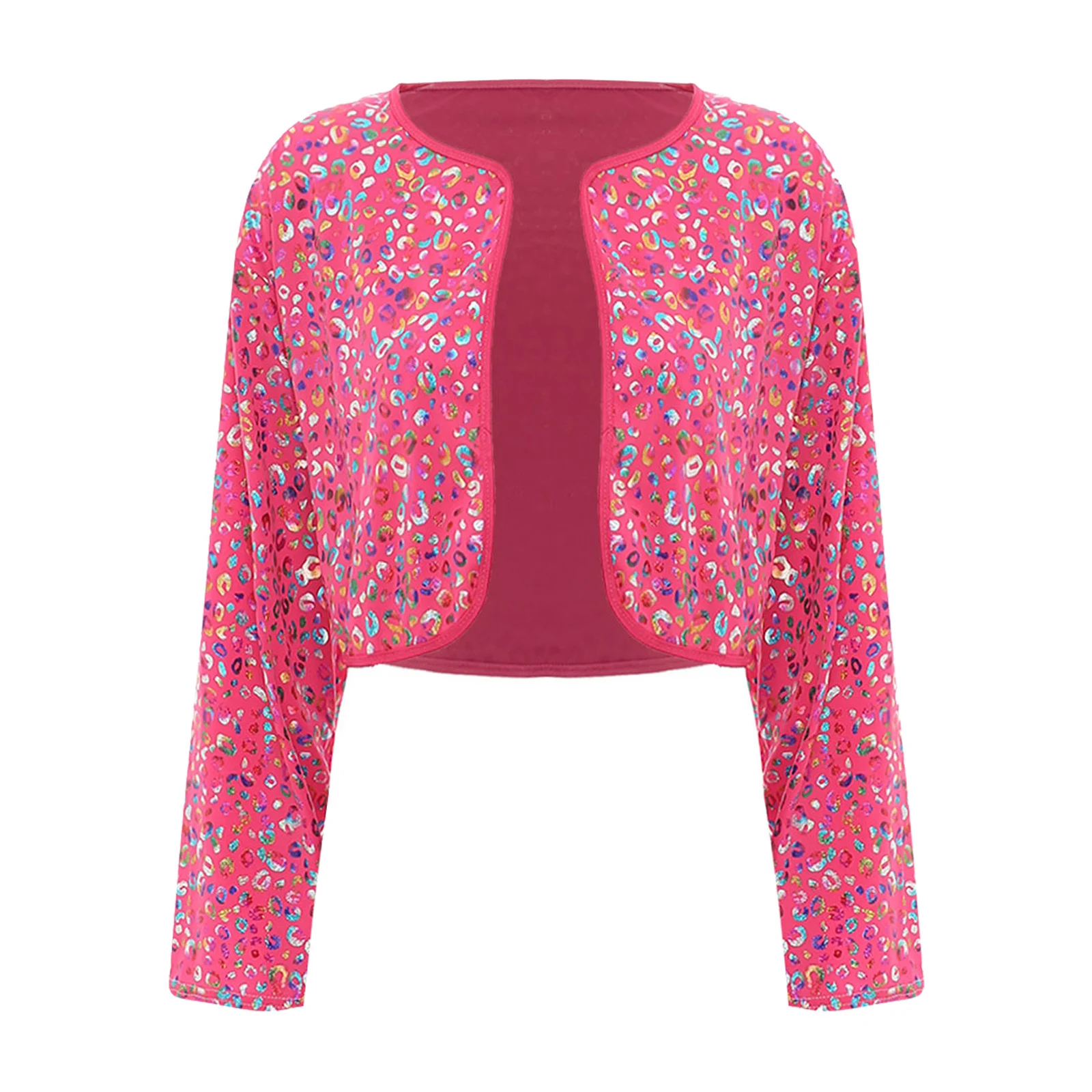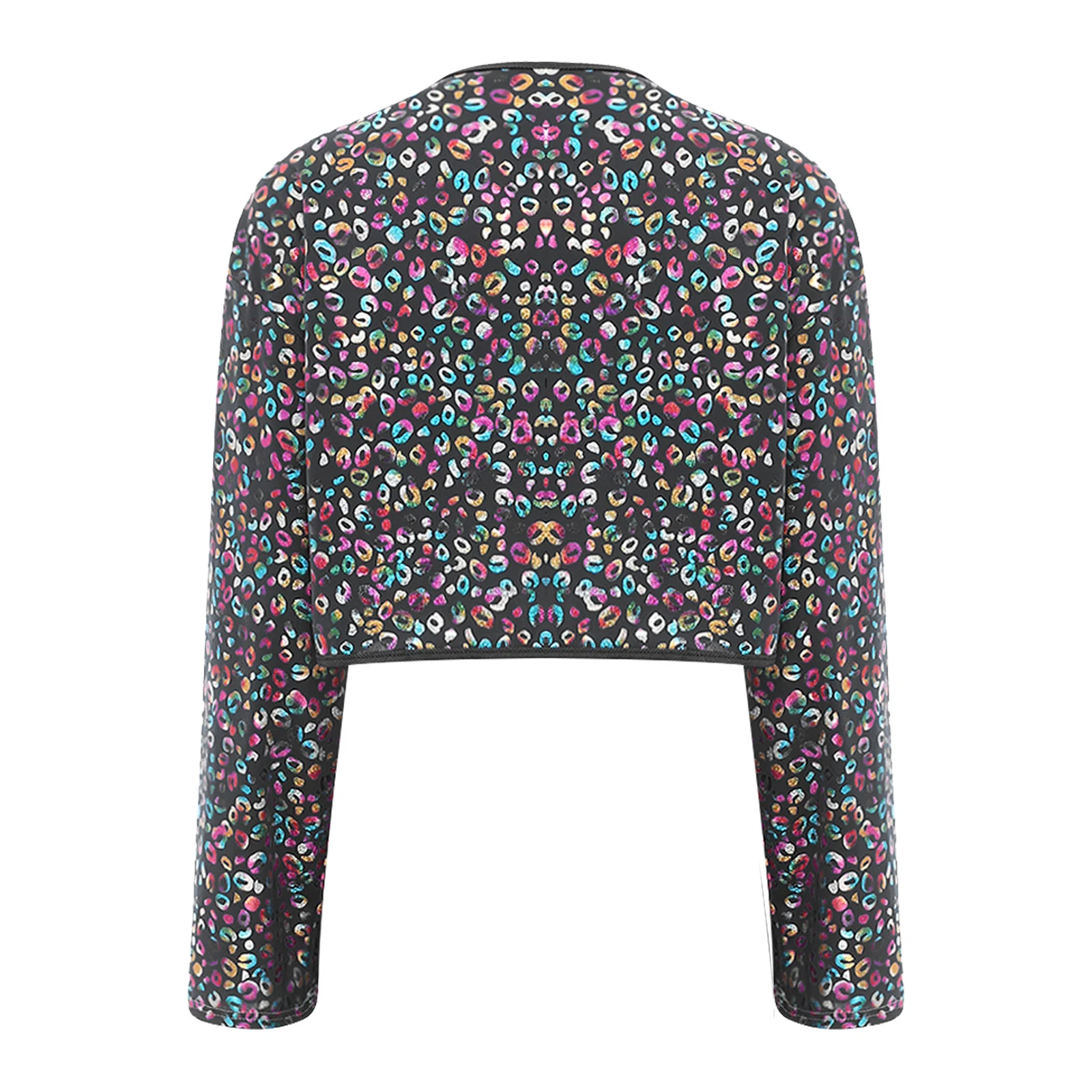 Womens Adult Shiny Leopard Print Short Jacket Coat Y2k Streetwear Punk Disco Tees Long Sleeve Cardigan Jazz Modern Dance Costume