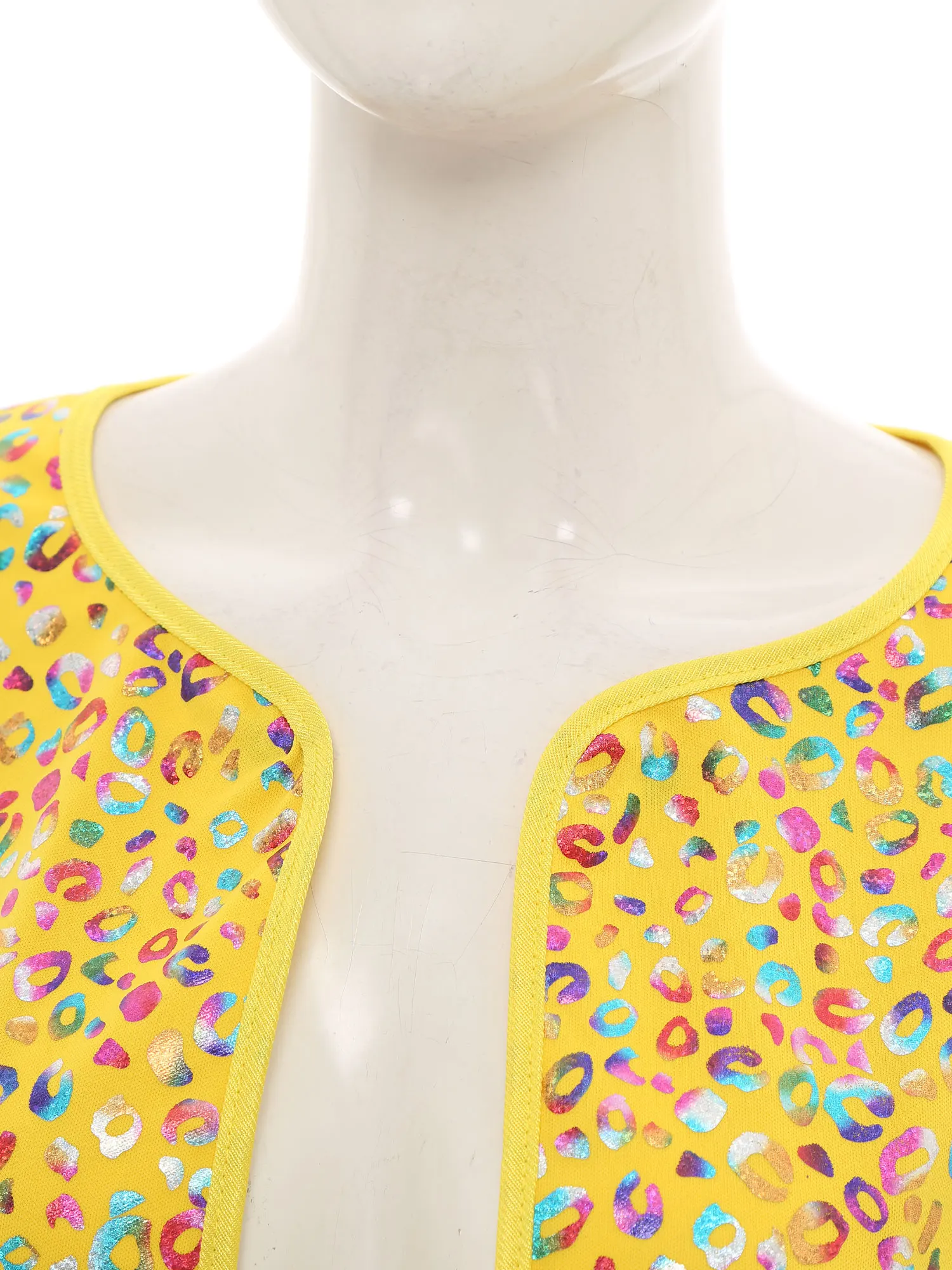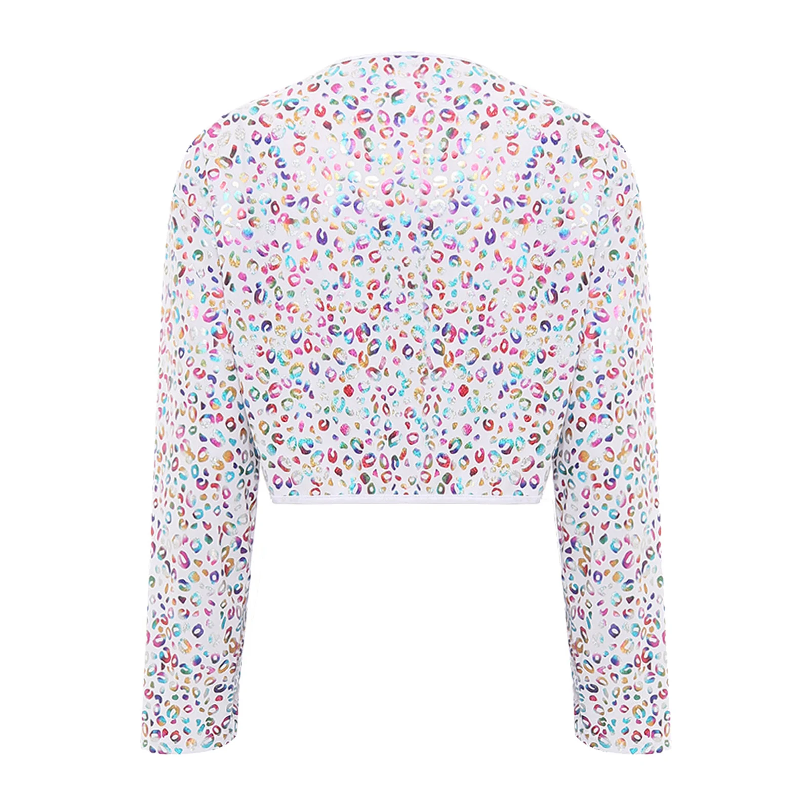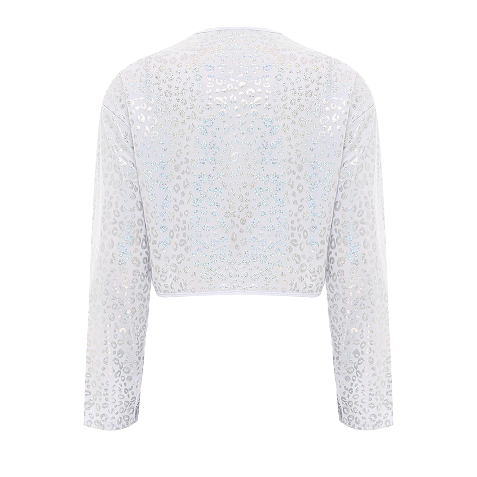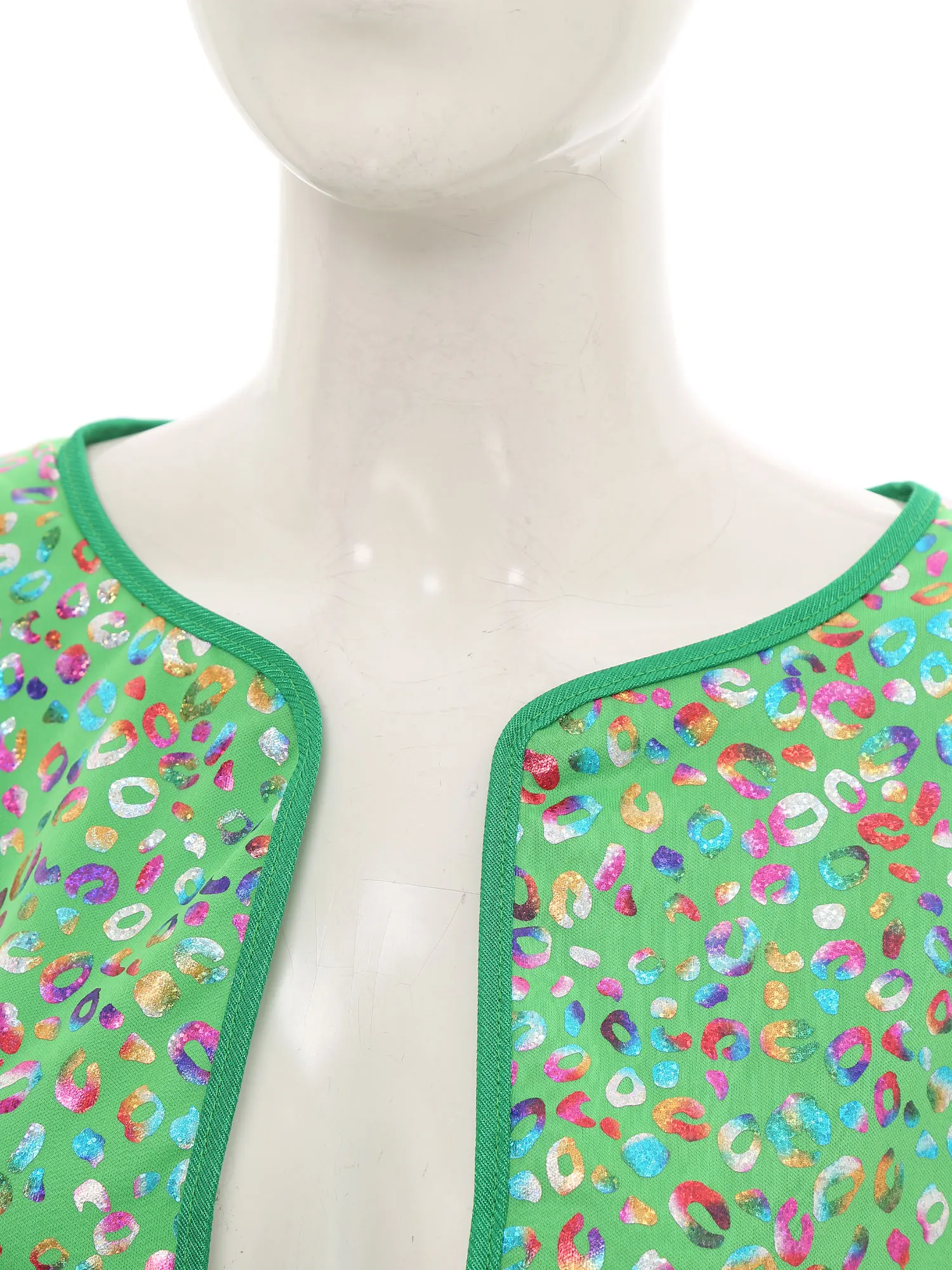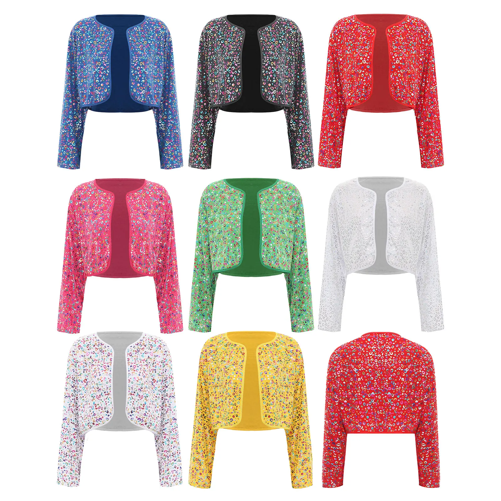 Womens Adult Shiny Leopard Print Short Jacket Coat Y2k Streetwear Punk Disco Tees Long Sleeve Cardigan Jazz Modern Dance Costume