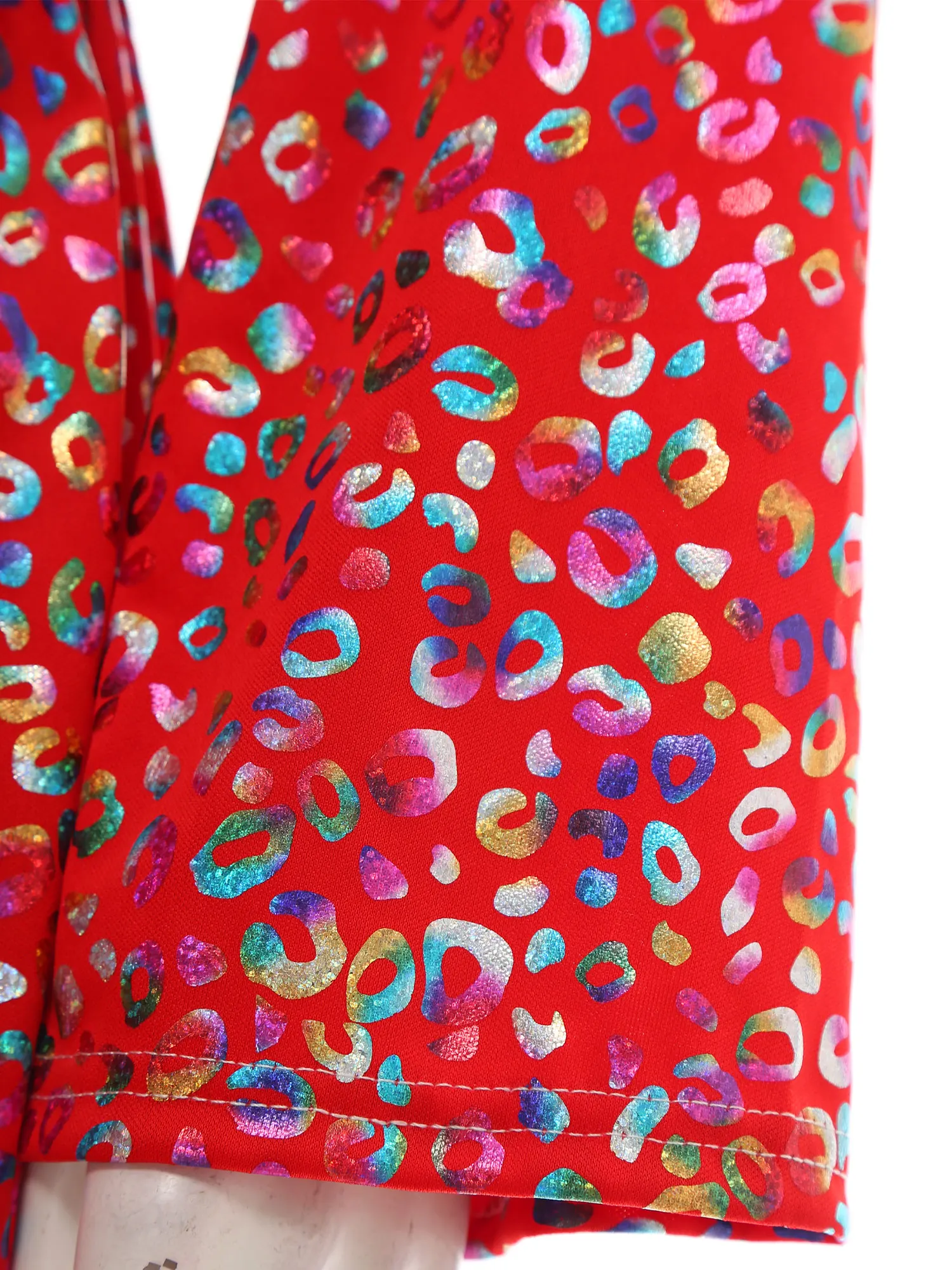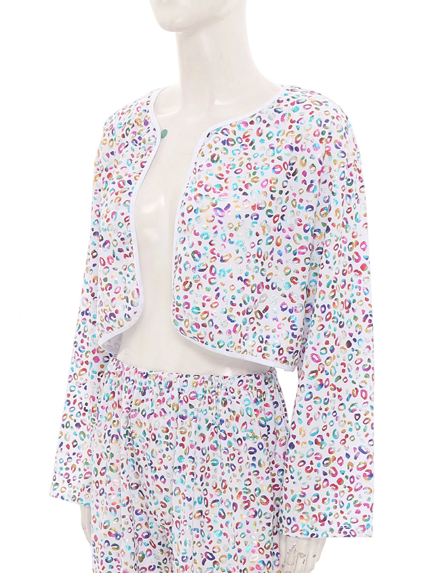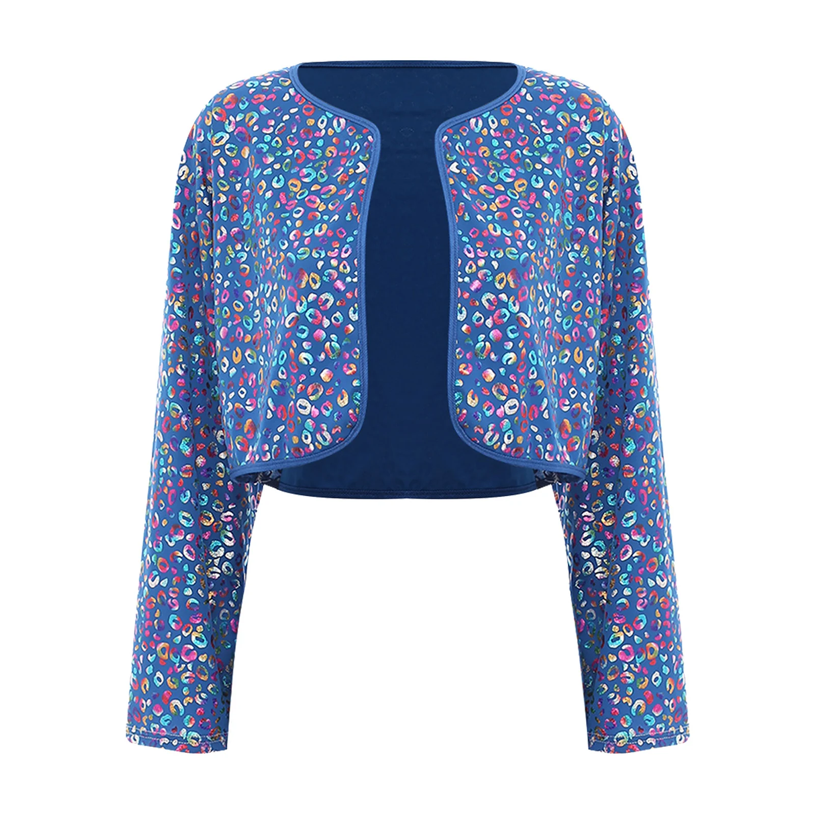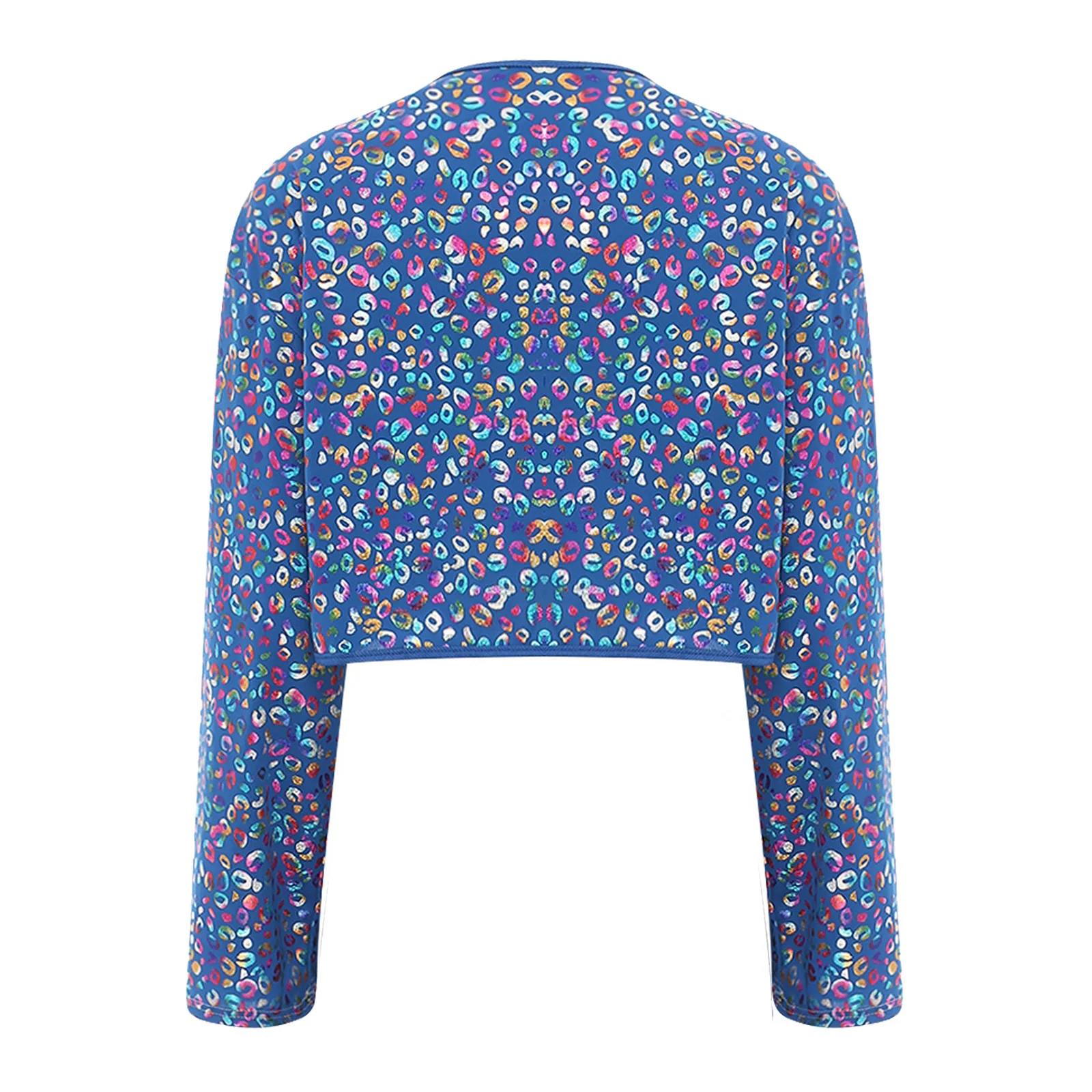 Womens Adult Shiny Leopard Print Short Jacket Coat Y2k Streetwear Punk Disco Tees Long Sleeve Cardigan Jazz Modern Dance Costume