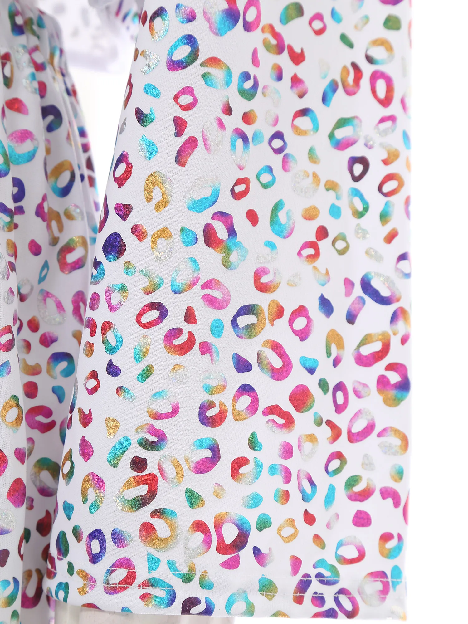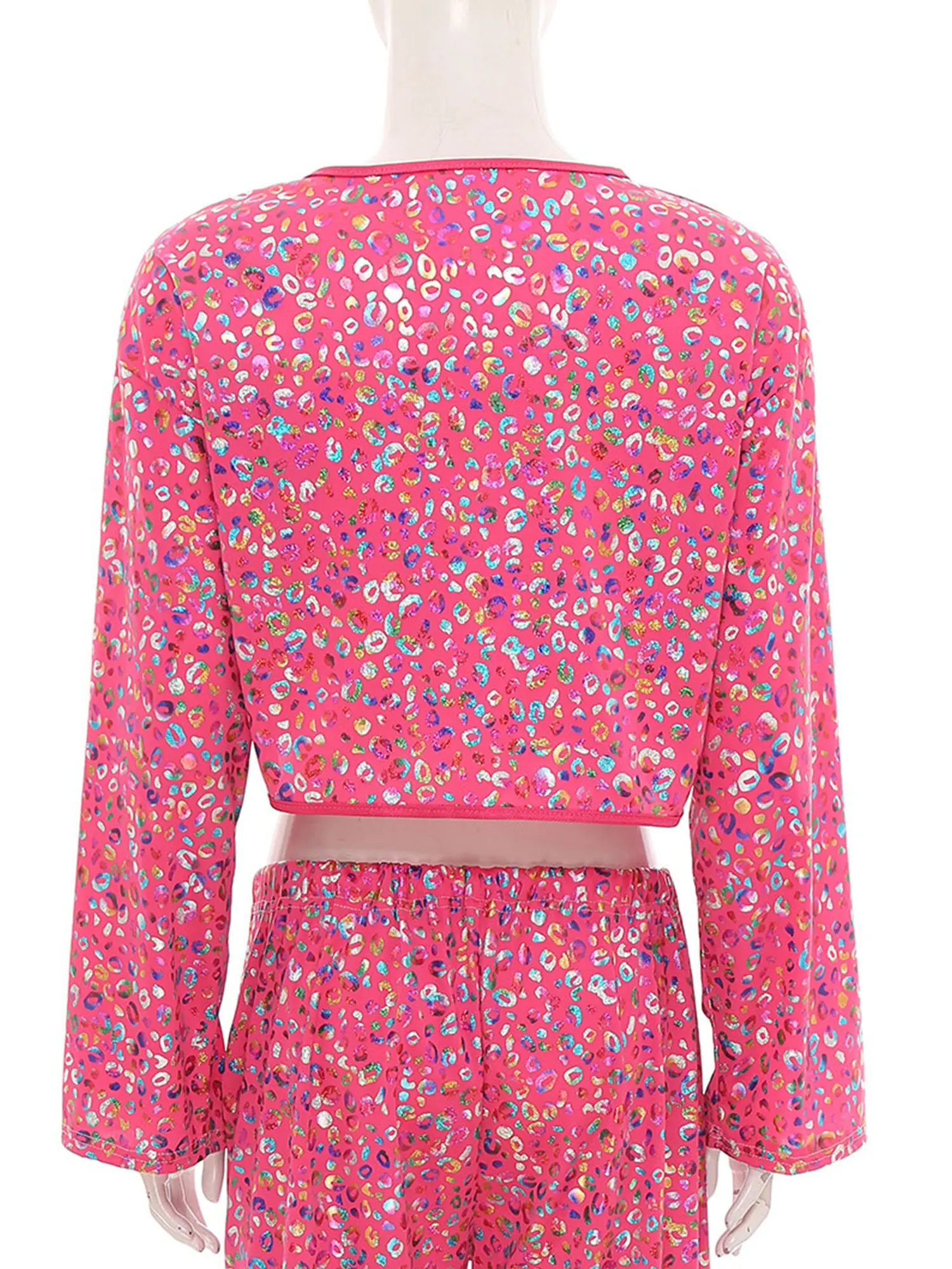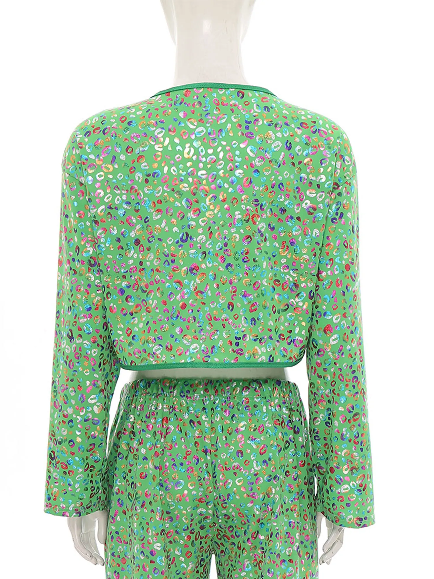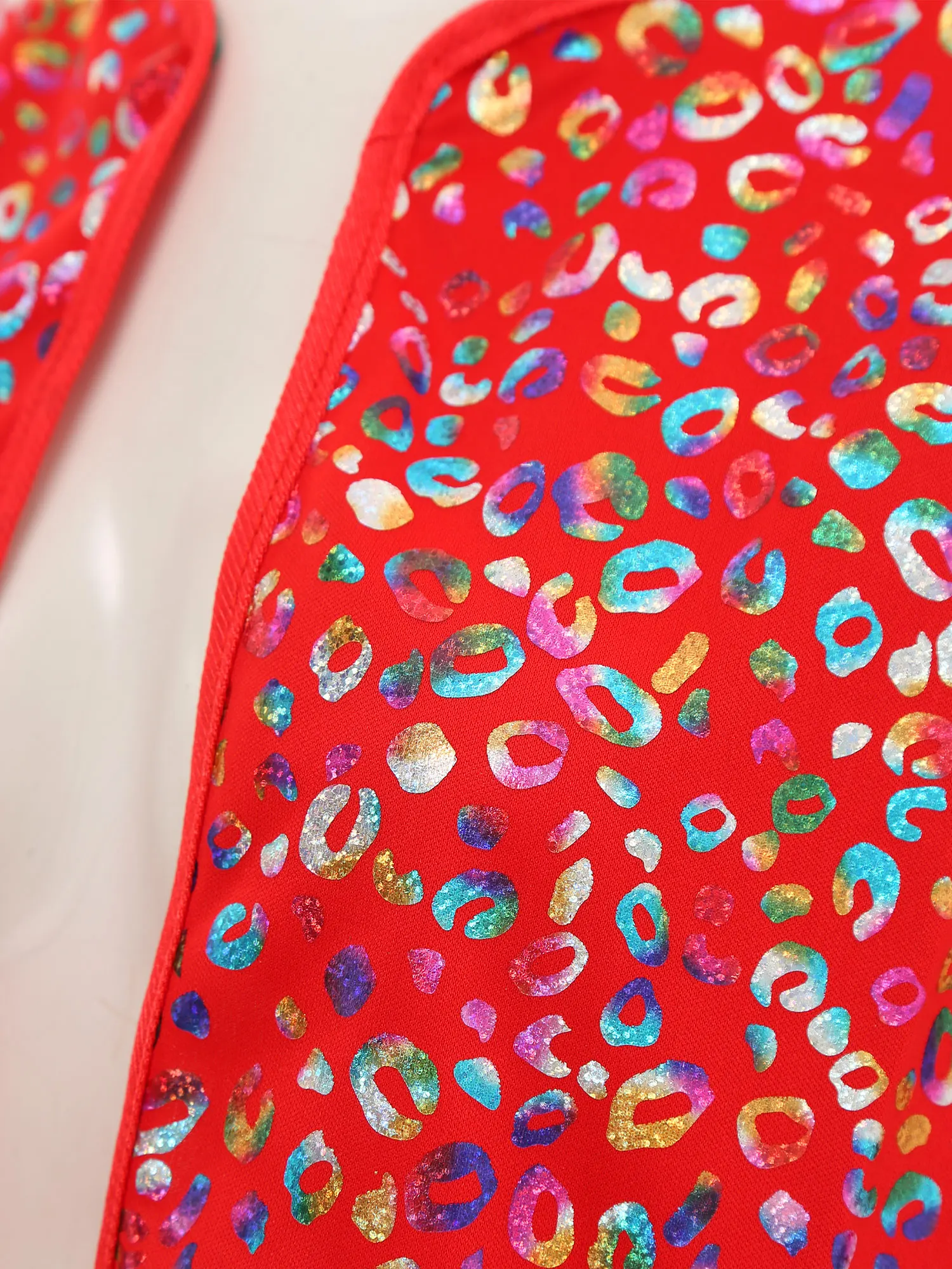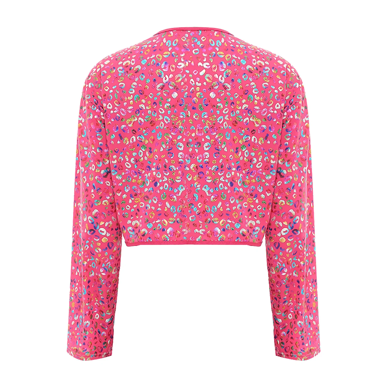 Womens Adult Shiny Leopard Print Short Jacket Coat Y2k Streetwear Punk Disco Tees Long Sleeve Cardigan Jazz Modern Dance Costume