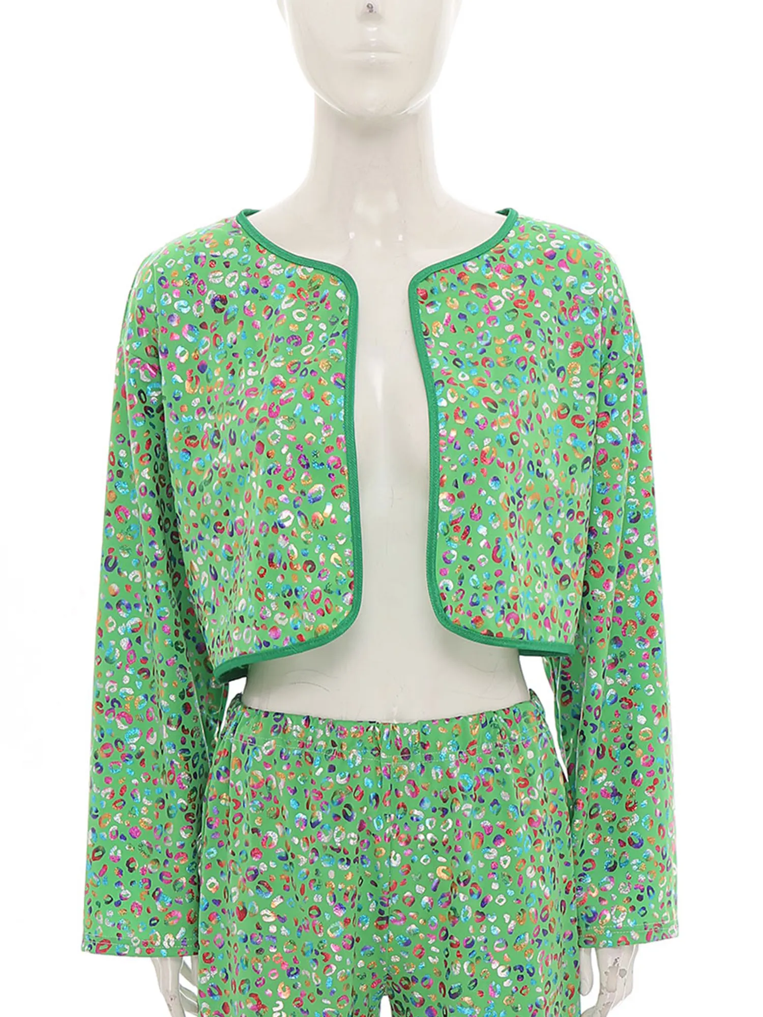 A fashion short coat for women, shiny colorful leopard print makes you more eye-catching.