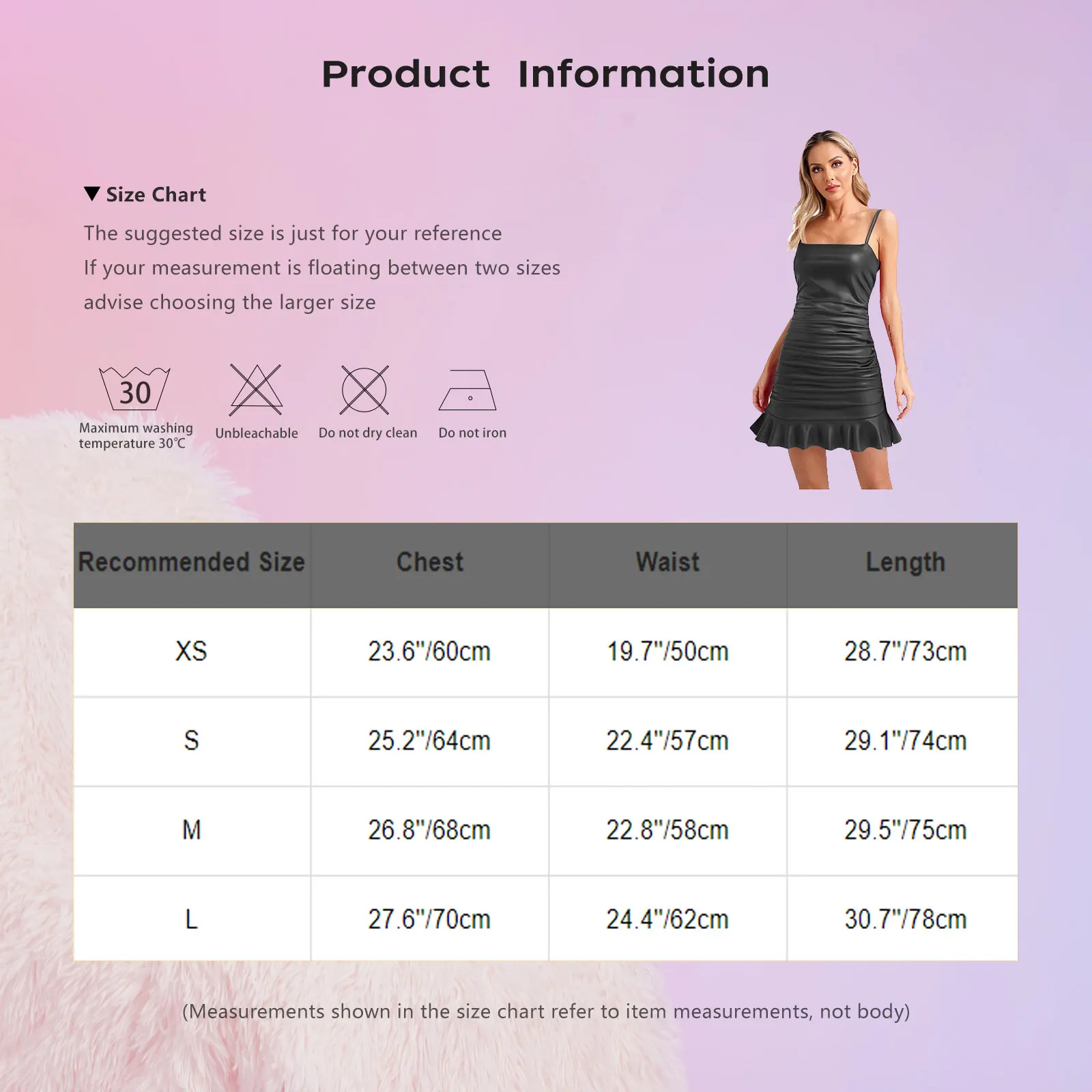 (Measurements shown in the size chart refer to item measurements, not body)