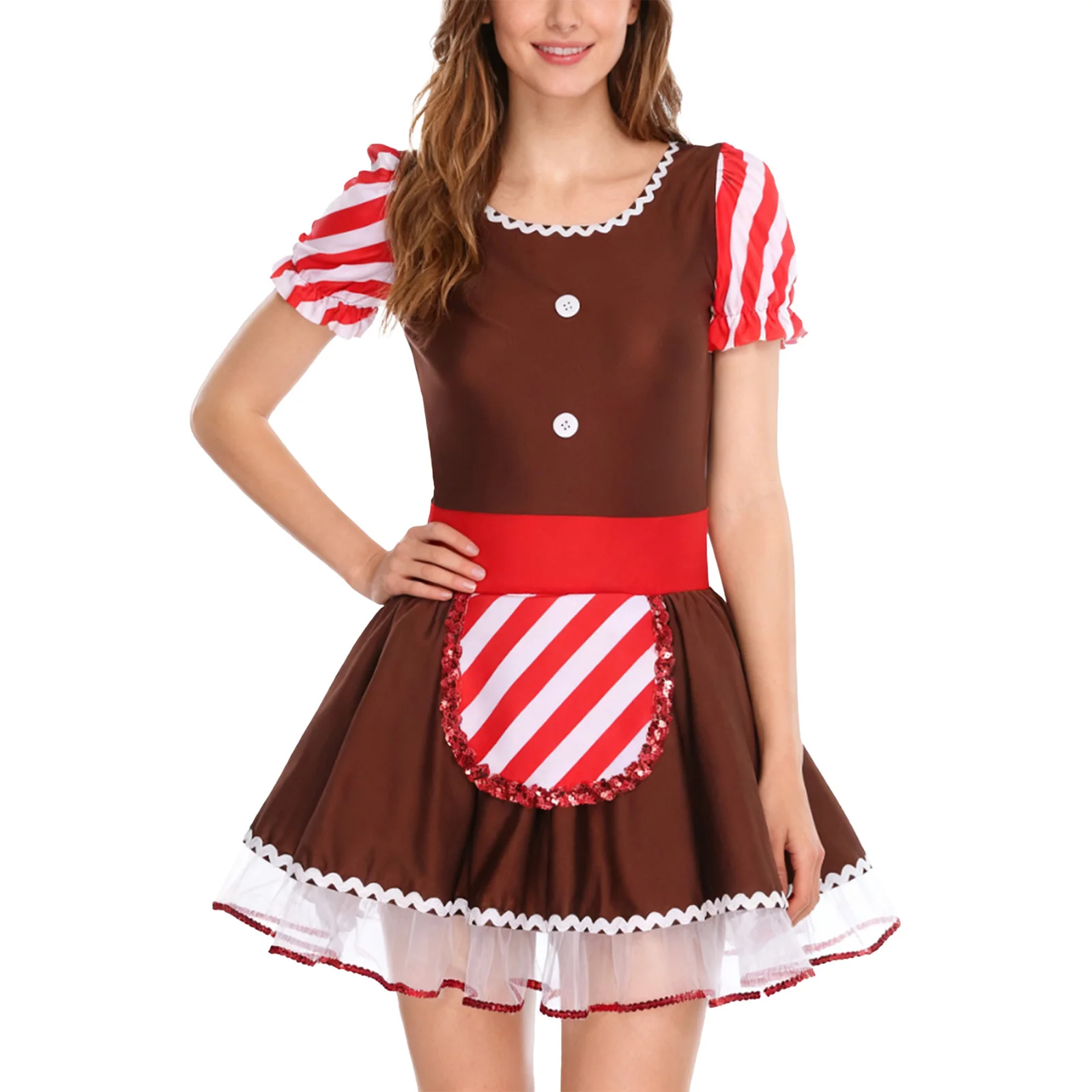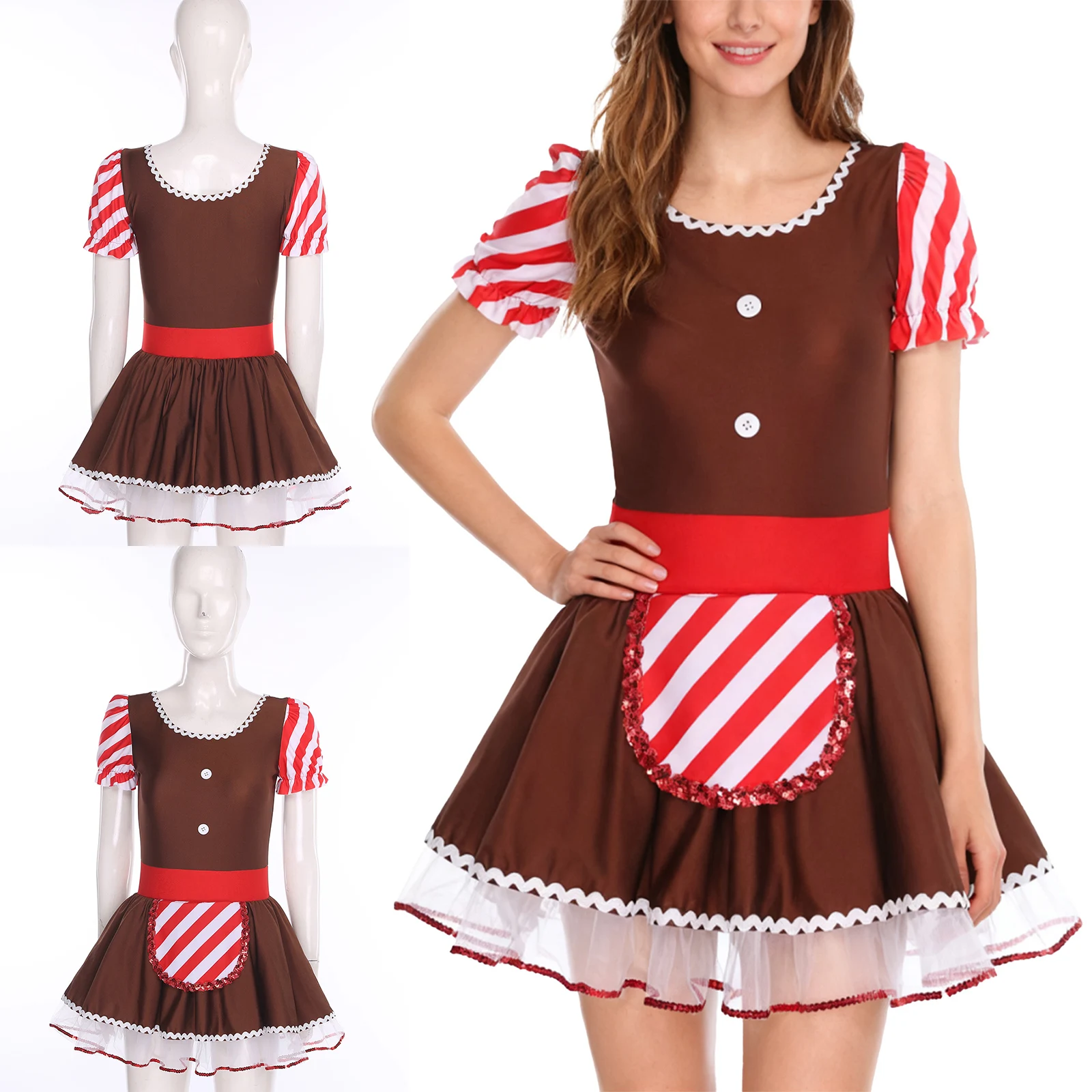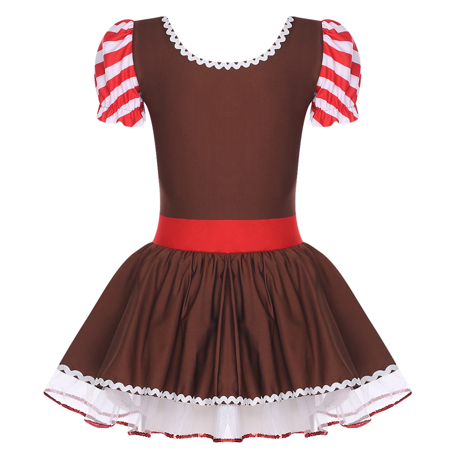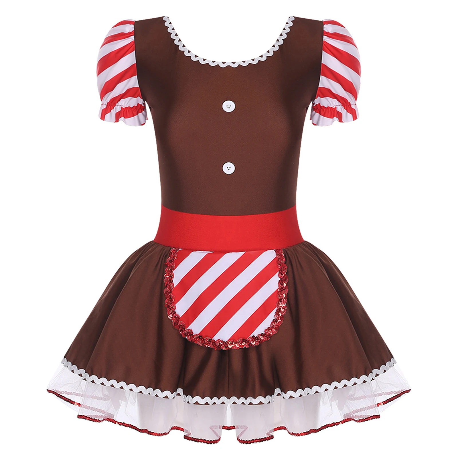 Womens Gingerbread Man Christmas Xmas Candy Cane Princess Cosplay Costume Gymnastics Ballet Leotard Tutu Cookie Masquerade Dress