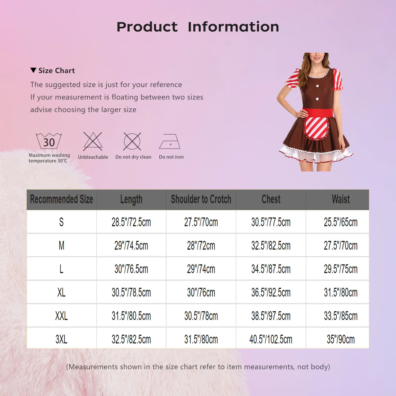 Size Chart: The suggested size is just for your reference. If your measurement is floating between two sizes, advise choosing the larger size. (Measurements shown in the size chart refer to item measurements, not body)