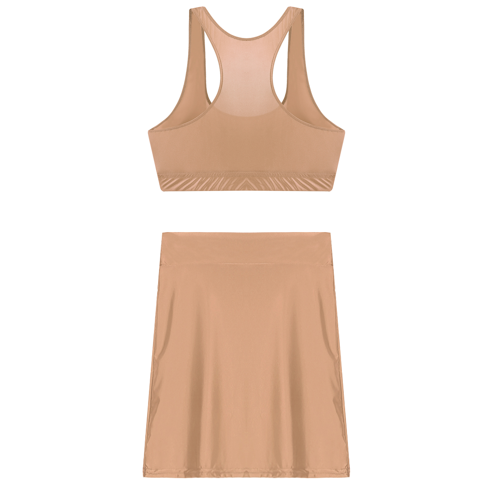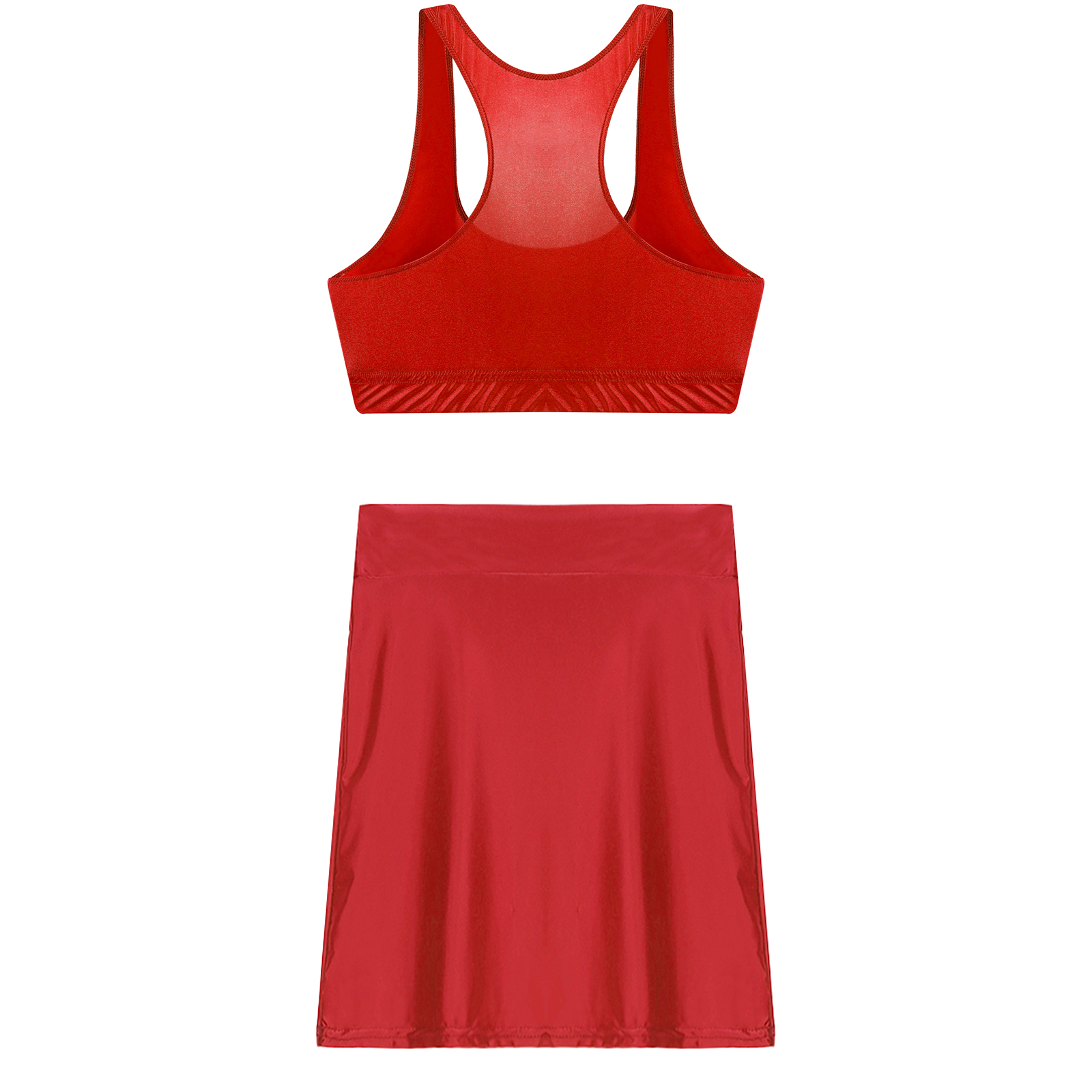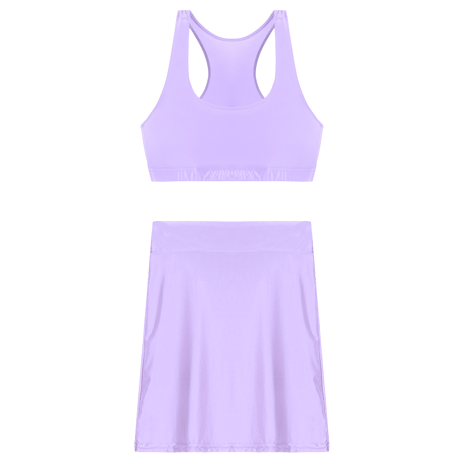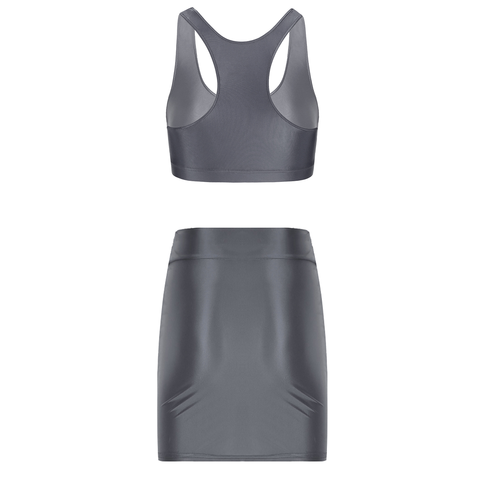 Womens Glossy U Neck Tank Tops Solid Color Sleeveless Crop Top Vest High Waist Elastic Waistband Pencil Skirt Rave Party Outfit