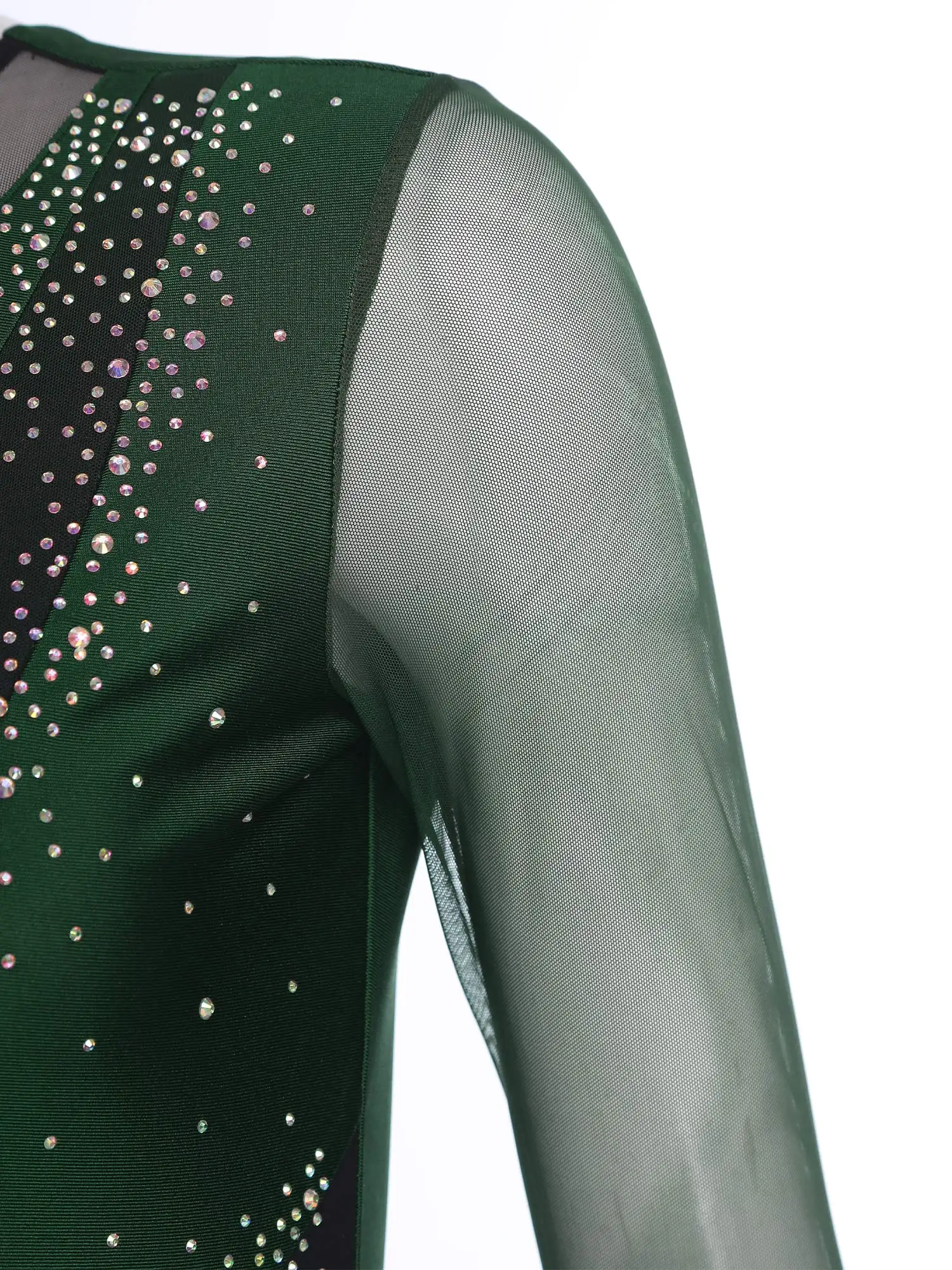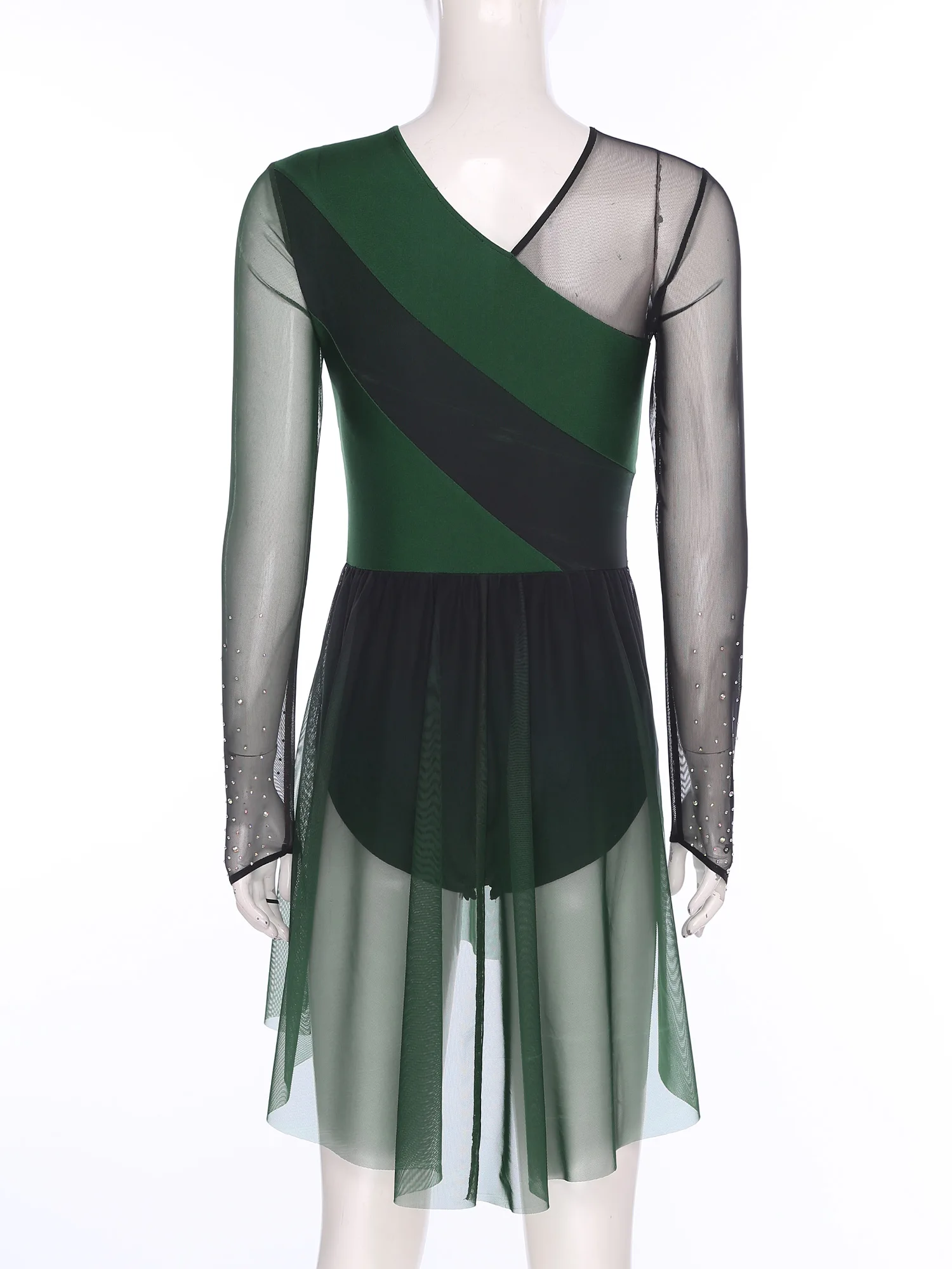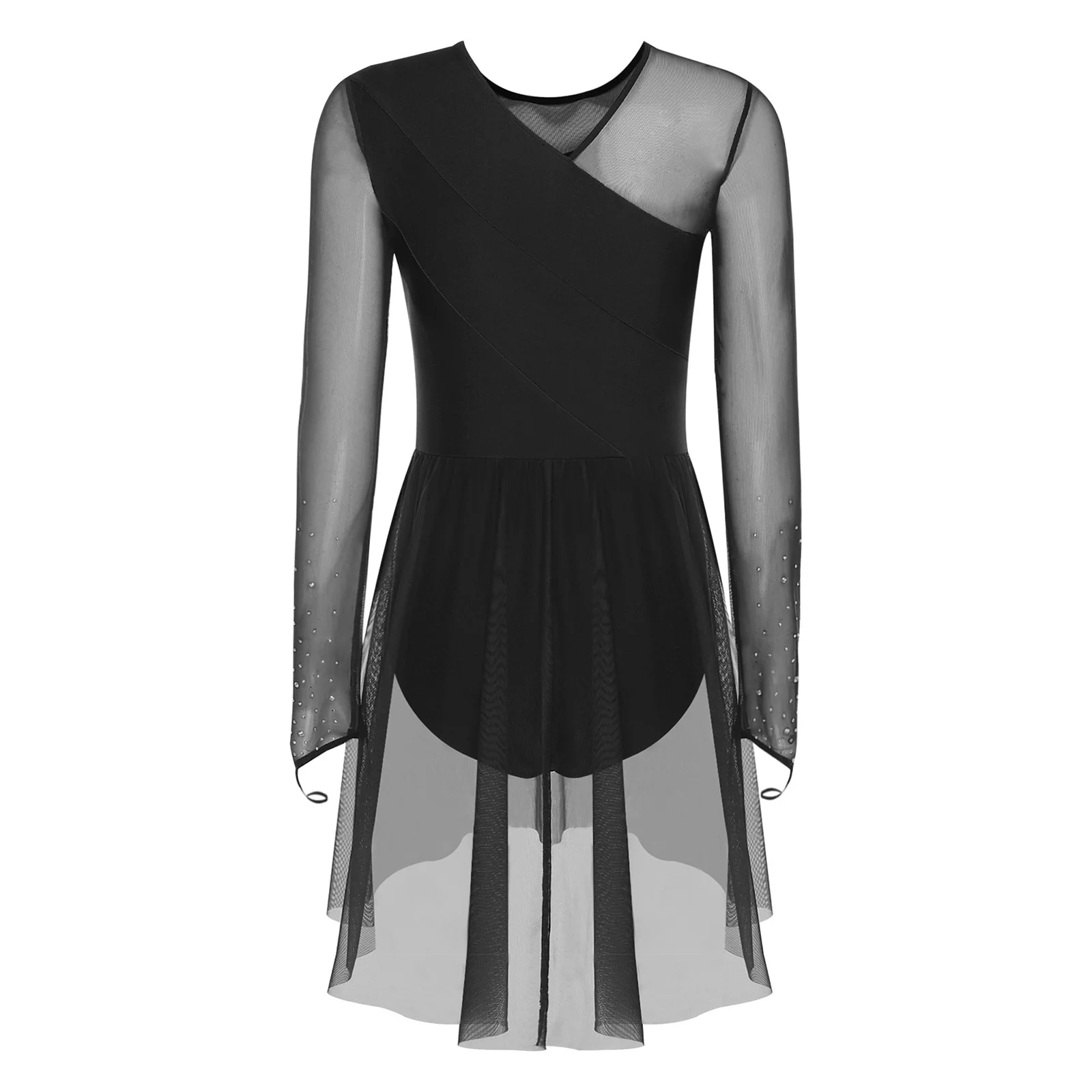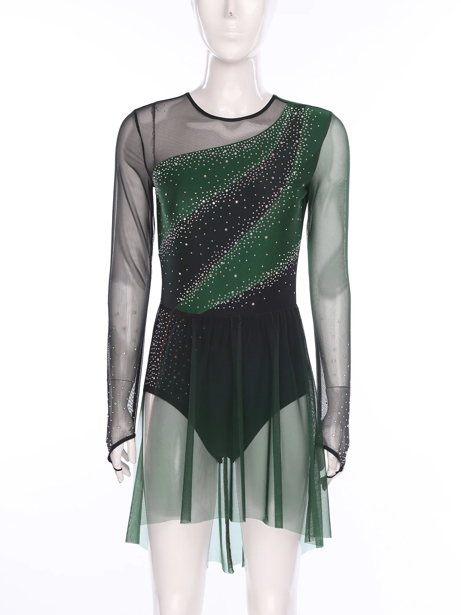 Womens Gymnastics Artistic Figure Skating Costume Shiny Ballet Lyrical Dance Leotard Dress Shiny Rhinestones Gradient Mesh Skirt