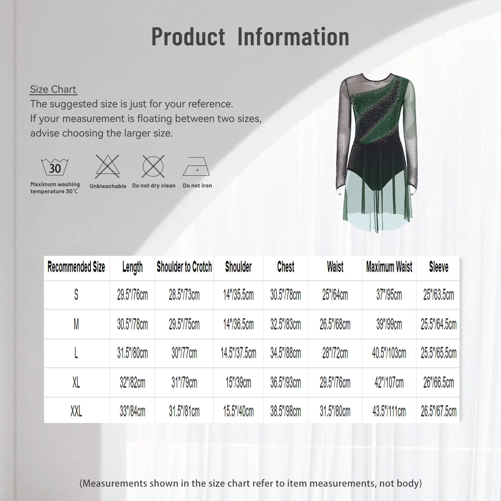 Size Chart: The suggested size is just for your reference. If your measurement is floating between two sizes, advise choosing the larger size. (Measurements shown in the size chart refer to item measurements, not body)