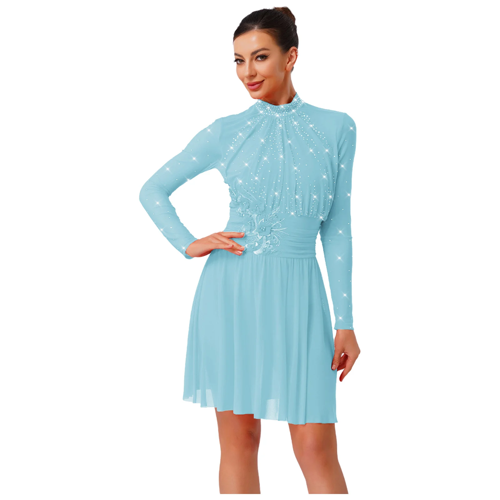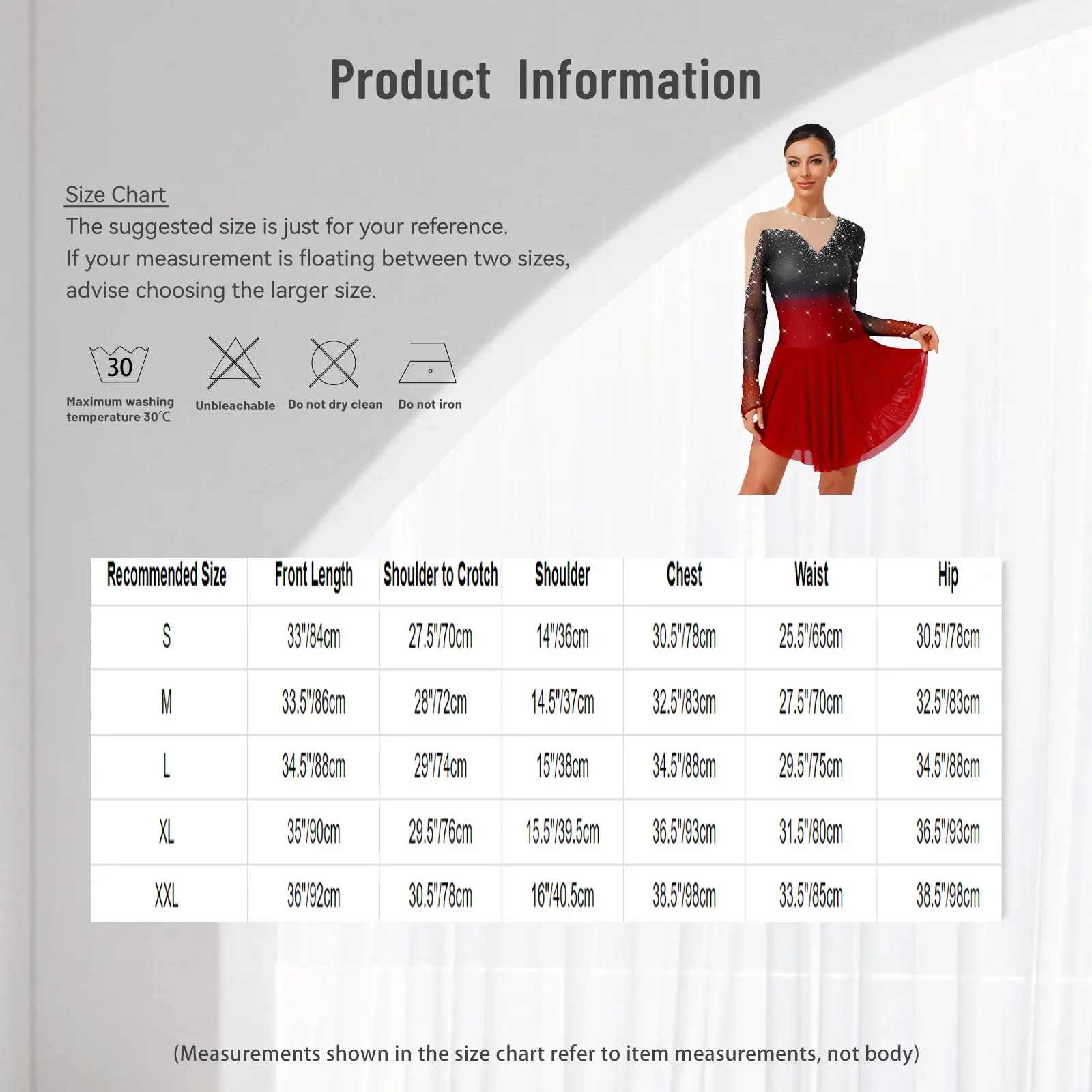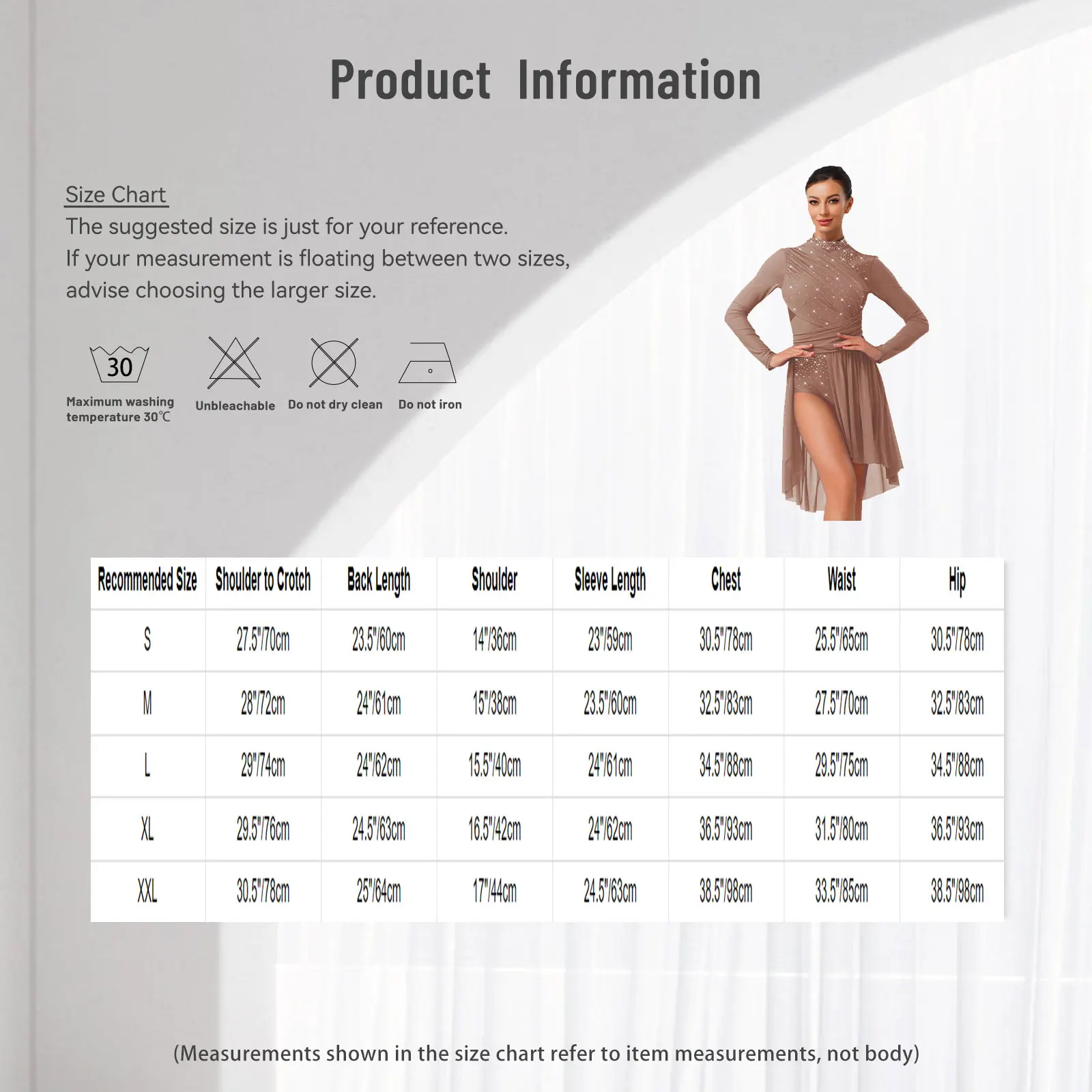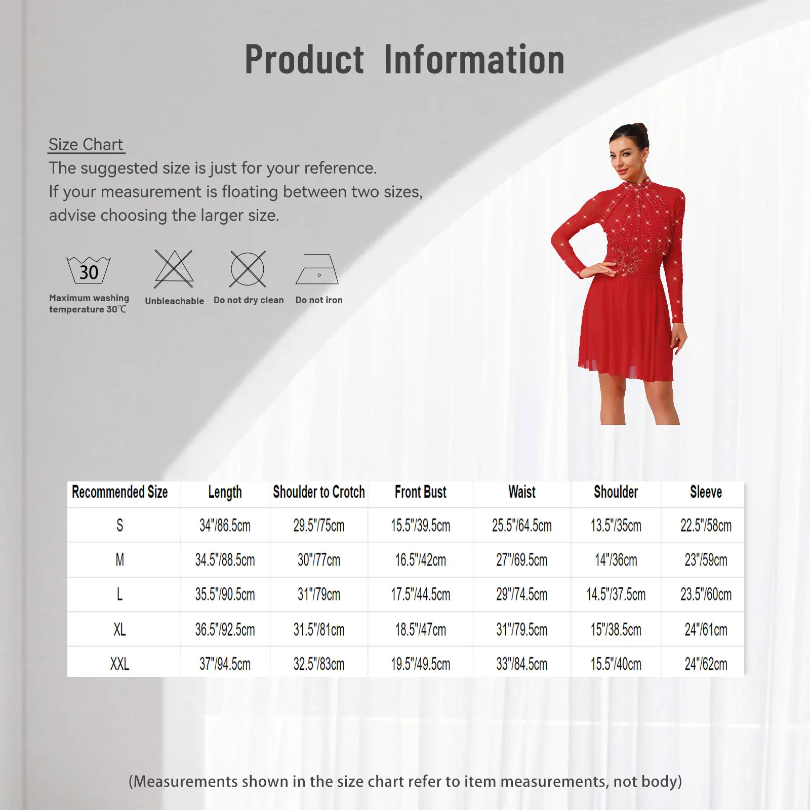 Womens Gymnastics Artistic Figure Skating Performance Costume Ballet Lyrical Dance Dress Shiny Rhinestones Ruched Leotard Dress