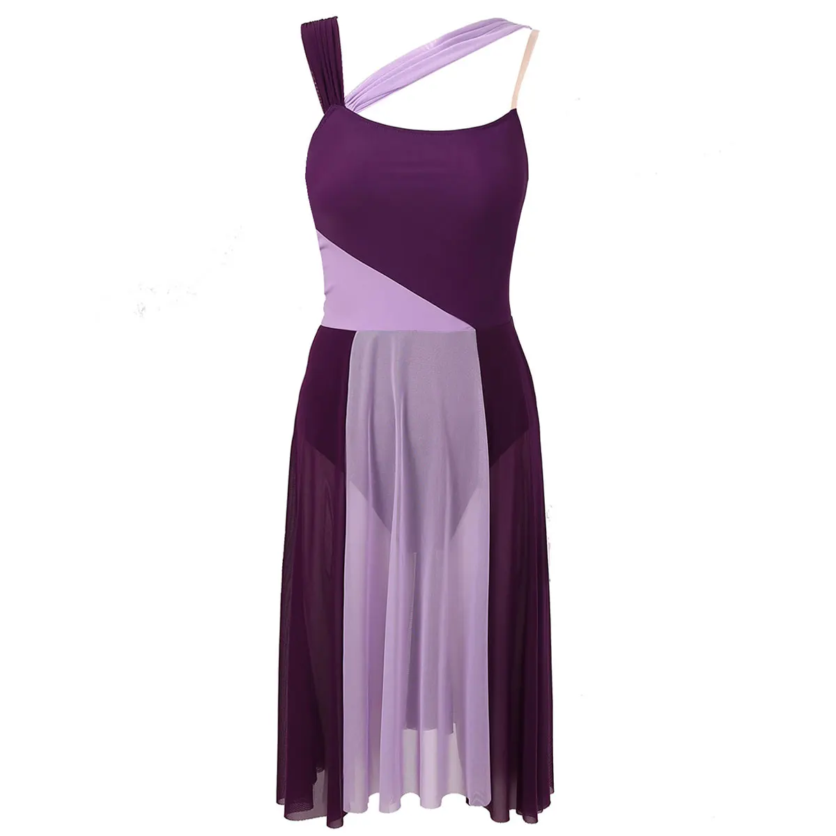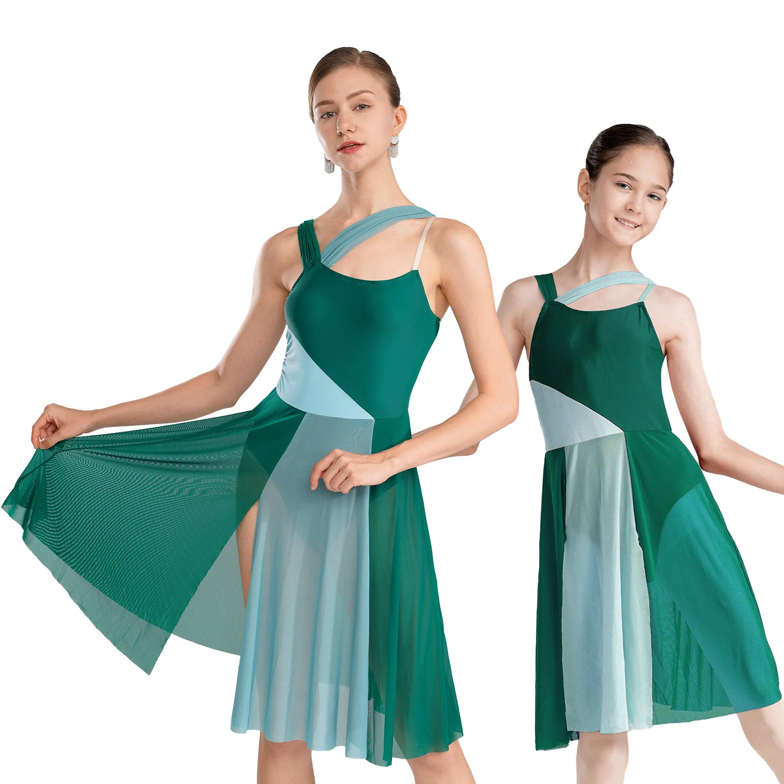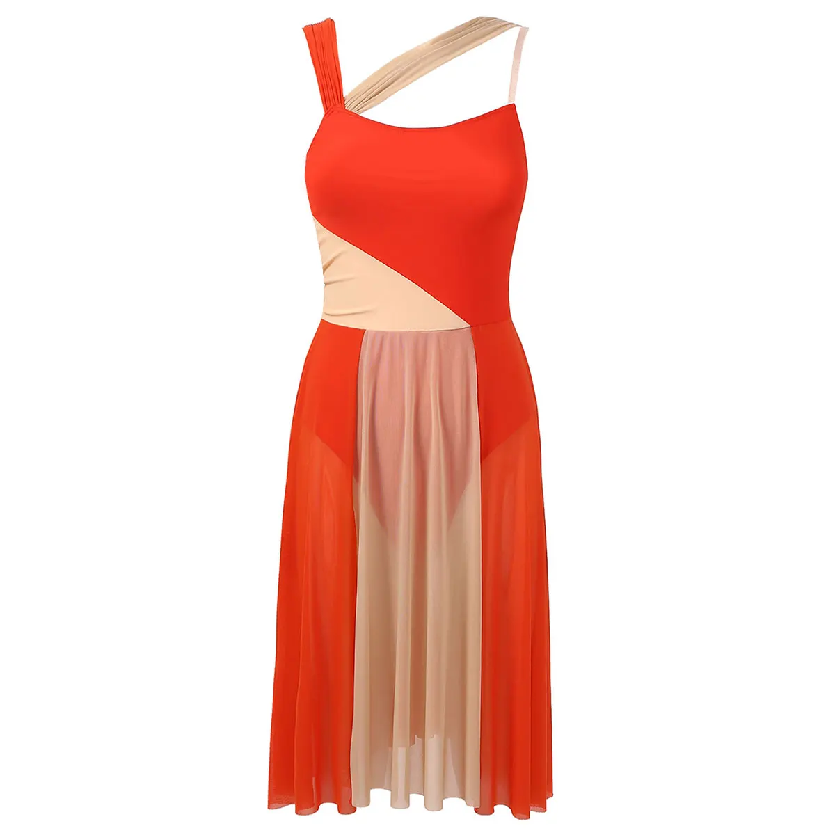 Womens Gymnastics Ballet Lyrical Contemporary Dance Overlay Dress Color Block Tight Jumpsuit Figure Skating Leotards Dress