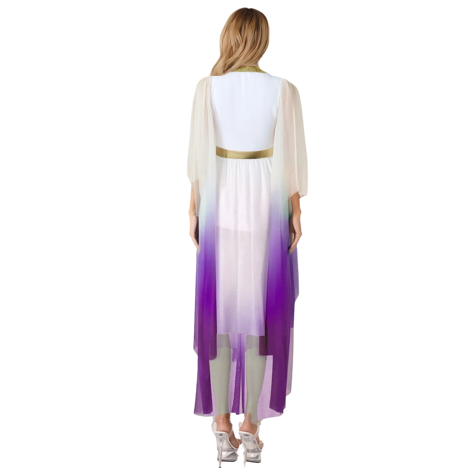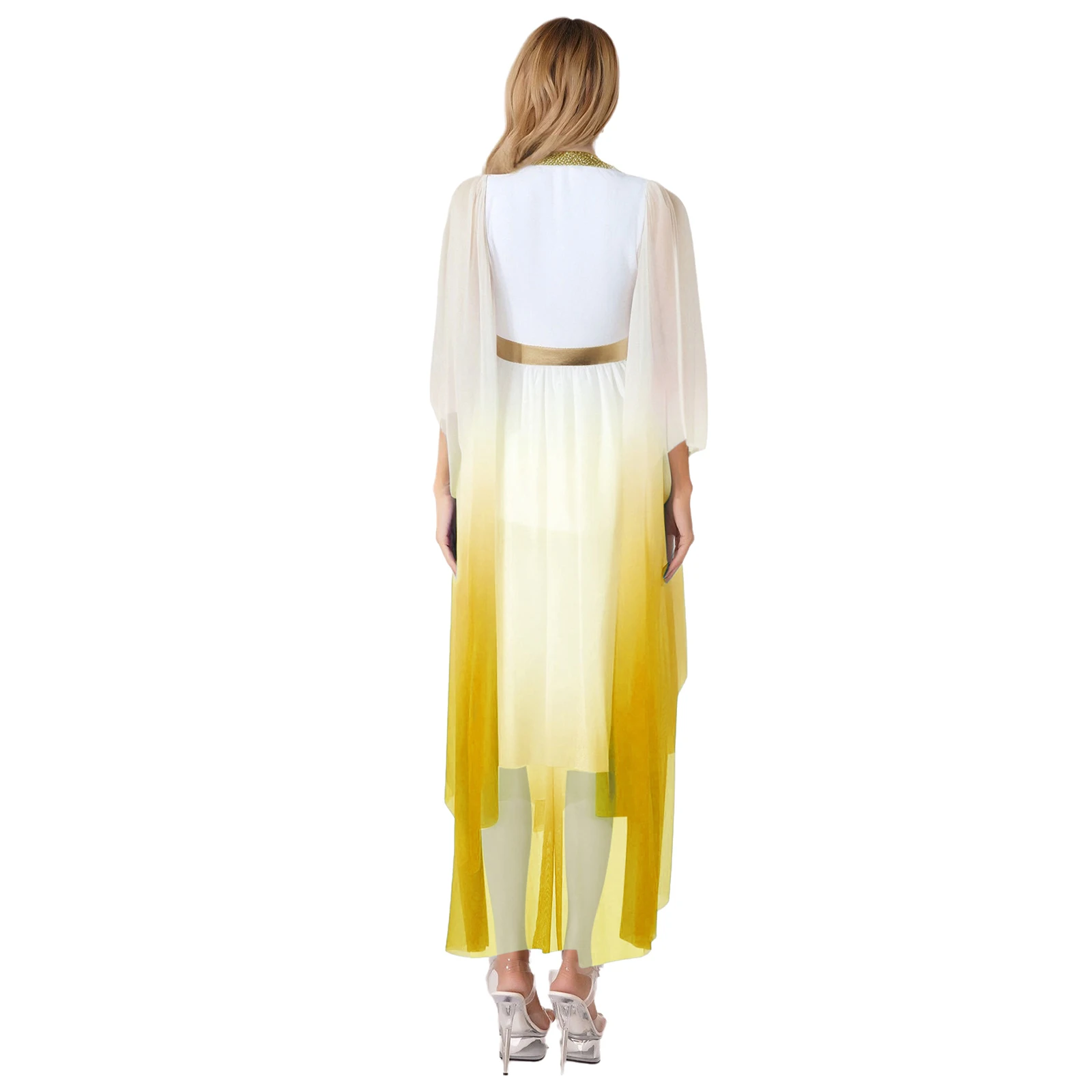 Womens Halloween Ancient Greek Roman Queen Princess Cosplay Costume Metallic Shiny Gold Trim Toga Lyrical Classical Dance Dress