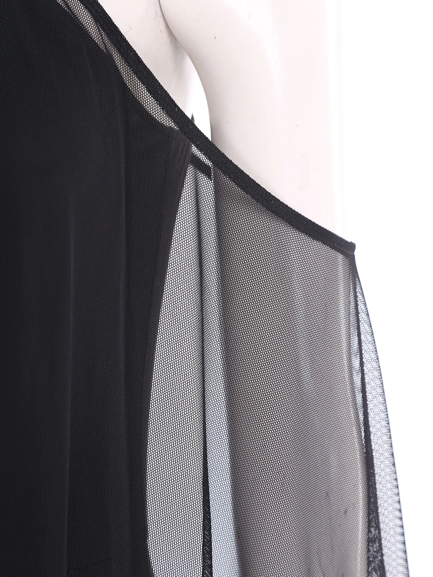 The mesh cape and jagged hem give the dress a unique and edgy look, perfect for those who want to stand out from the crowd.