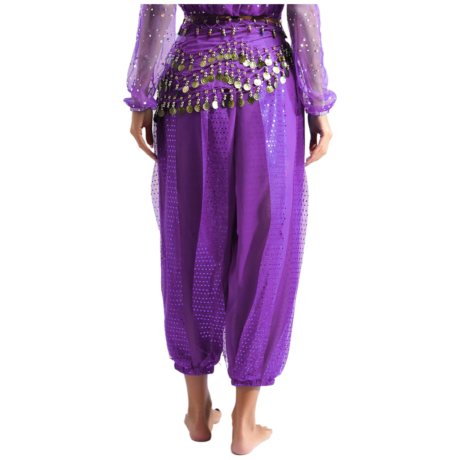 - Womens Tribal Belly Dance Pants Arabian Dance Harem Pants: Shiny Sequins Plastic Beads Trousers