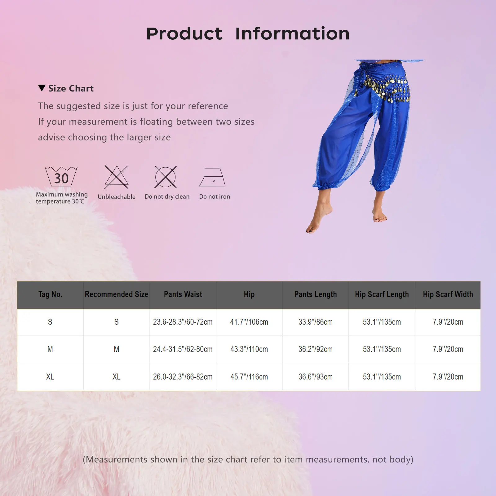 Set Include: 1Pc Pants, 1Pc Hip Scarf