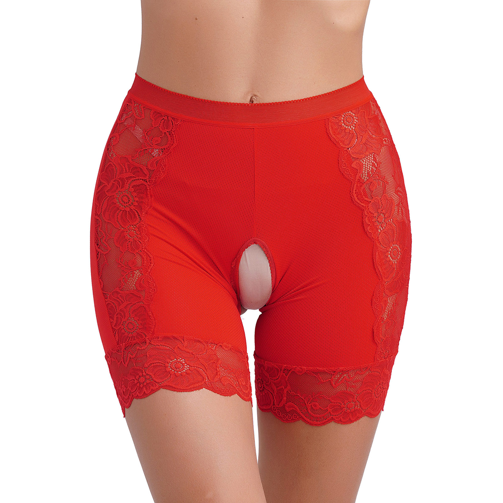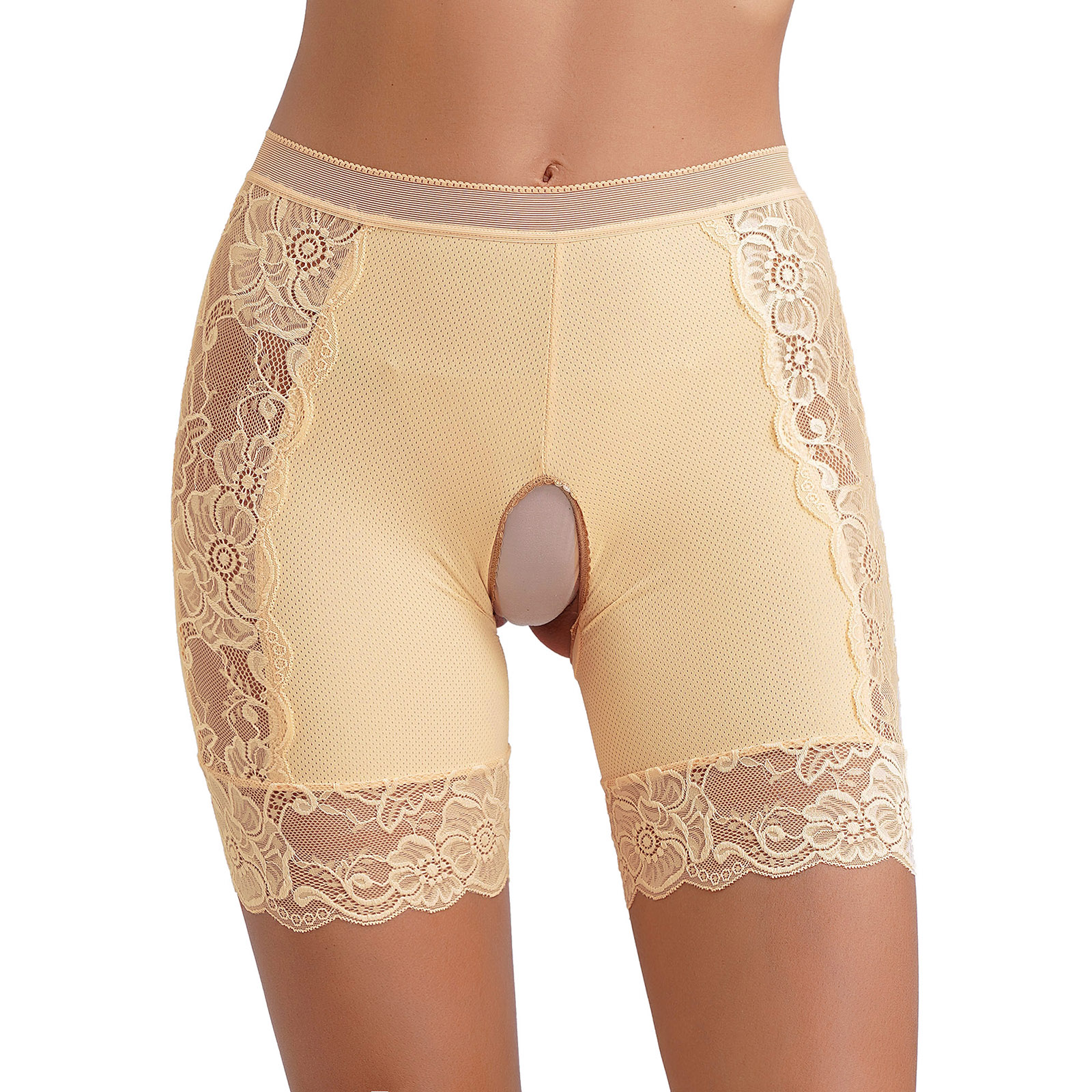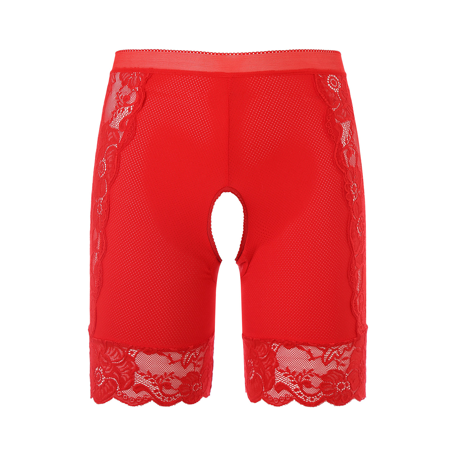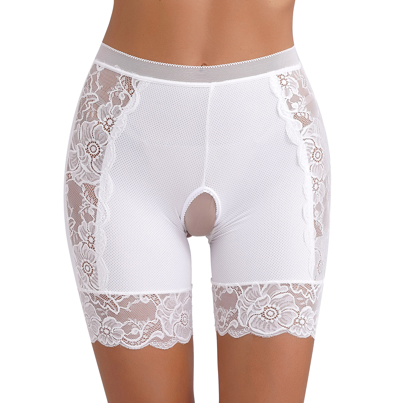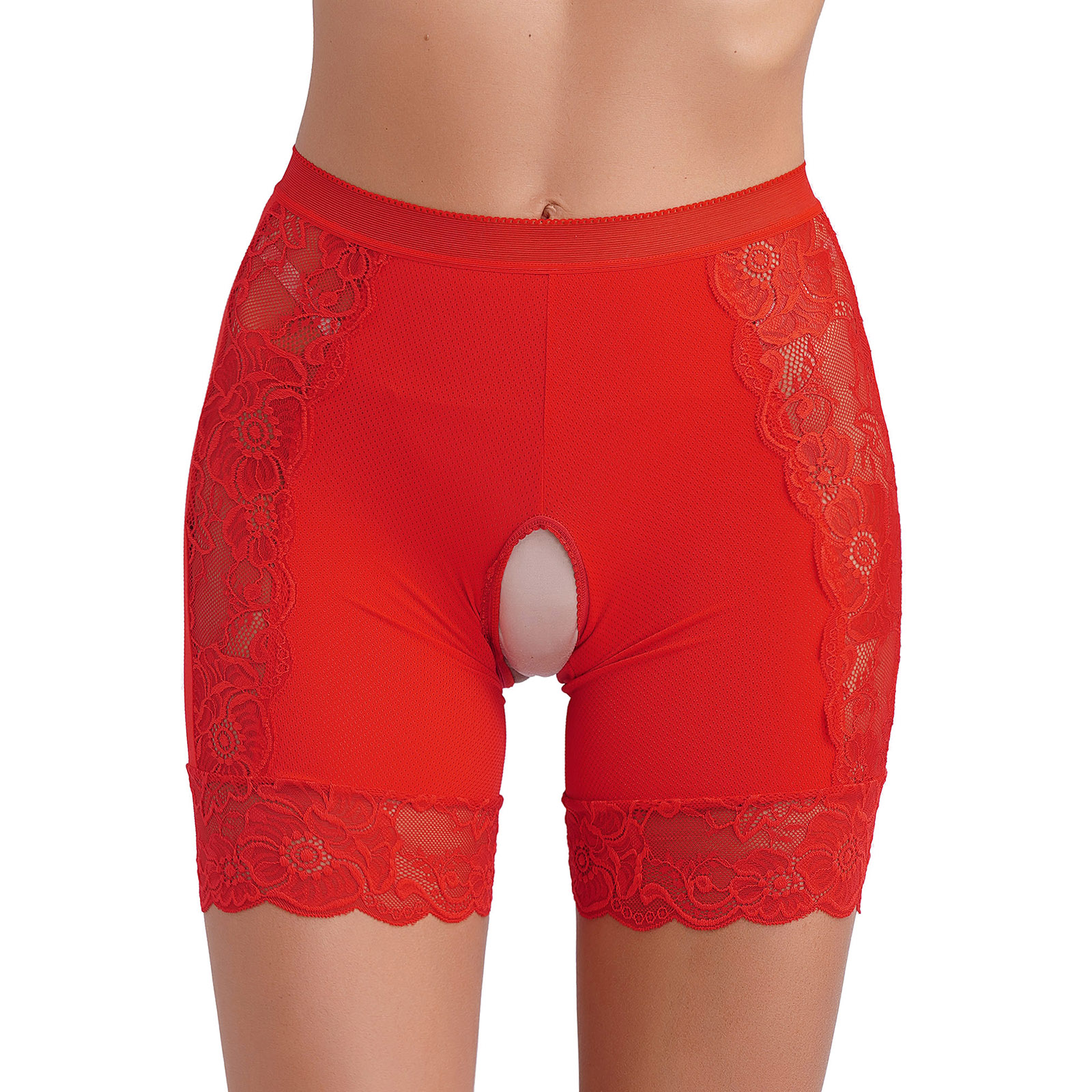 Womens Lace Open Crotch Underwear Knickers Solid Color Safety Shorts High Waist Skinny Boxers Briefs for Clubwear Dating Night